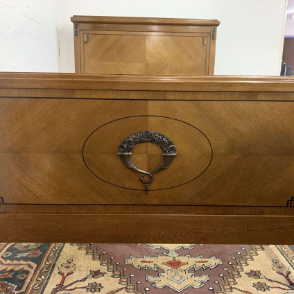 Previously SoldElegantly Shaped French Oak Desk With Parquetry Top – Now Sold