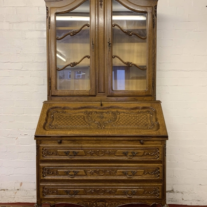 Previously SoldFantastic Quality French Shaped Carved Light Oak Bureau/bookcase – Now Sold
