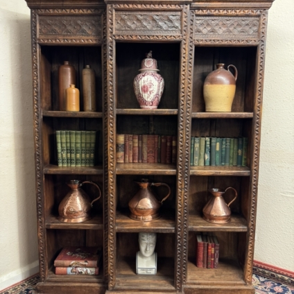 FANTASTIC QUALITY OAK COTSWOLD STYLE OPEN BOOKCASE CIRCA 1940 (G)