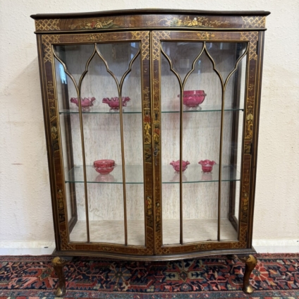 STUNNING FRENCH KINGWOOD ORMOLU DECORATED CURVED GLAZED CABINET