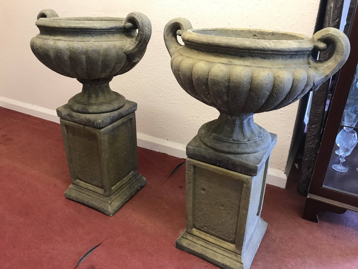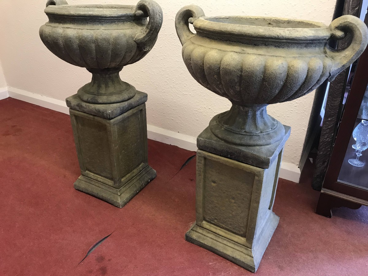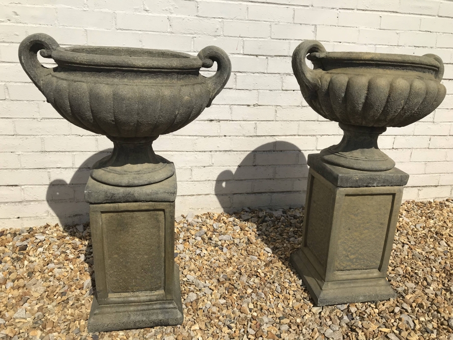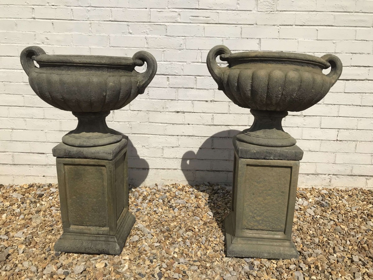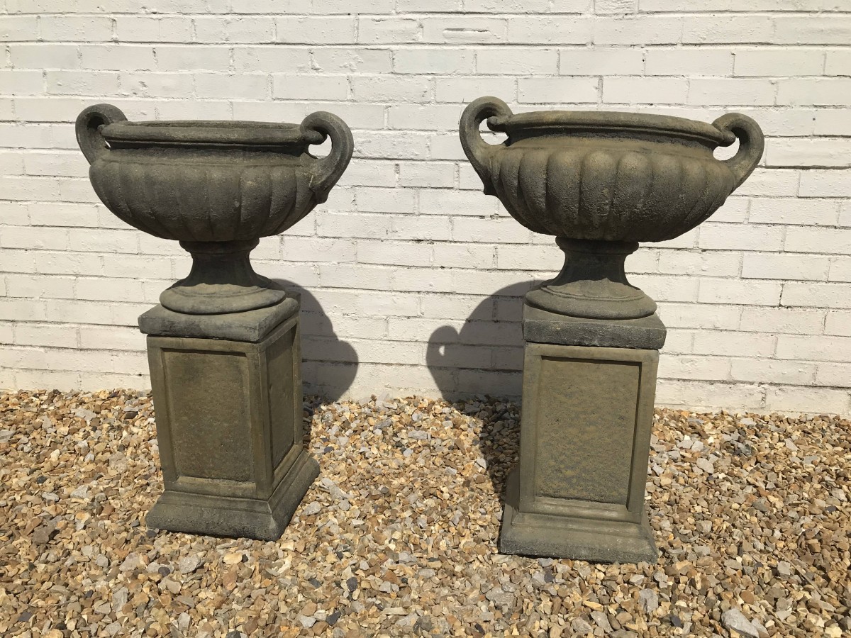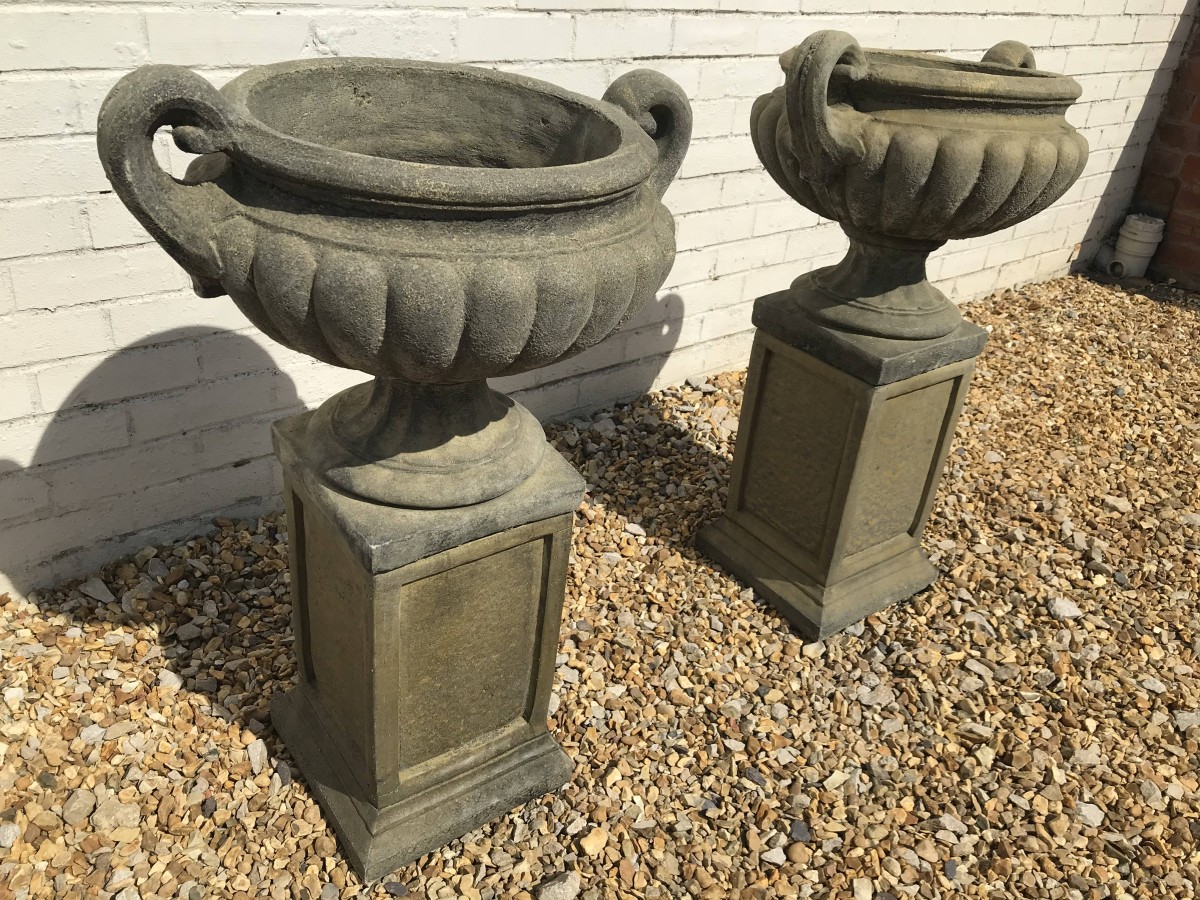- A Pair Of Victorian West Country Stone Garden Urns – Now Sold