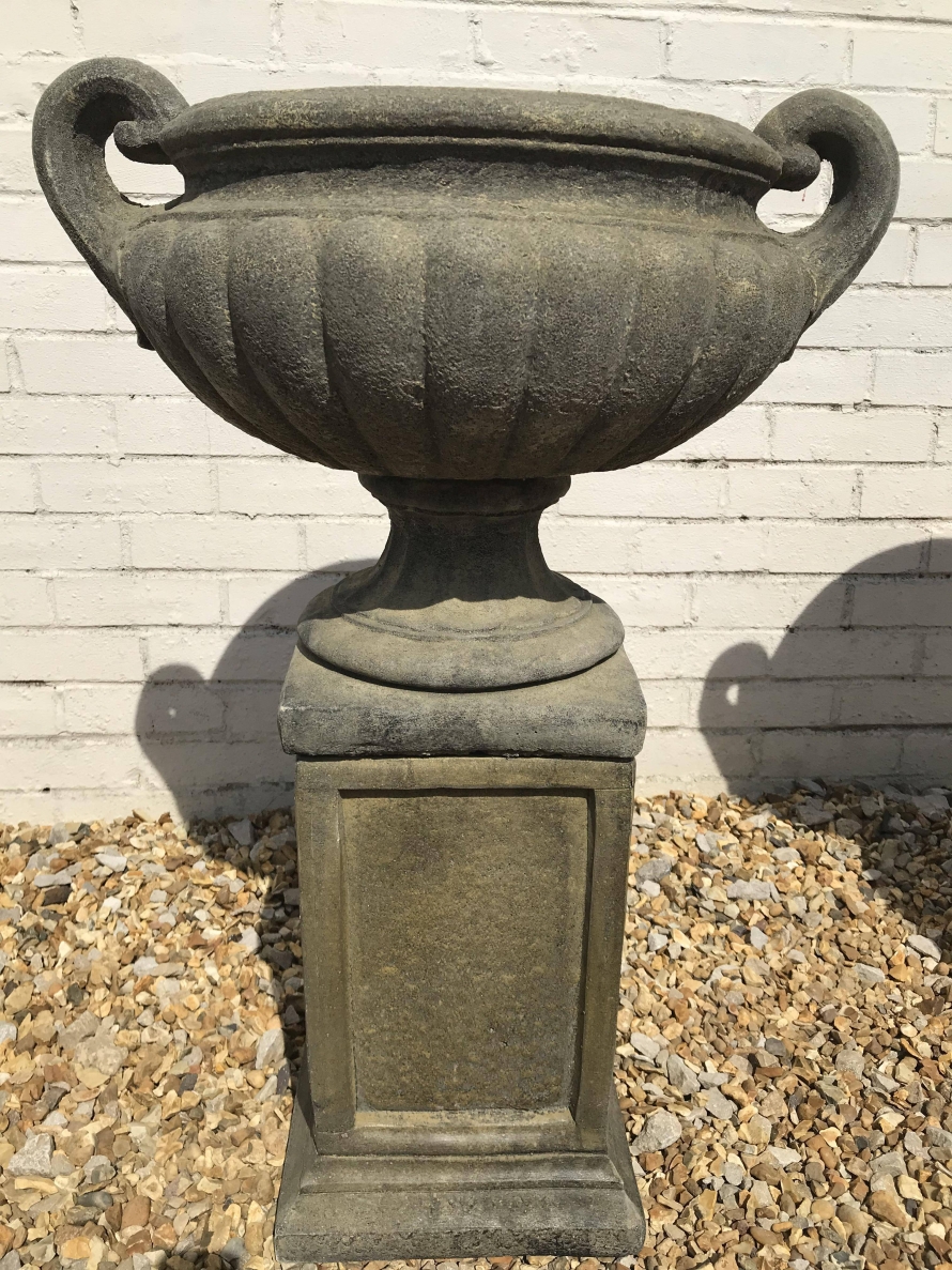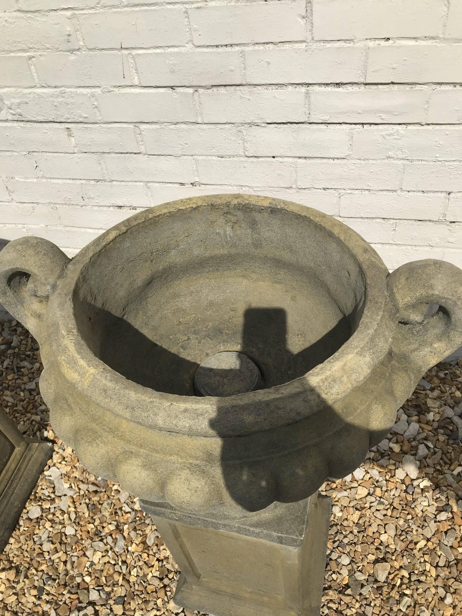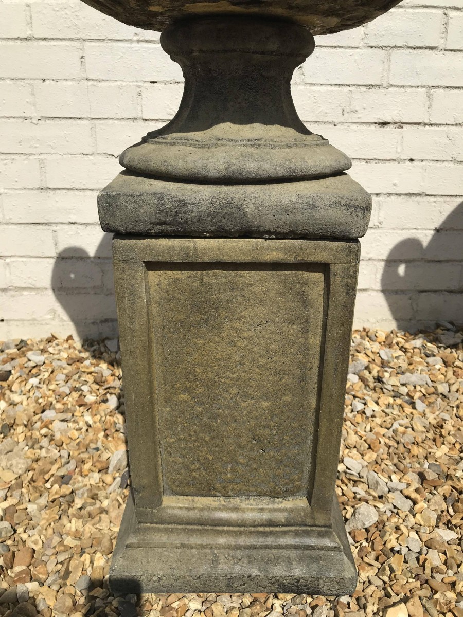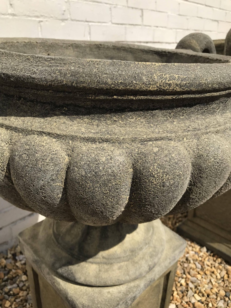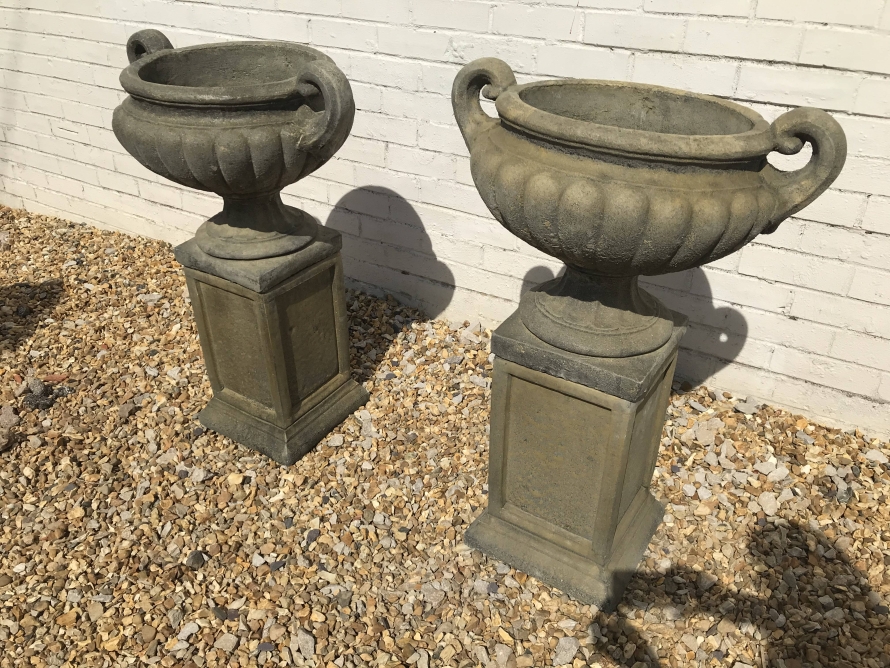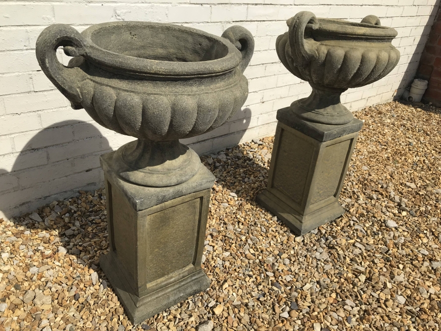 A Pair of West Country Stone Victorian Urns – handmade in Devon, England. Made from locally sourced West Country stone.
