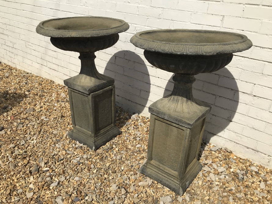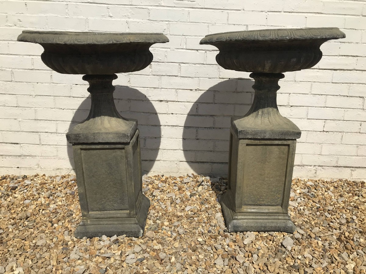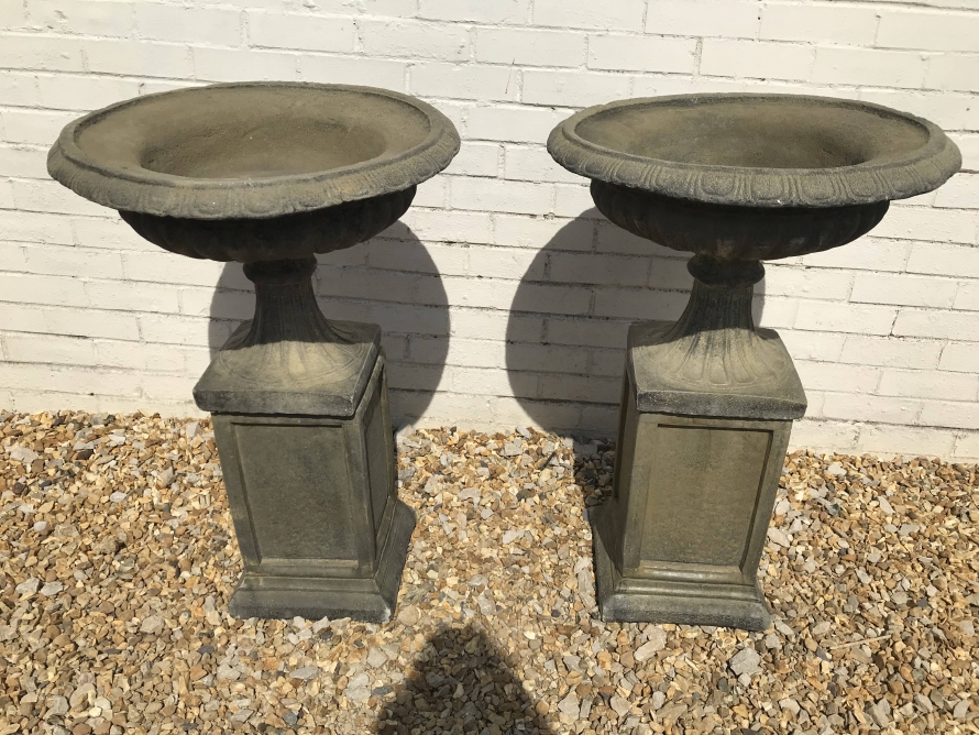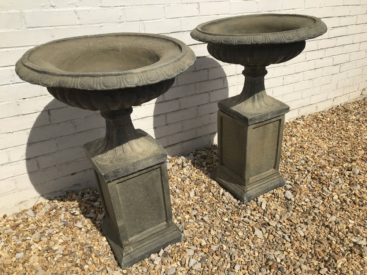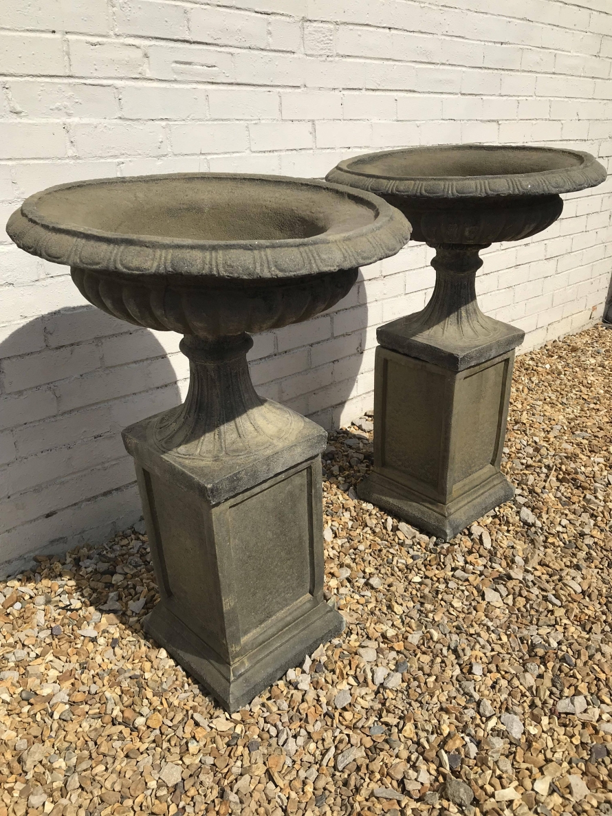 A Pair Of West Country Stone Woodbury Garden Urns – Now Sold