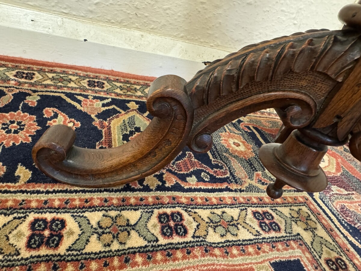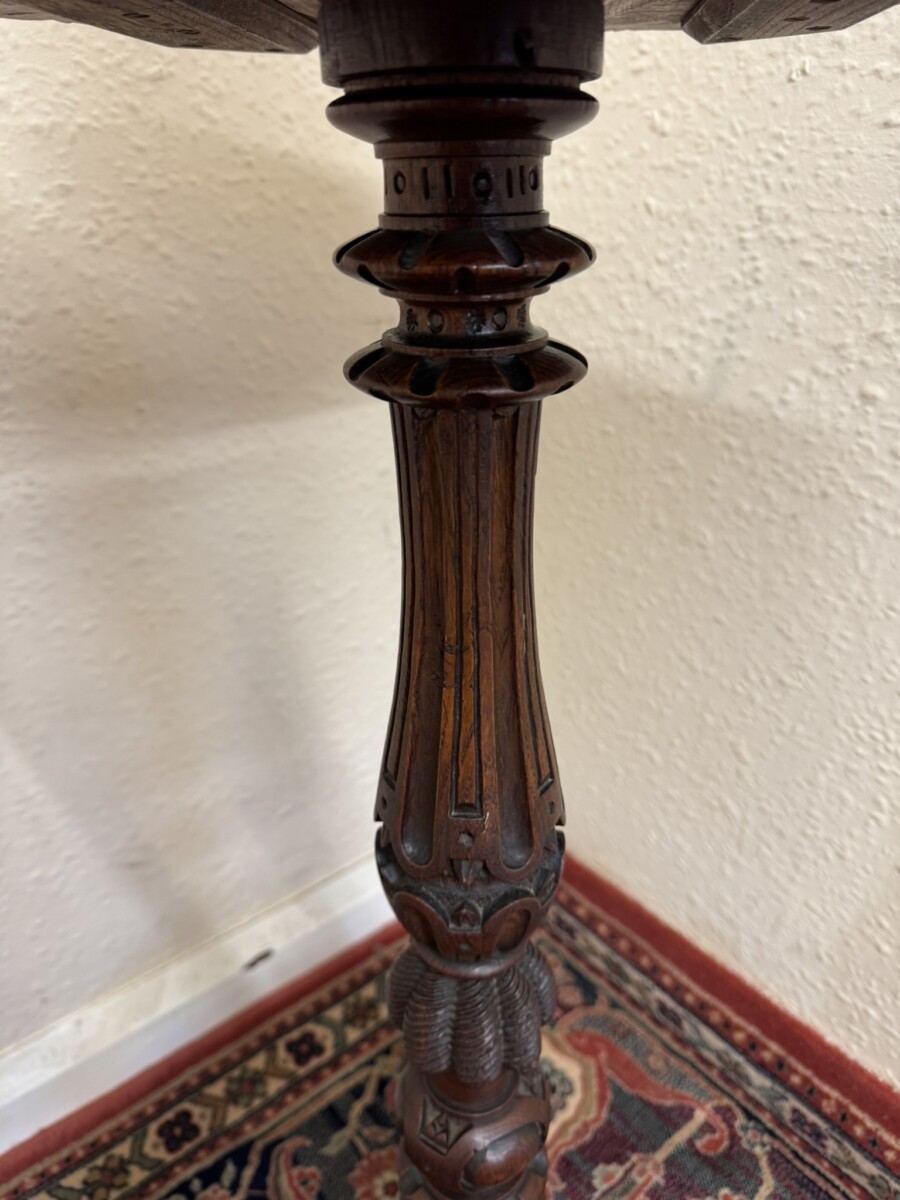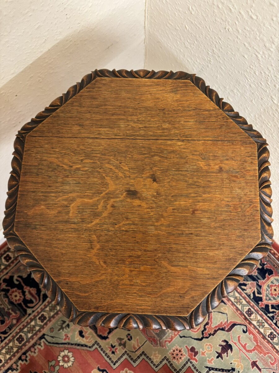 ANTIQUE CARVED OAK OCTAGANAL TOP SIDE TABLE/ACCENT TABLE CIRCA 1900