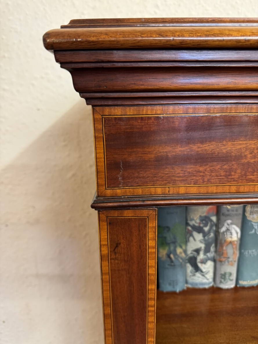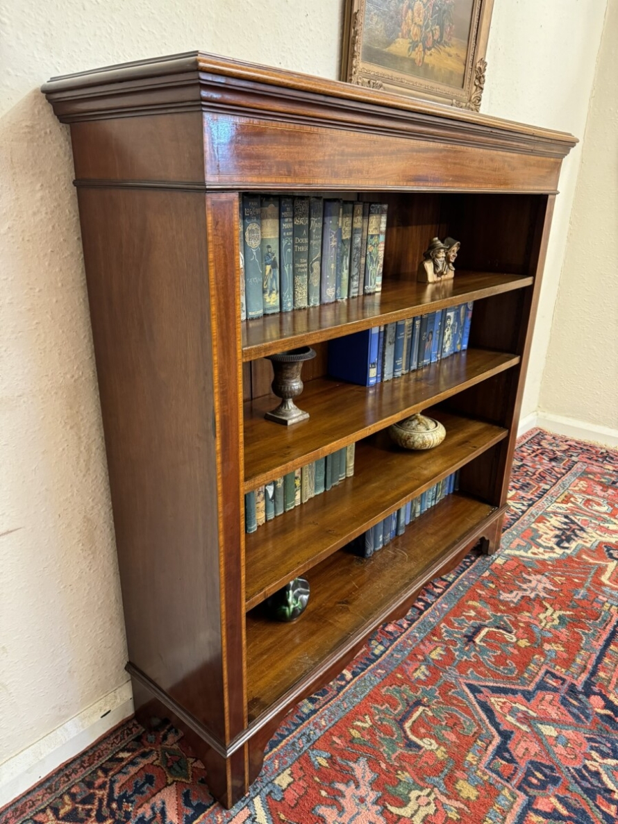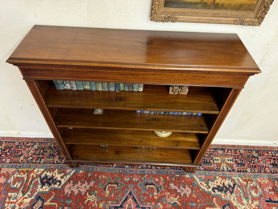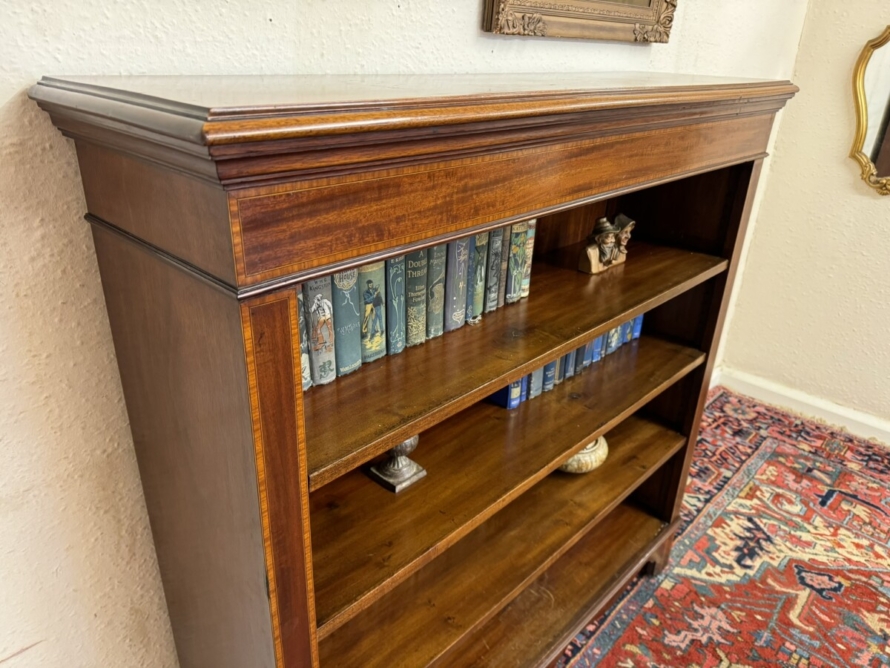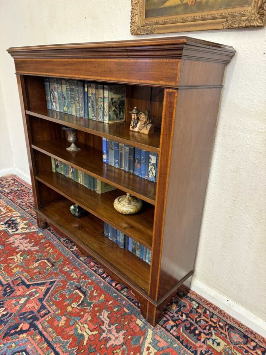 - ANTIQUE EDWARDIAN INLAID MAHOGANY OPEN BOOKCASE CIRCA 1910