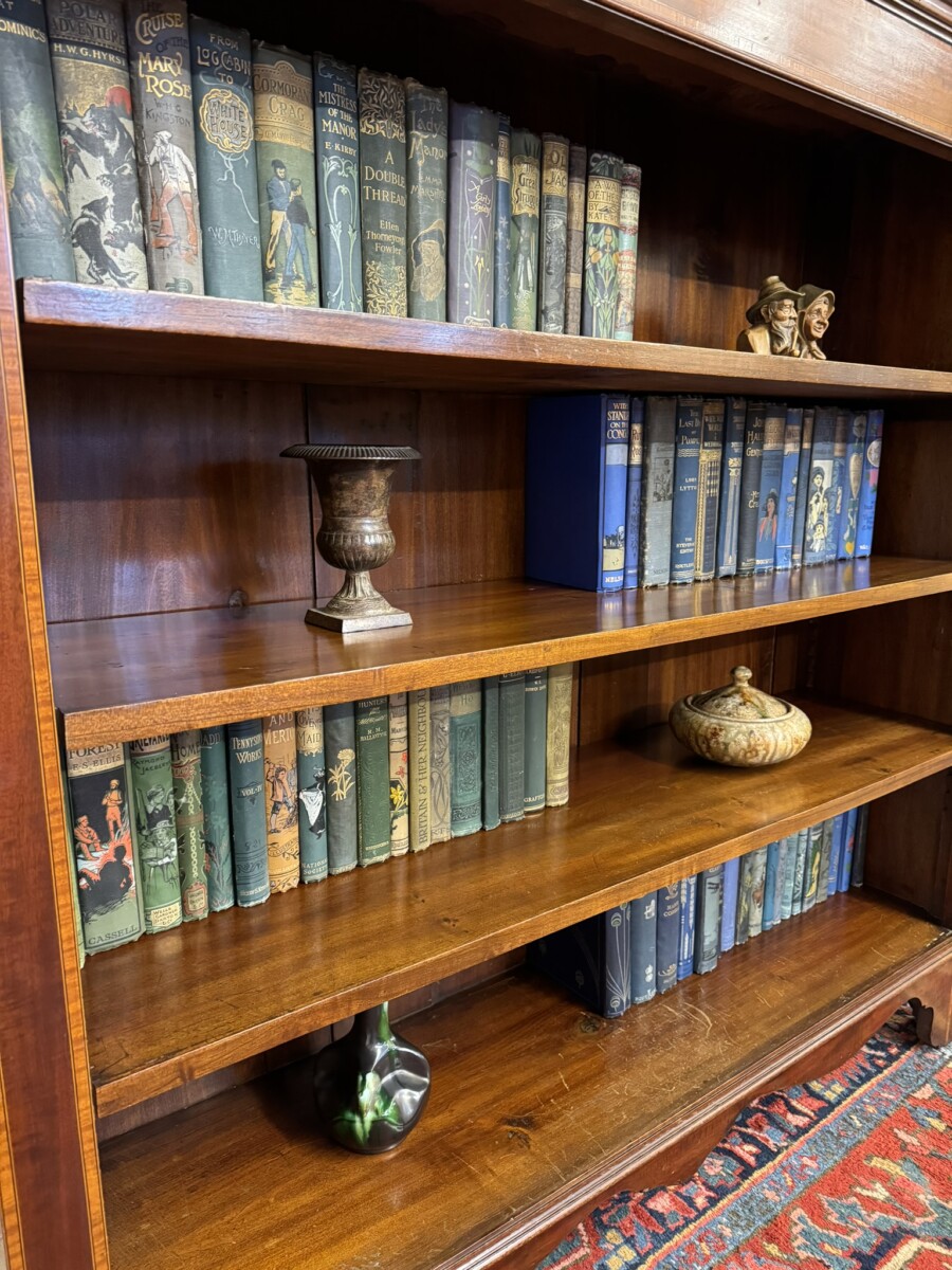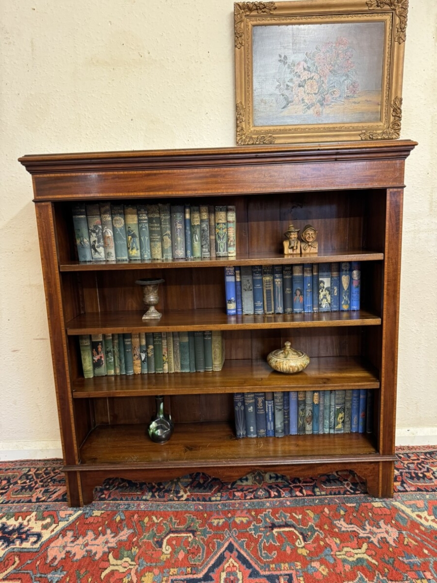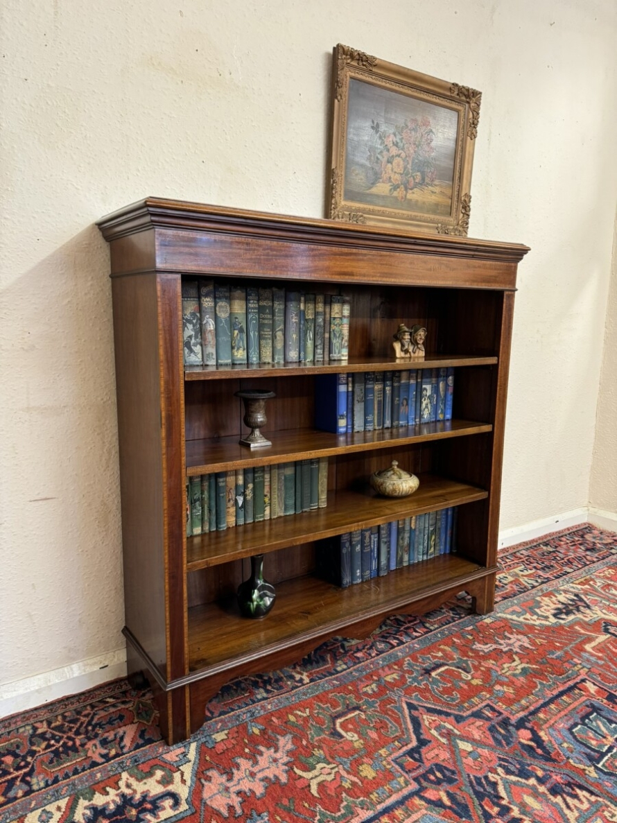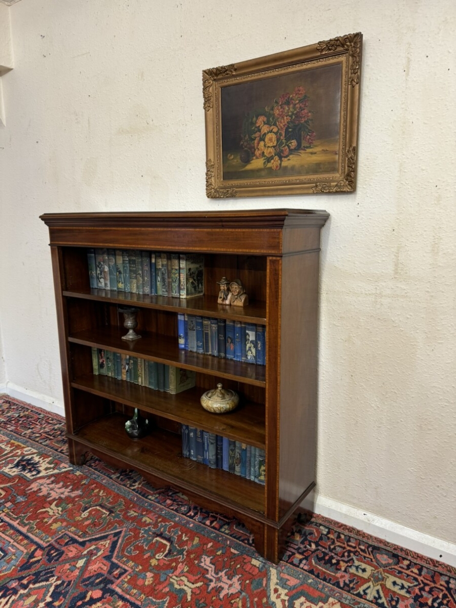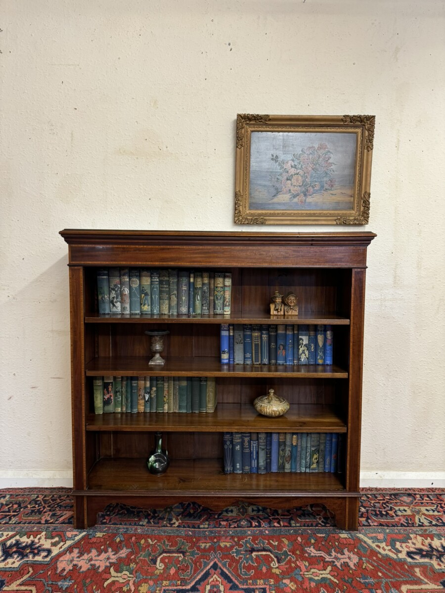 - ANTIQUE EDWARDIAN INLAID MAHOGANY OPEN BOOKCASE CIRCA 1910