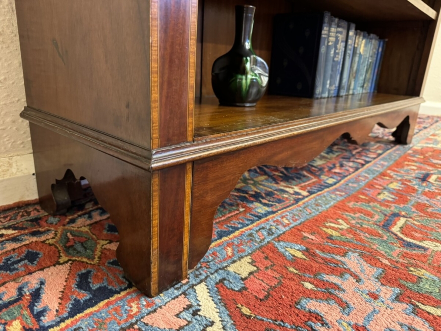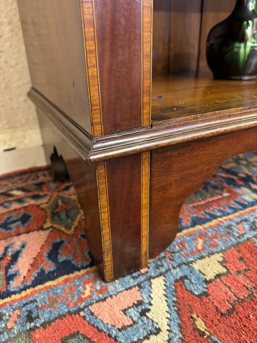 ANTIQUE EDWARDIAN INLAID MAHOGANY OPEN BOOKCASE CIRCA 1910