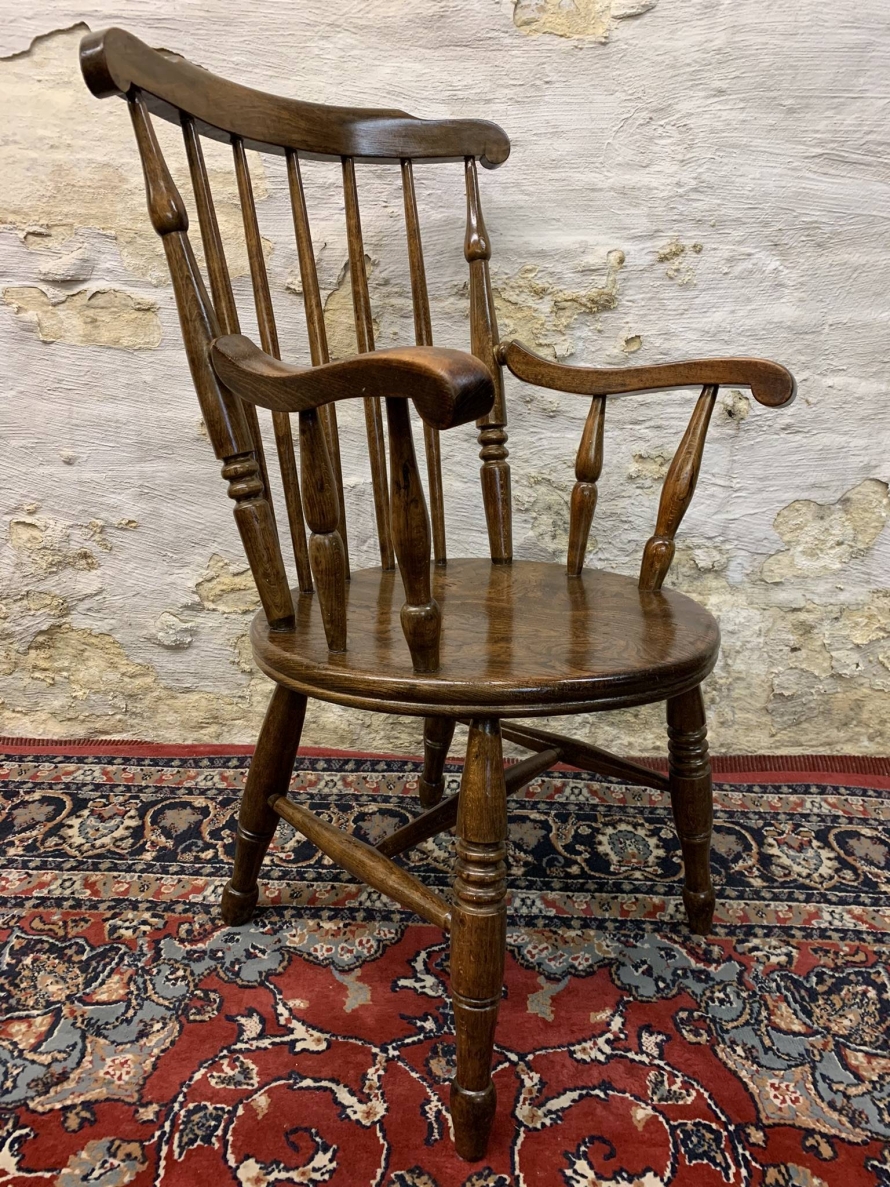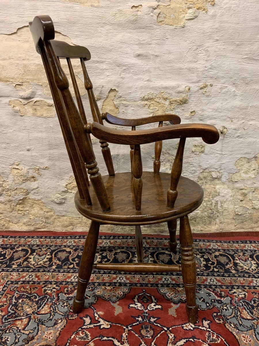 Antique Farmhouse Elm Seated Spindle Back "penny" Armchair Circa 1890