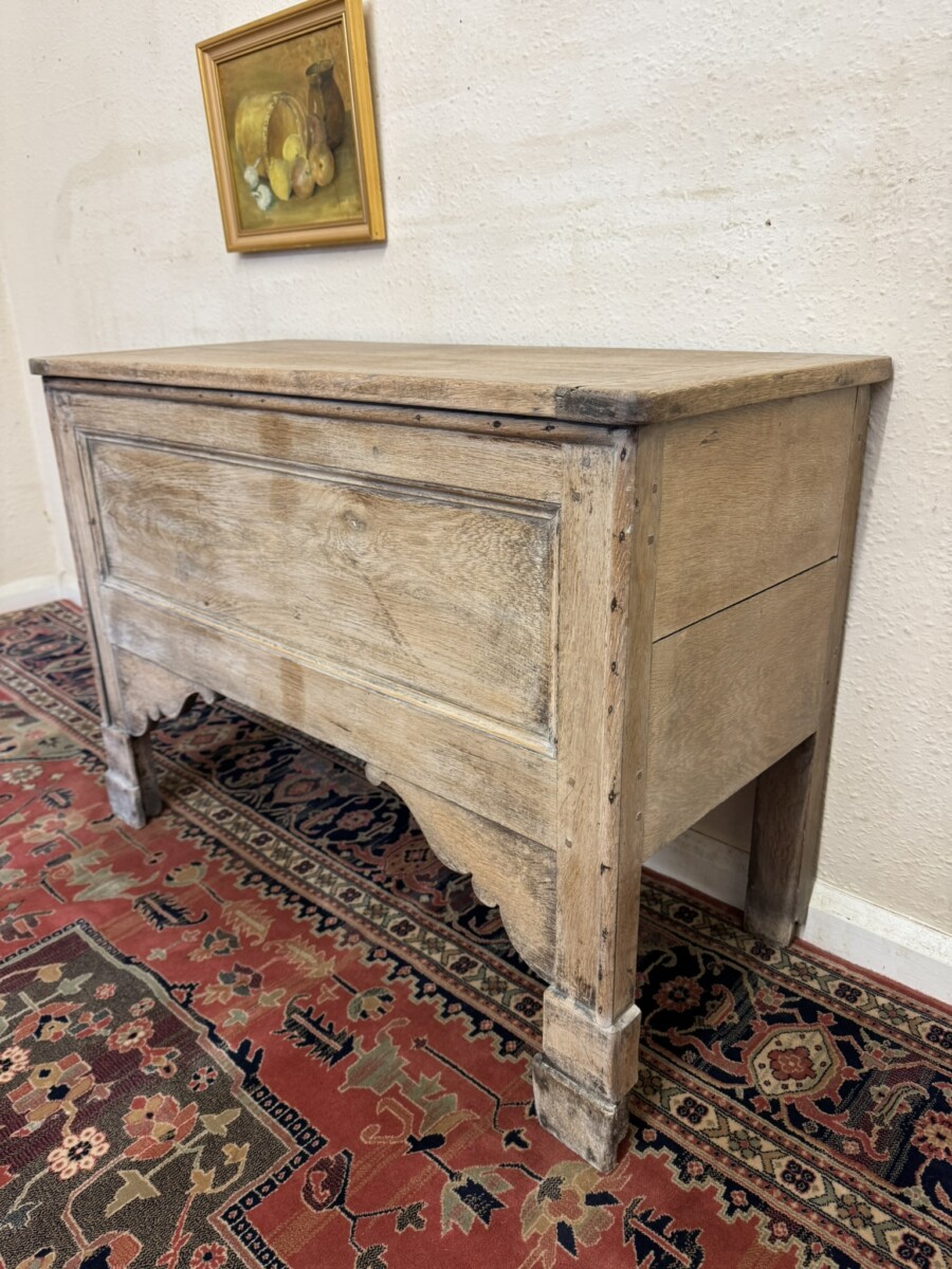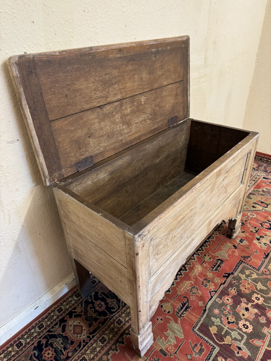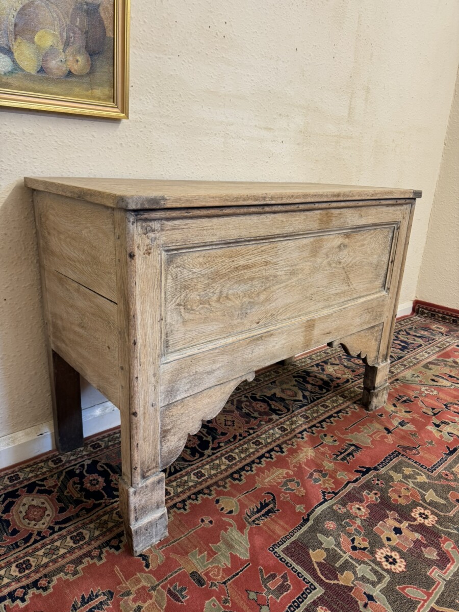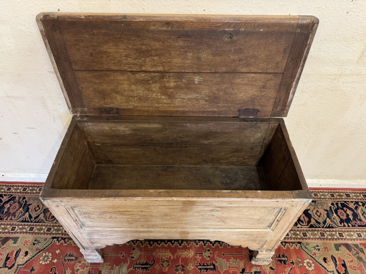 ANTIQUE FRENCH BLEACHED OAK STORAGE CHEST/BLANKET BOX CIRCA 1900