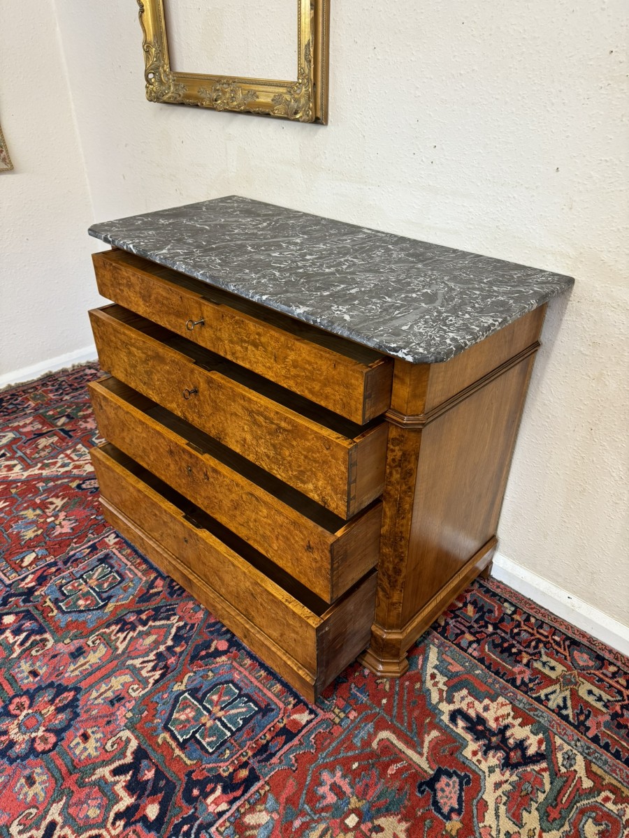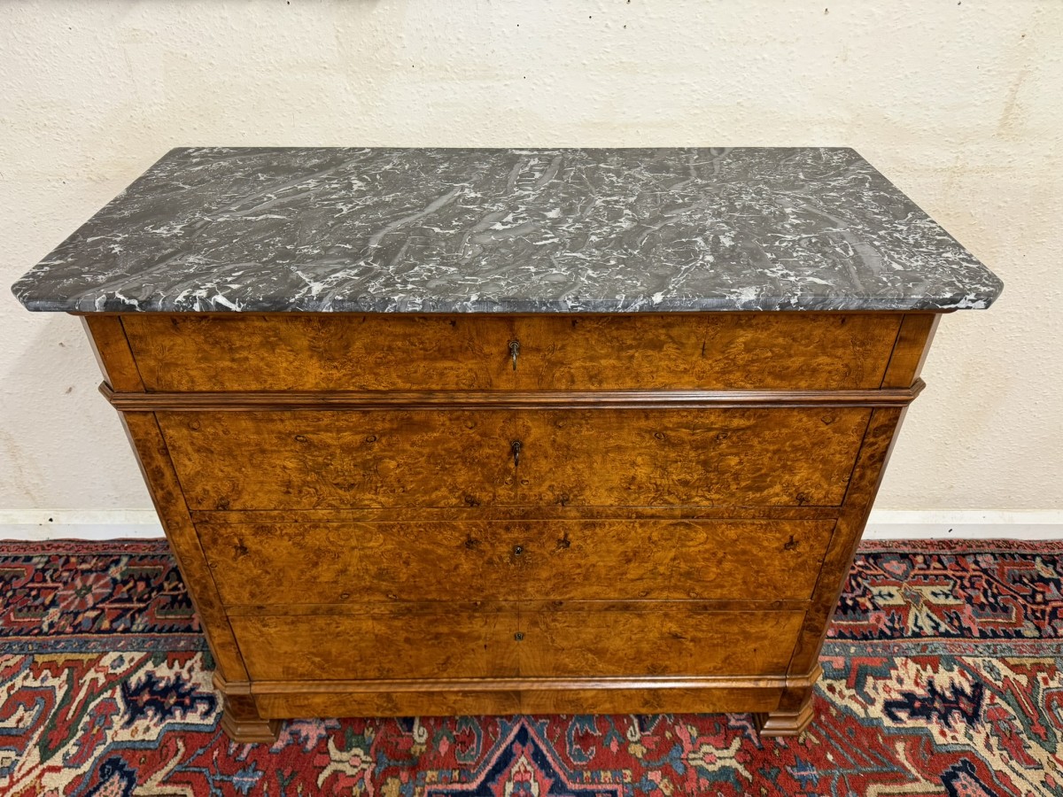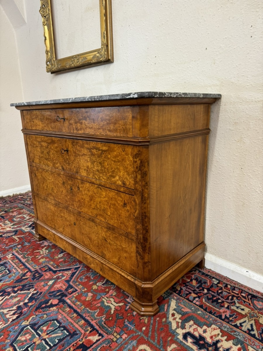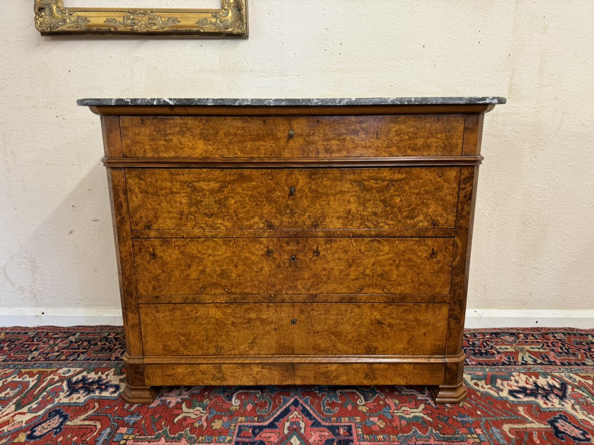 - ANTIQUE FRENCH BURR WALNUT MARBLE TOP COMMODE/CHEST OF DRAWERS CIRCA 1870