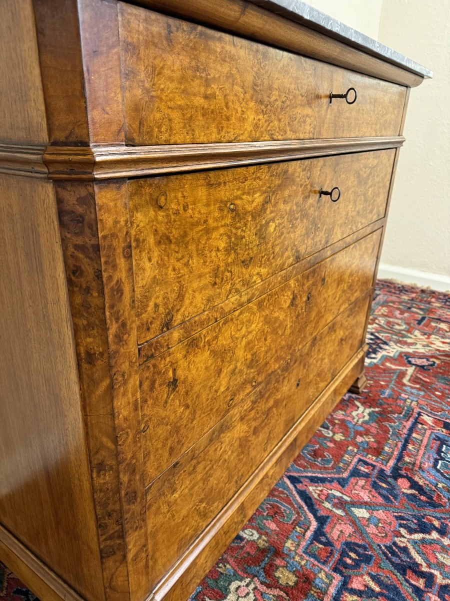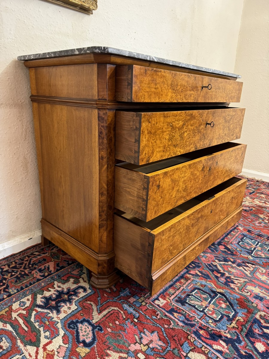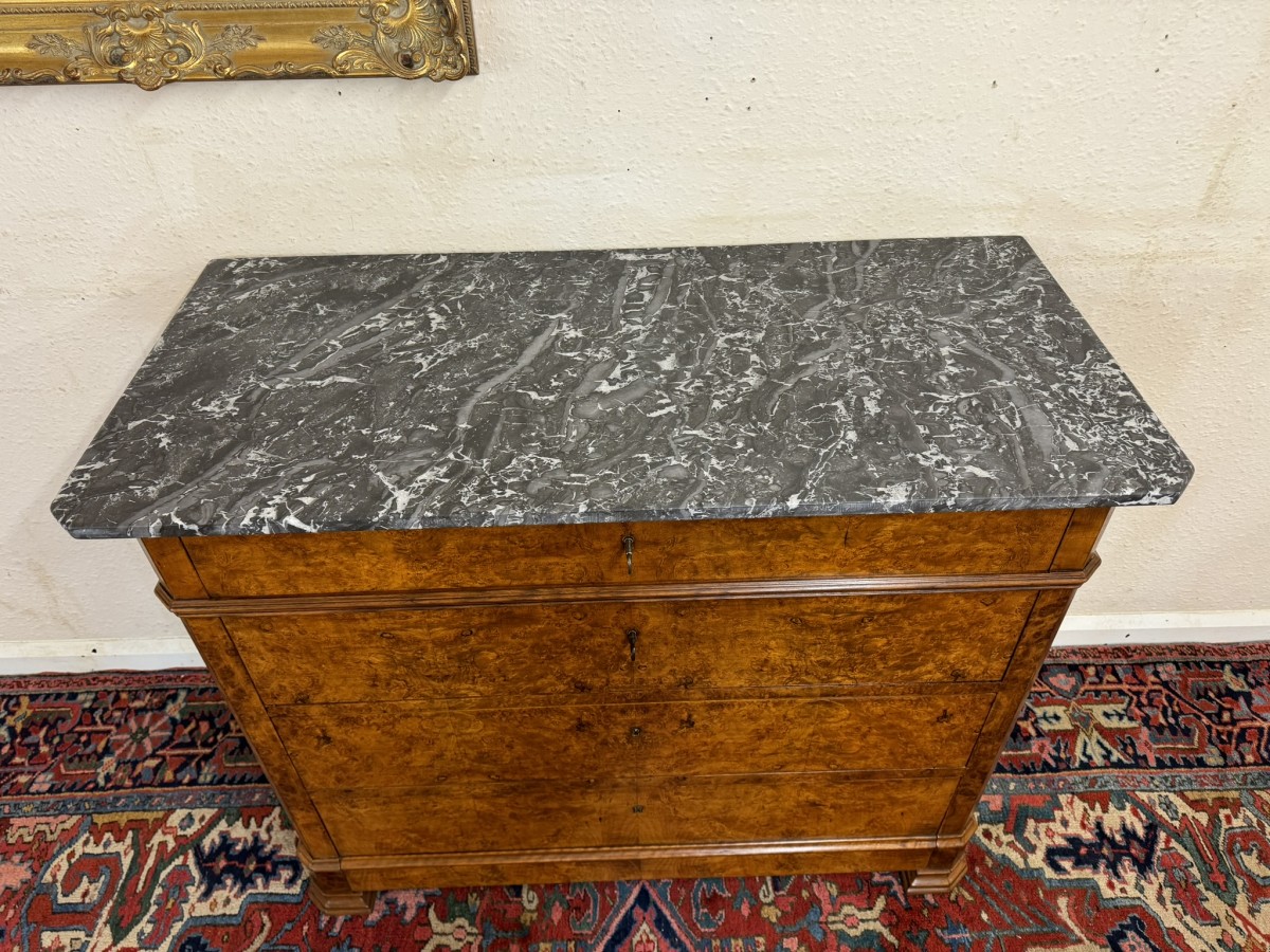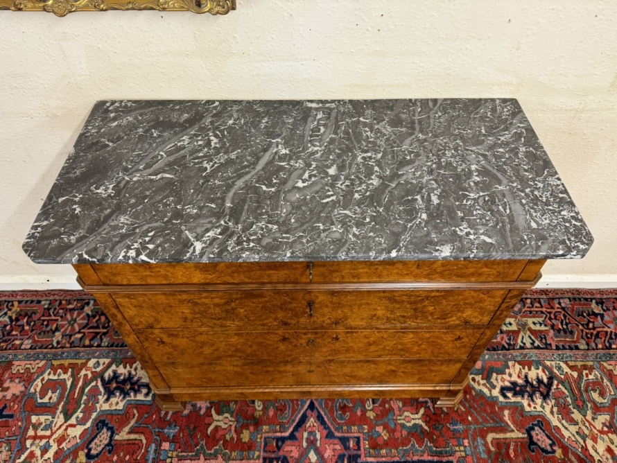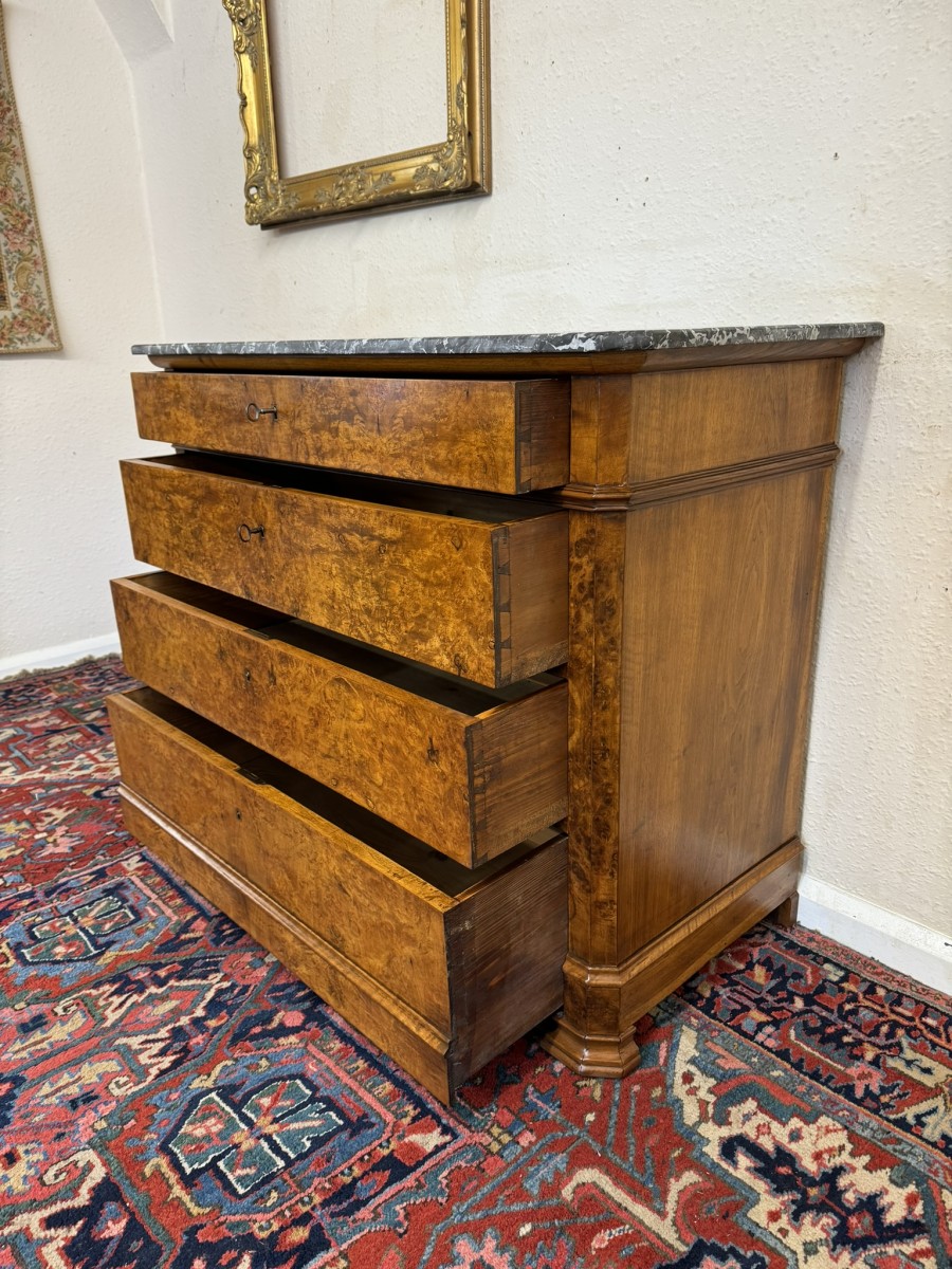 - ANTIQUE FRENCH BURR WALNUT MARBLE TOP COMMODE/CHEST OF DRAWERS CIRCA 1870