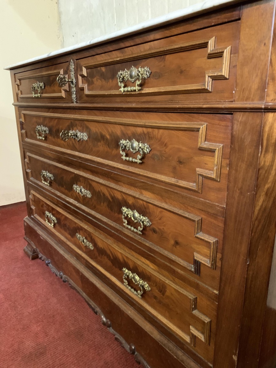 Antique French Carved Mahogany Marble Top Commode/chest Of Drawers Circa 1890