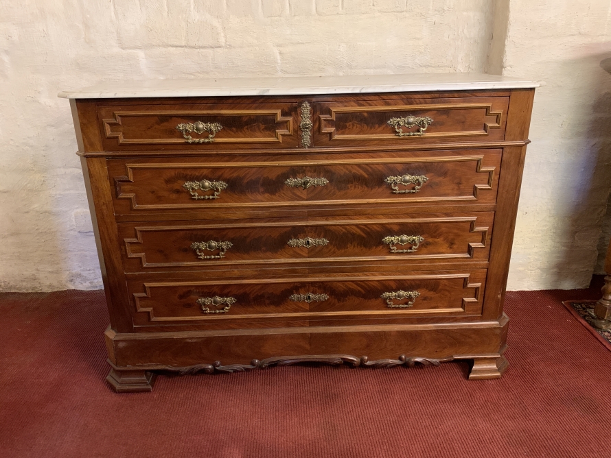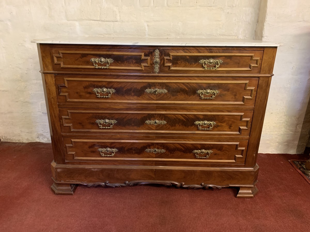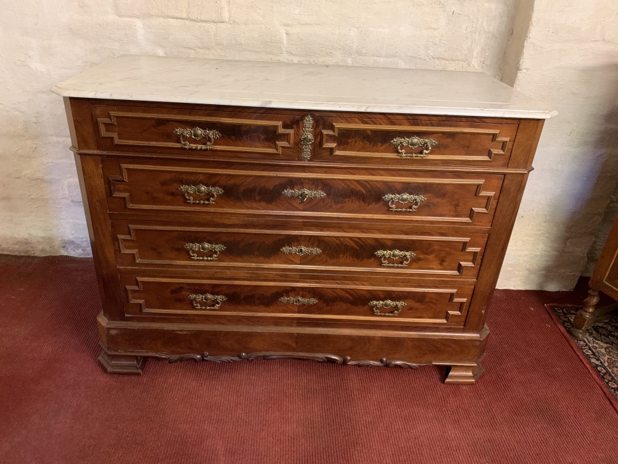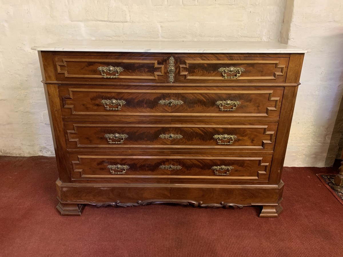 - Antique French Carved Mahogany Marble Top Commode/chest Of Drawers Circa 1890