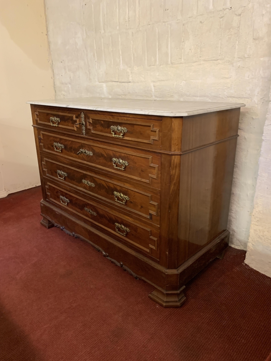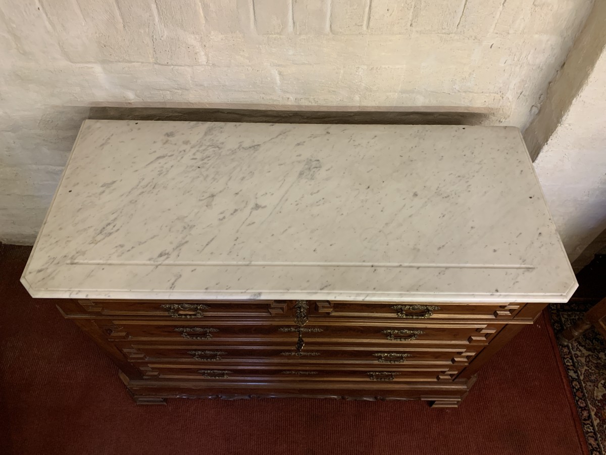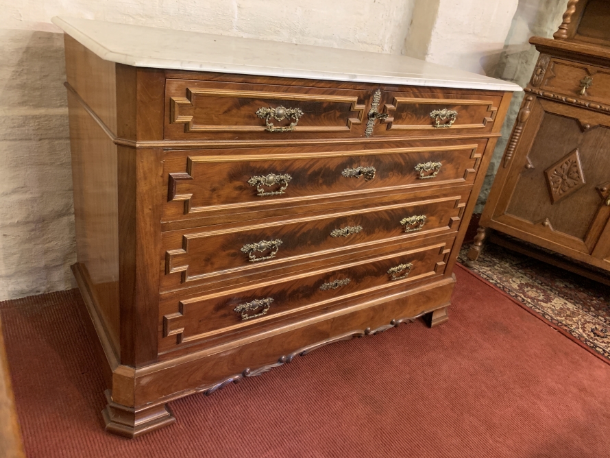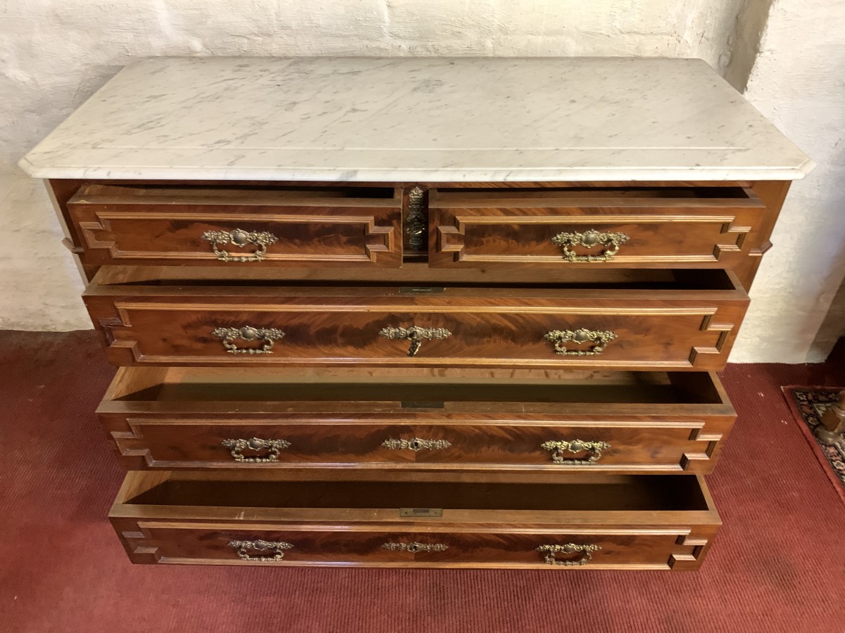 - Antique French Carved Mahogany Marble Top Commode/chest Of Drawers Circa 1890