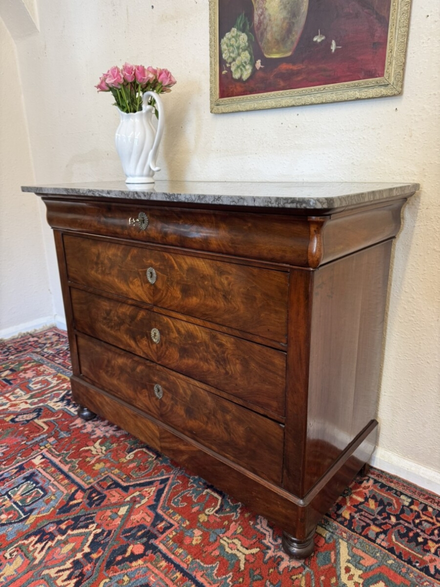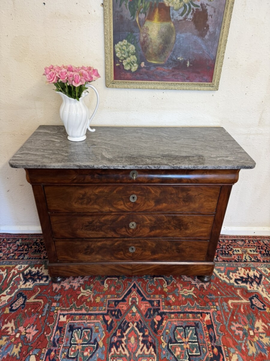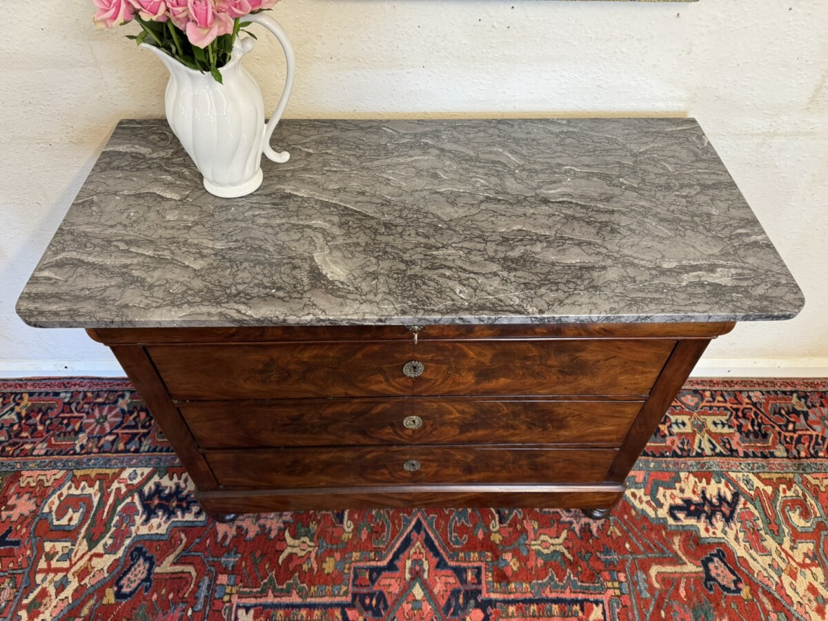 - ANTIQUE FRENCH MAHOGANY LOUIS PHILIPPE MARBLE TOP COMMODE/CHEST CIRCA 1840
