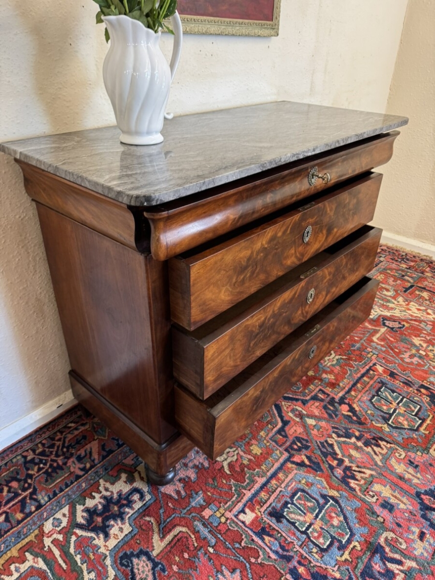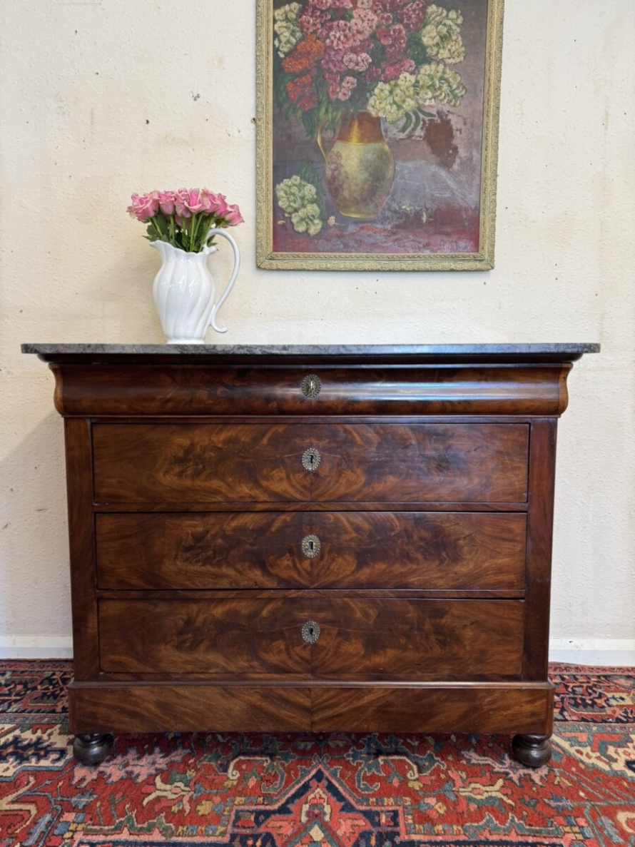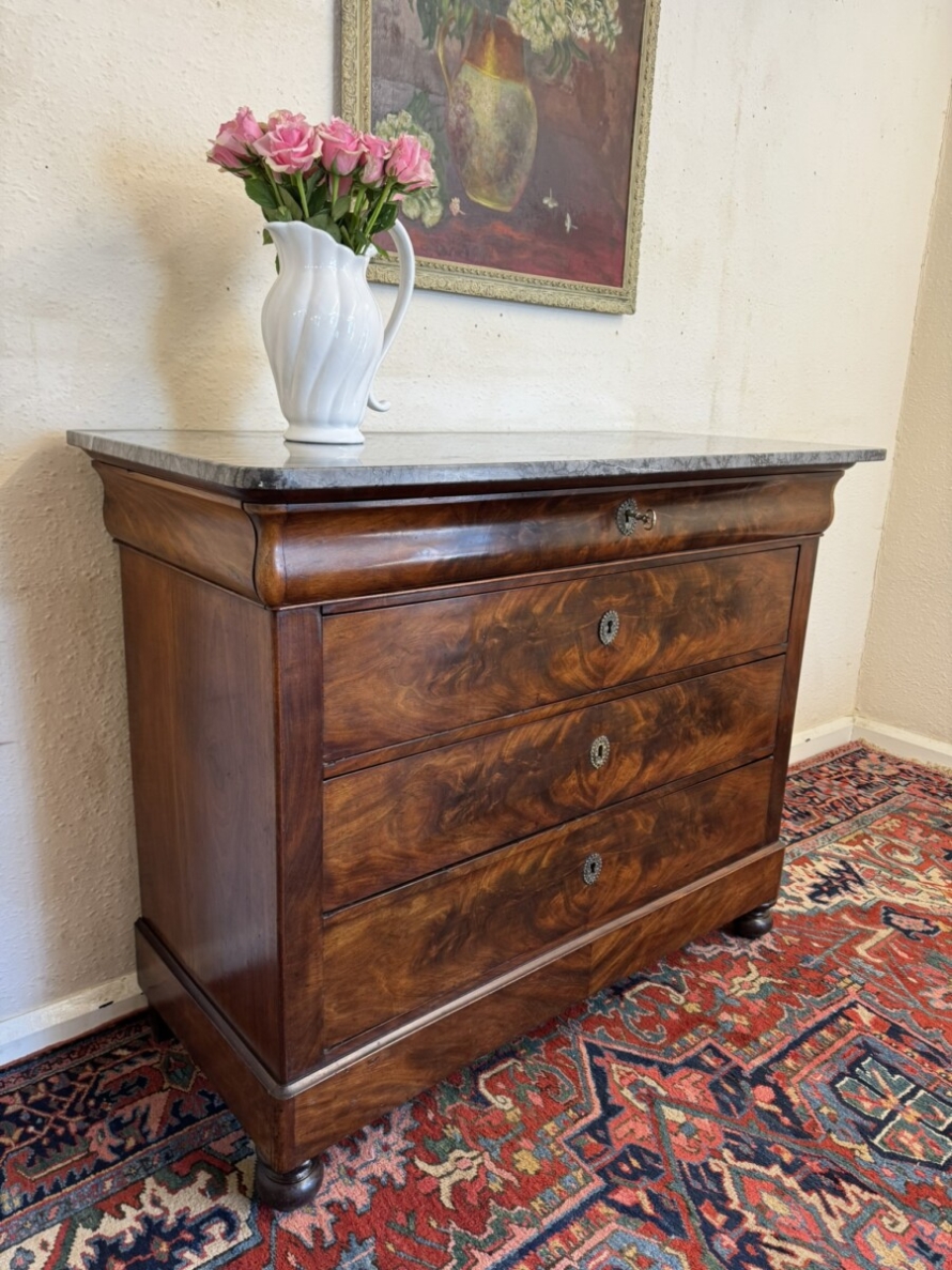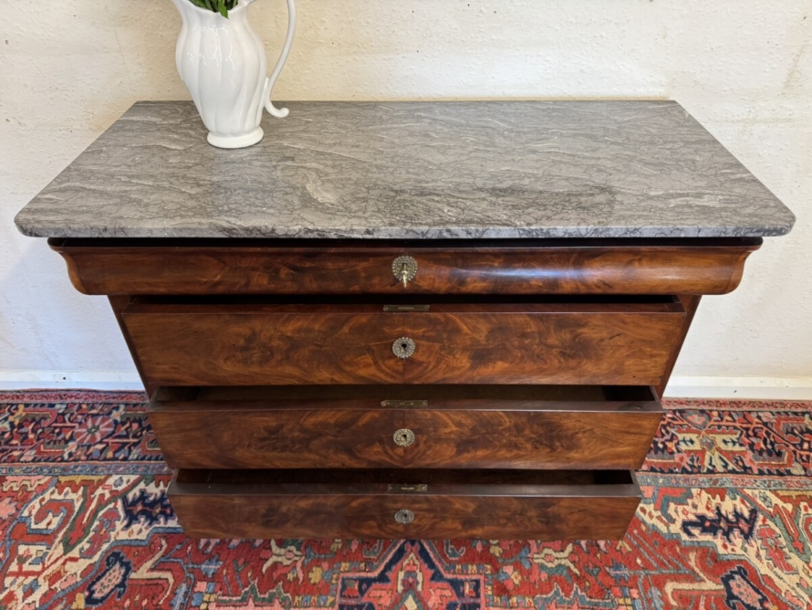 - ANTIQUE FRENCH MAHOGANY LOUIS PHILIPPE MARBLE TOP COMMODE/CHEST CIRCA 1840
