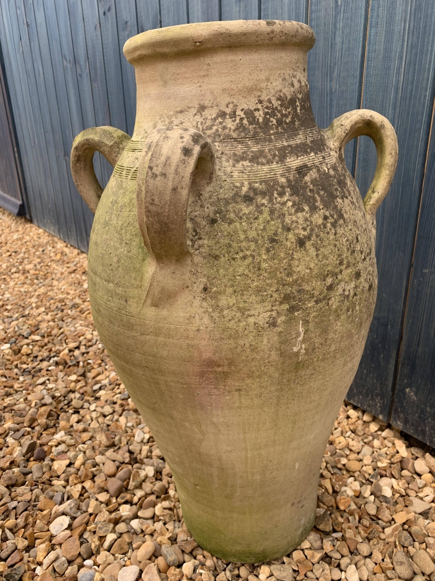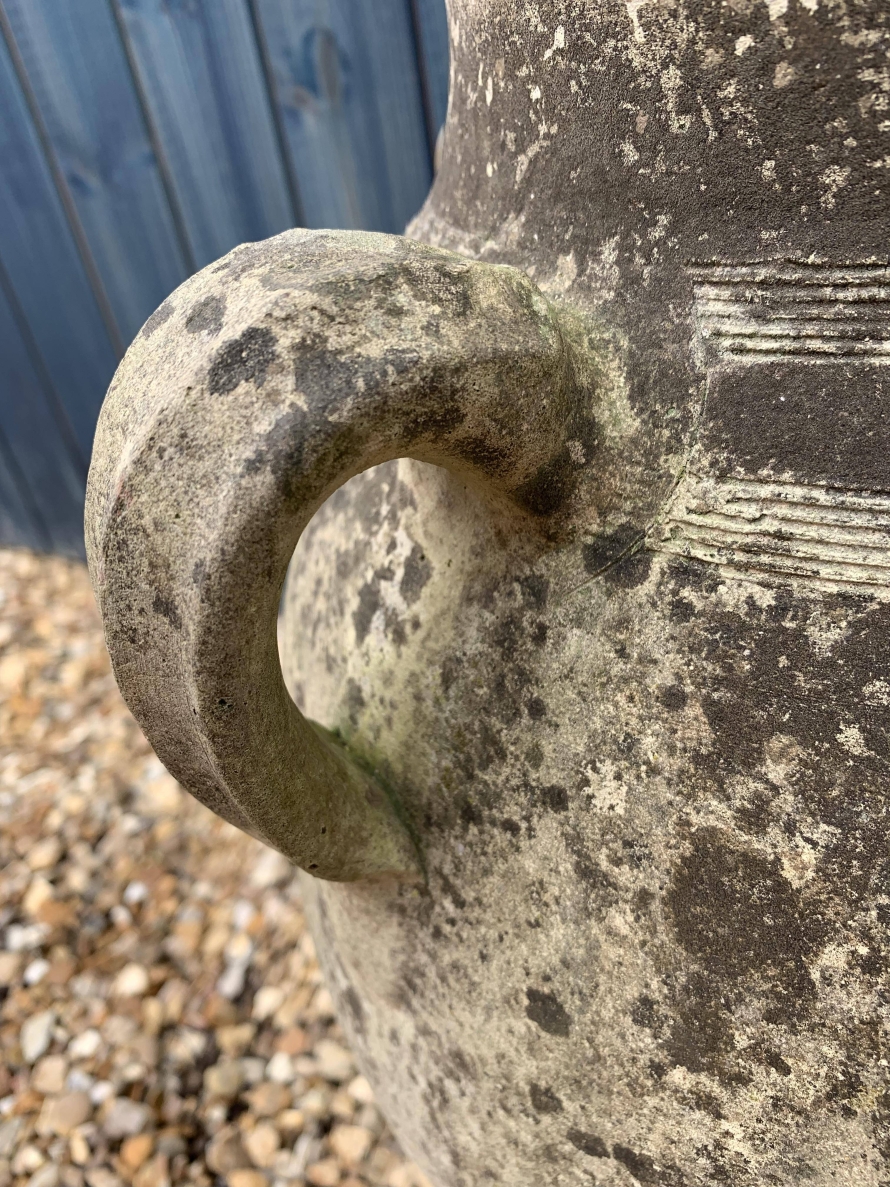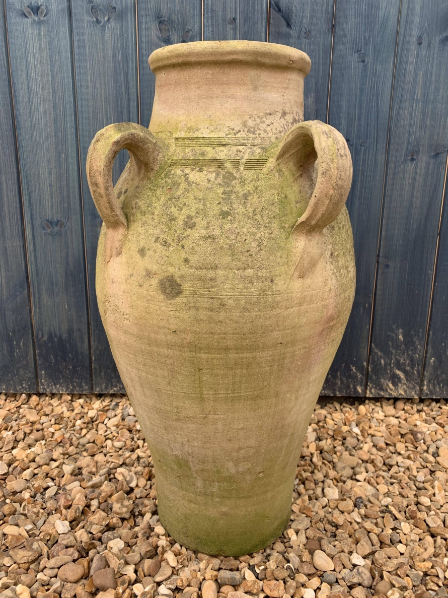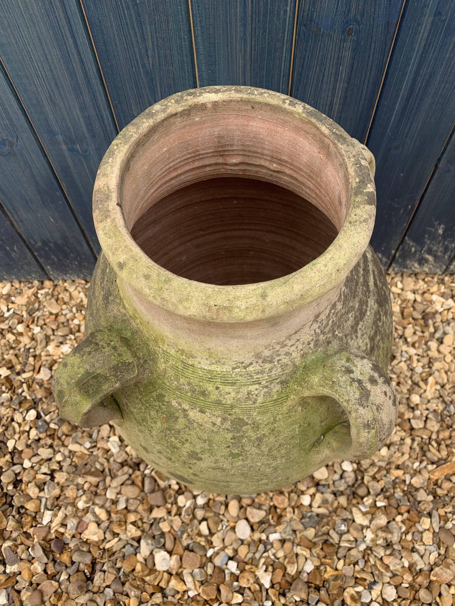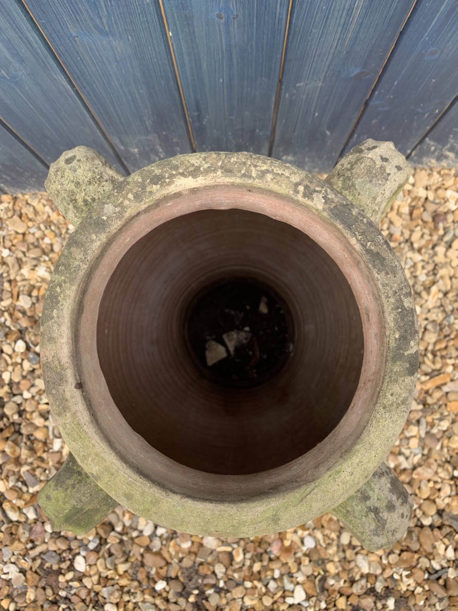 This four handled antique garden urn is in fabulous original condition and has a great patina.