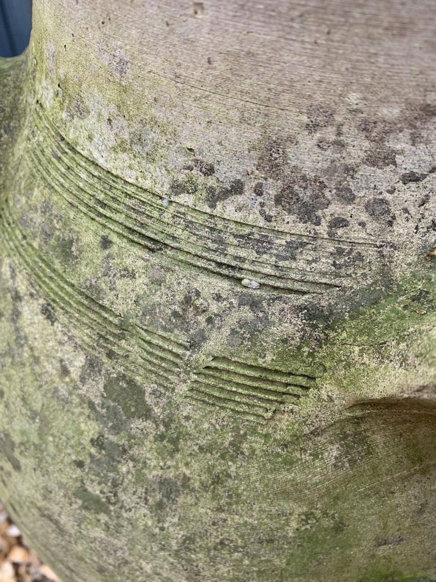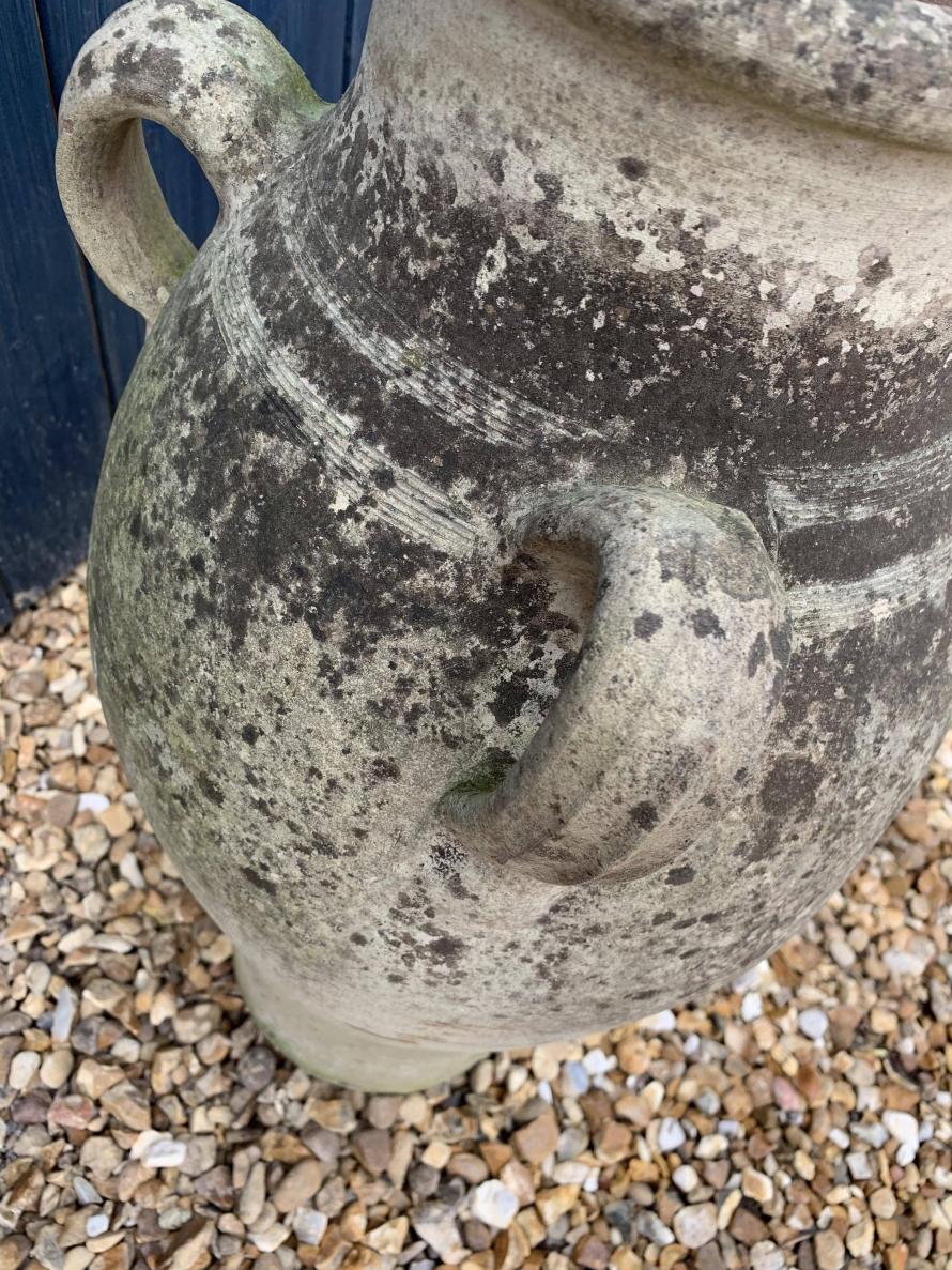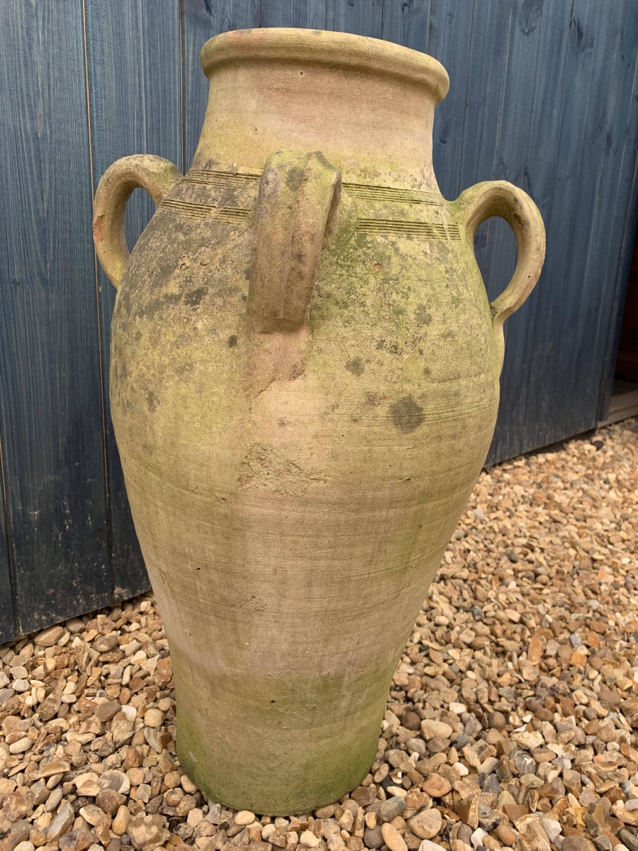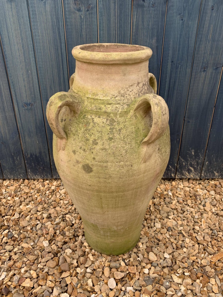 This four handled antique garden urn is in fabulous original condition and has a great patina.