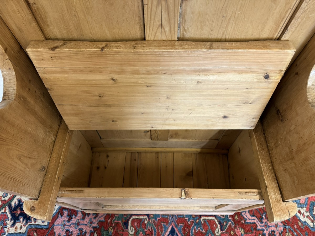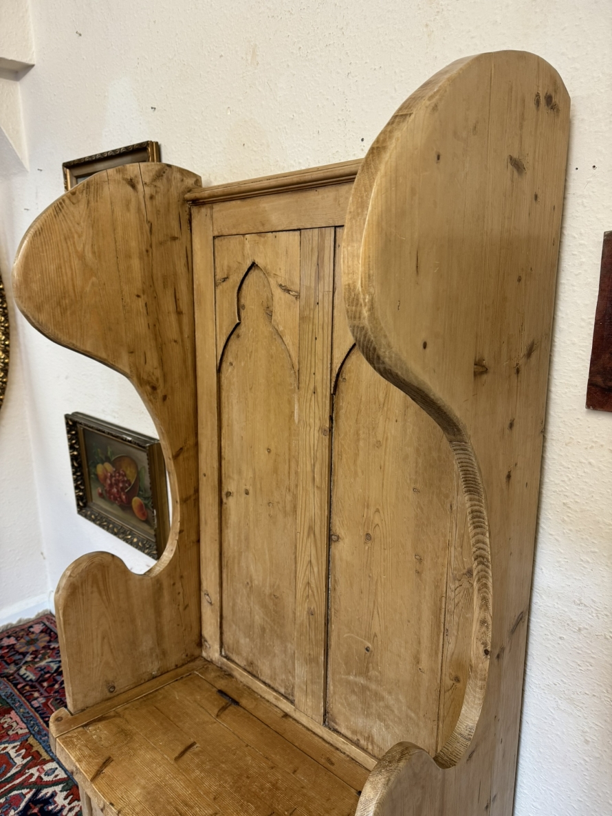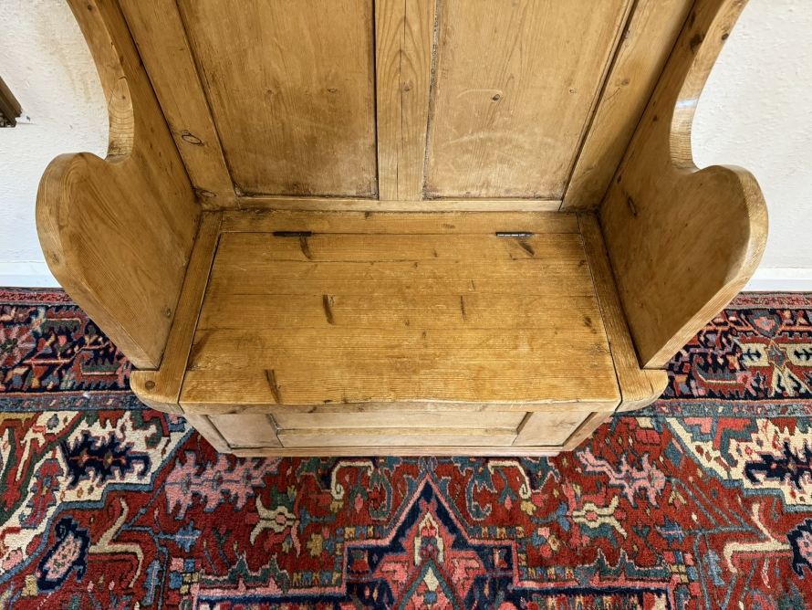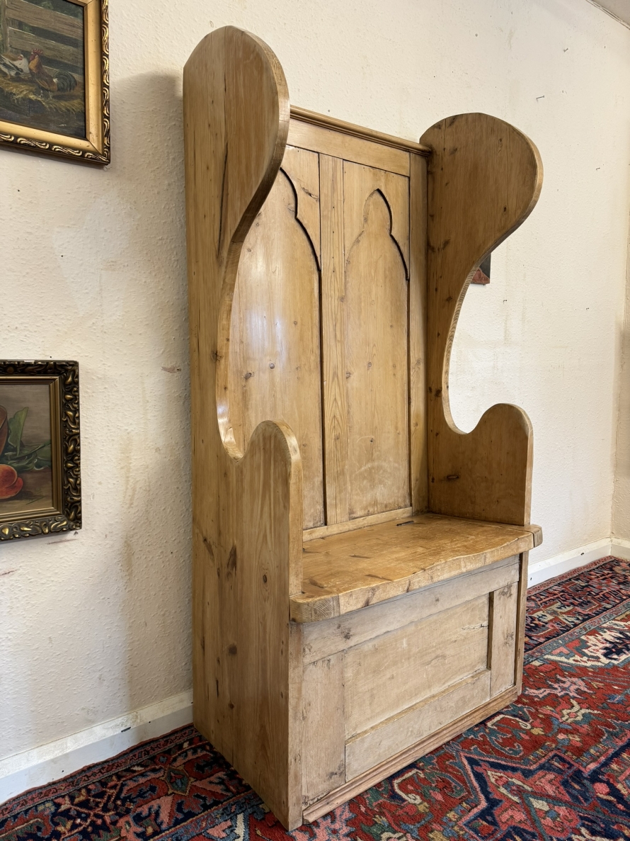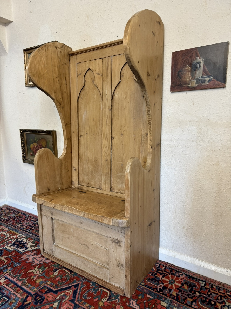 This this charming lambing chair has a high recessed panelled back, shaped wing arms, lift up seat which offers storage. Recessed panelled to the front, such a fabulous chair.