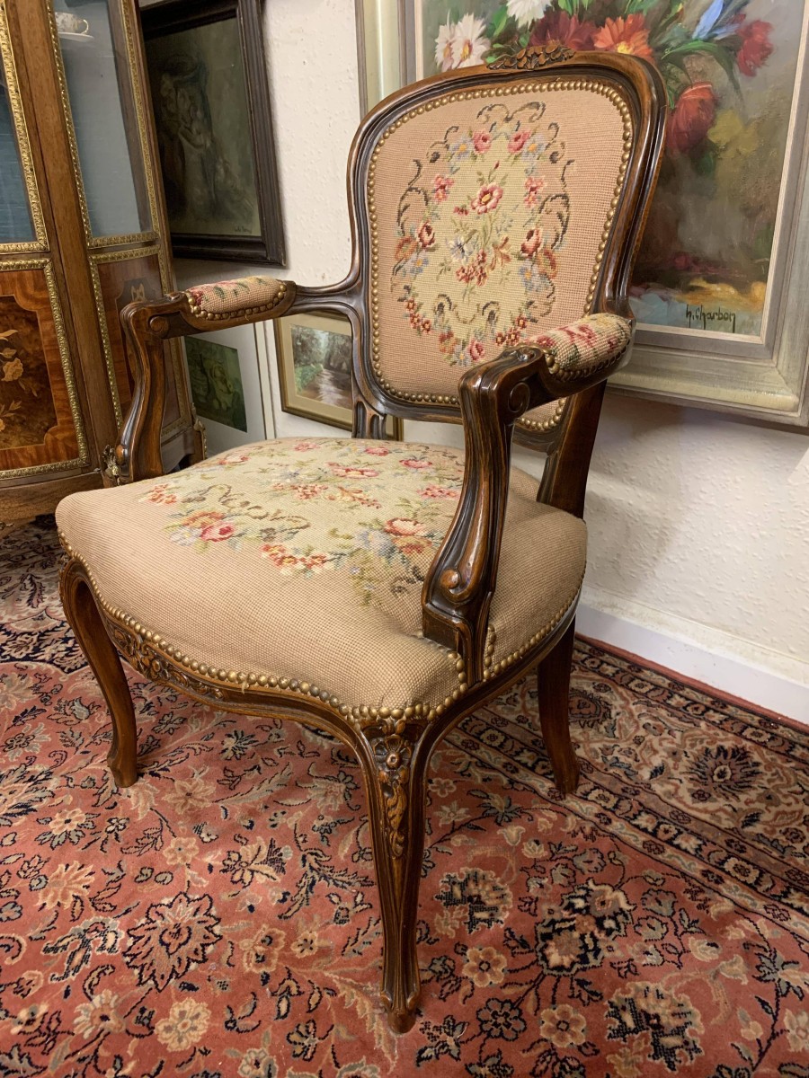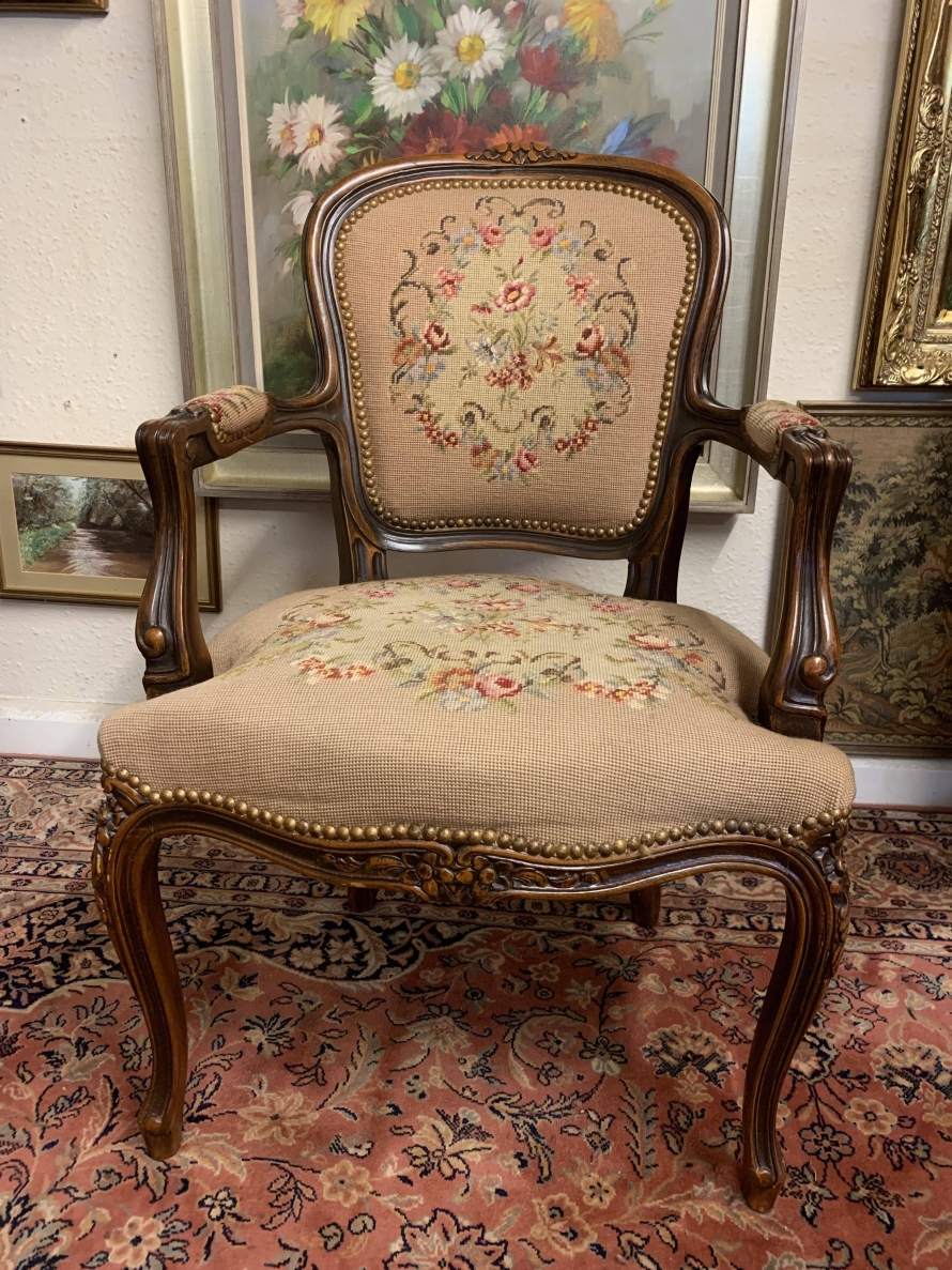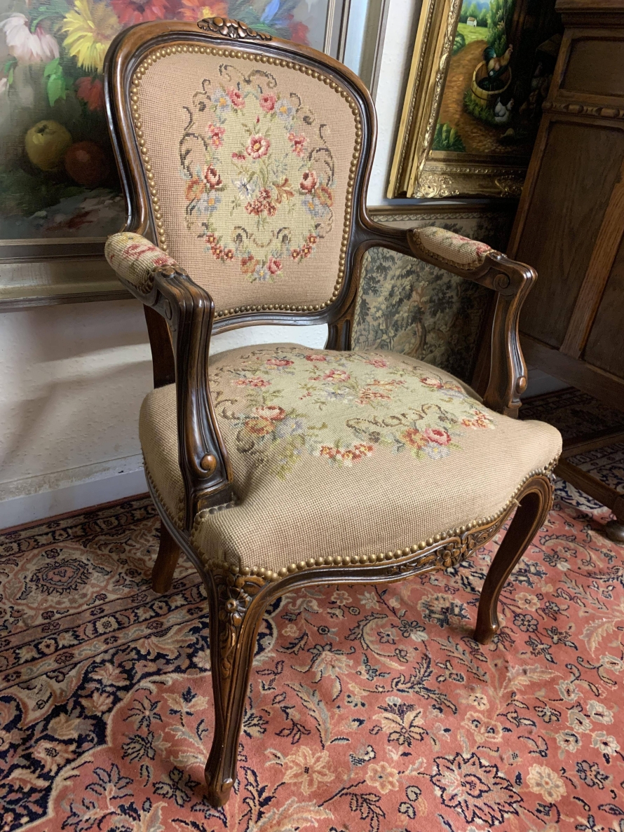 - Beautiful French Carved Oak Louis Xv Needlepoint Chair – Now Sold