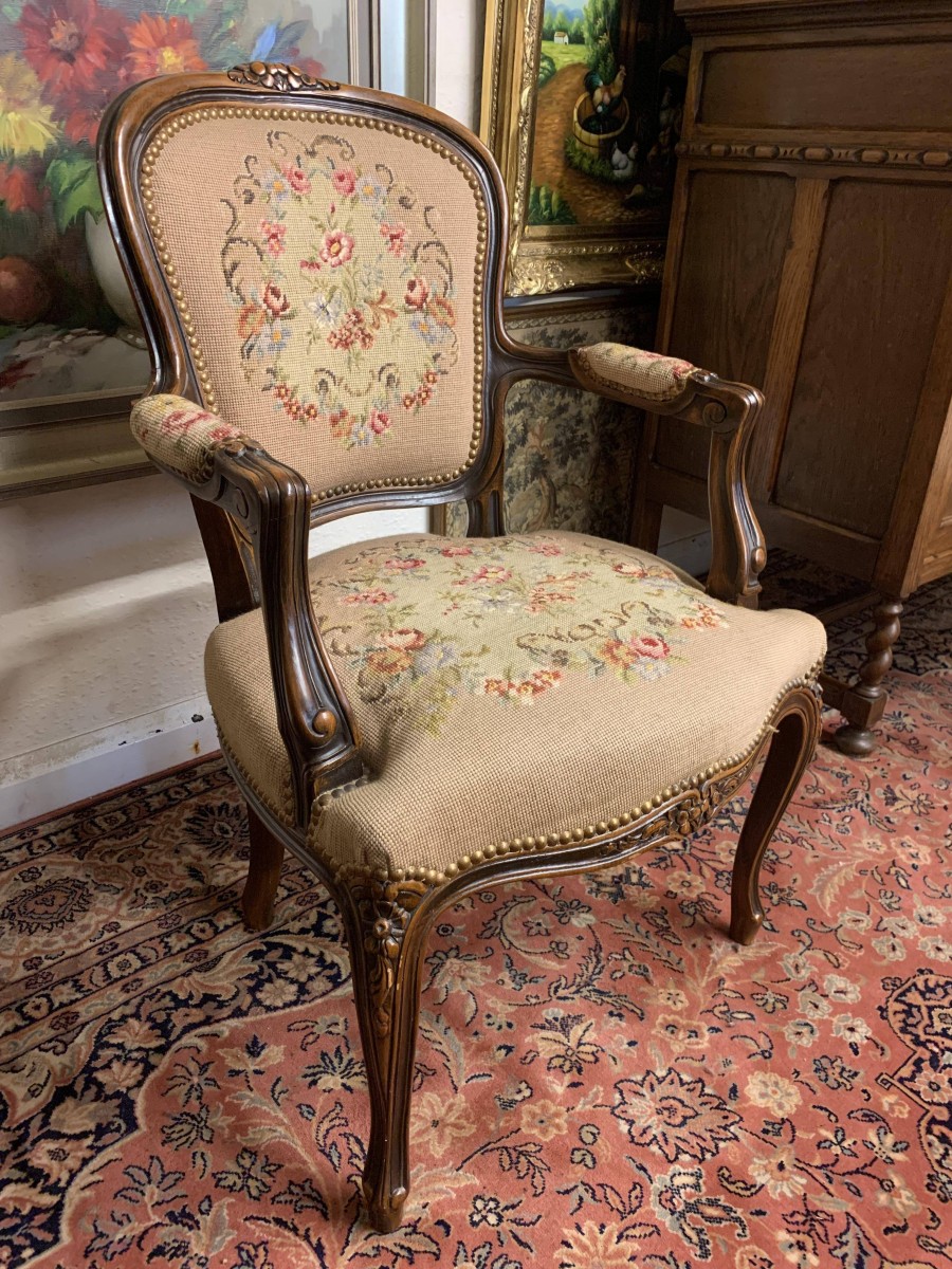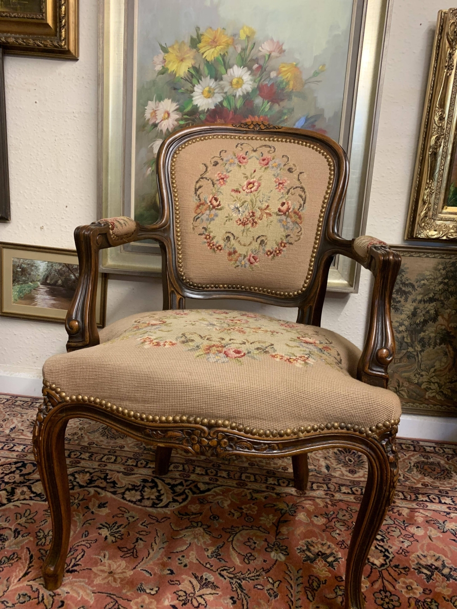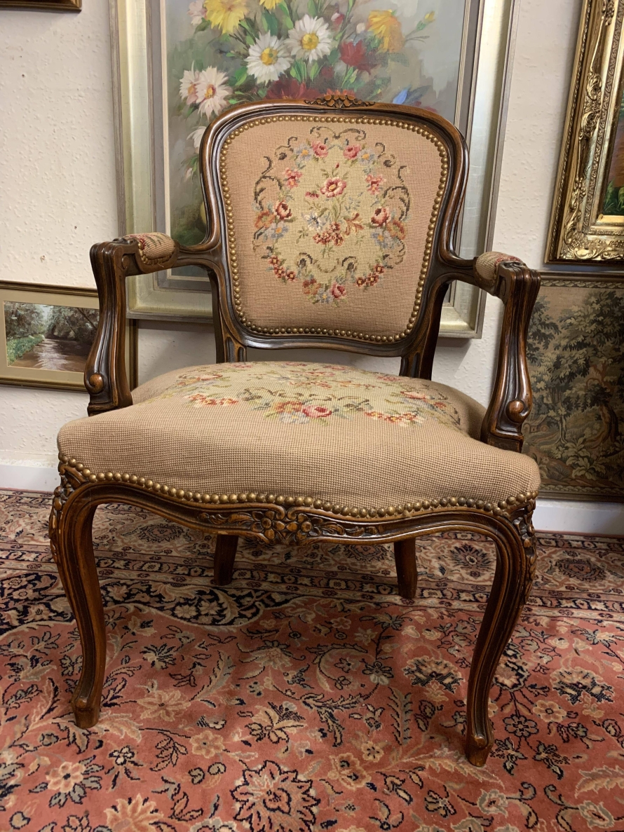 - Beautiful French Carved Oak Louis Xv Needlepoint Chair – Now Sold