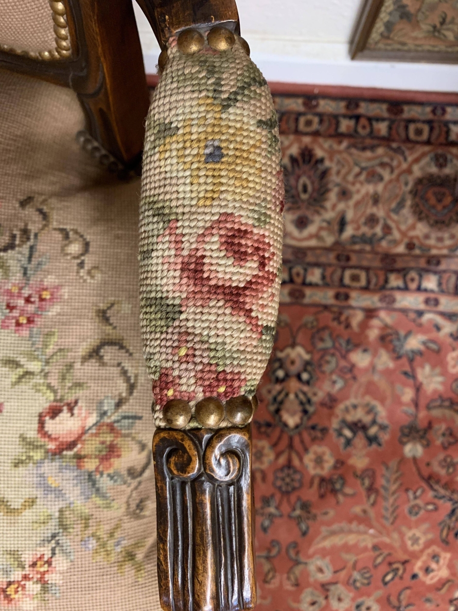 Beautiful French Carved Oak Louis Xv Needlepoint Chair – Now Sold