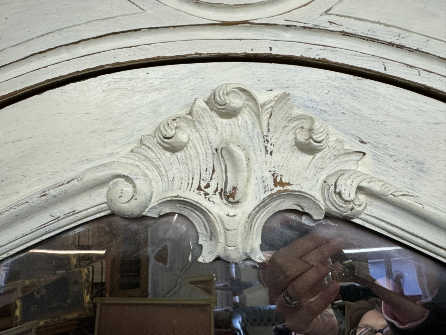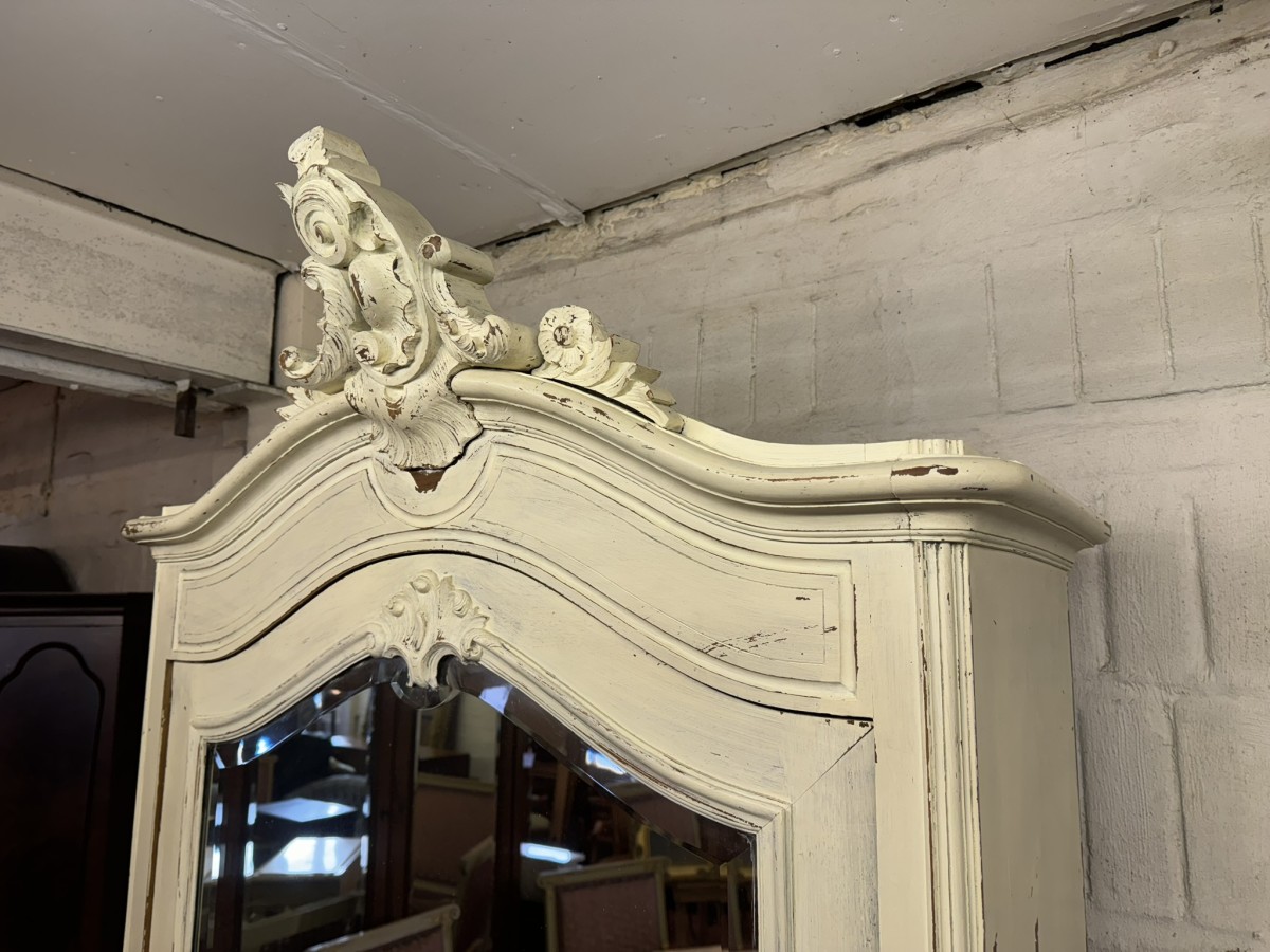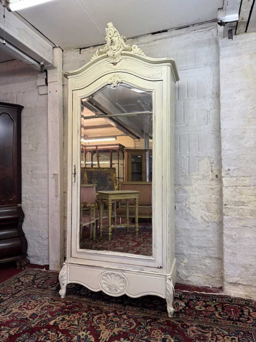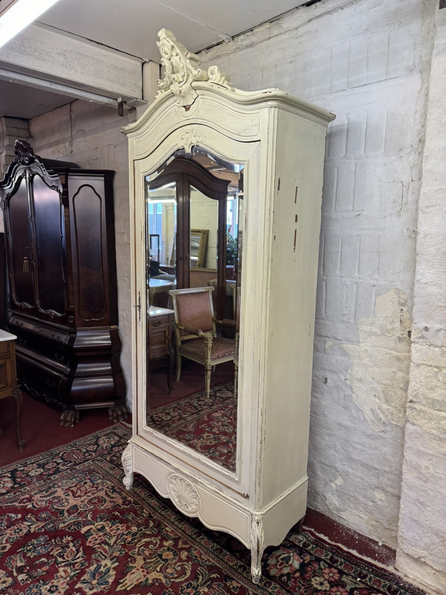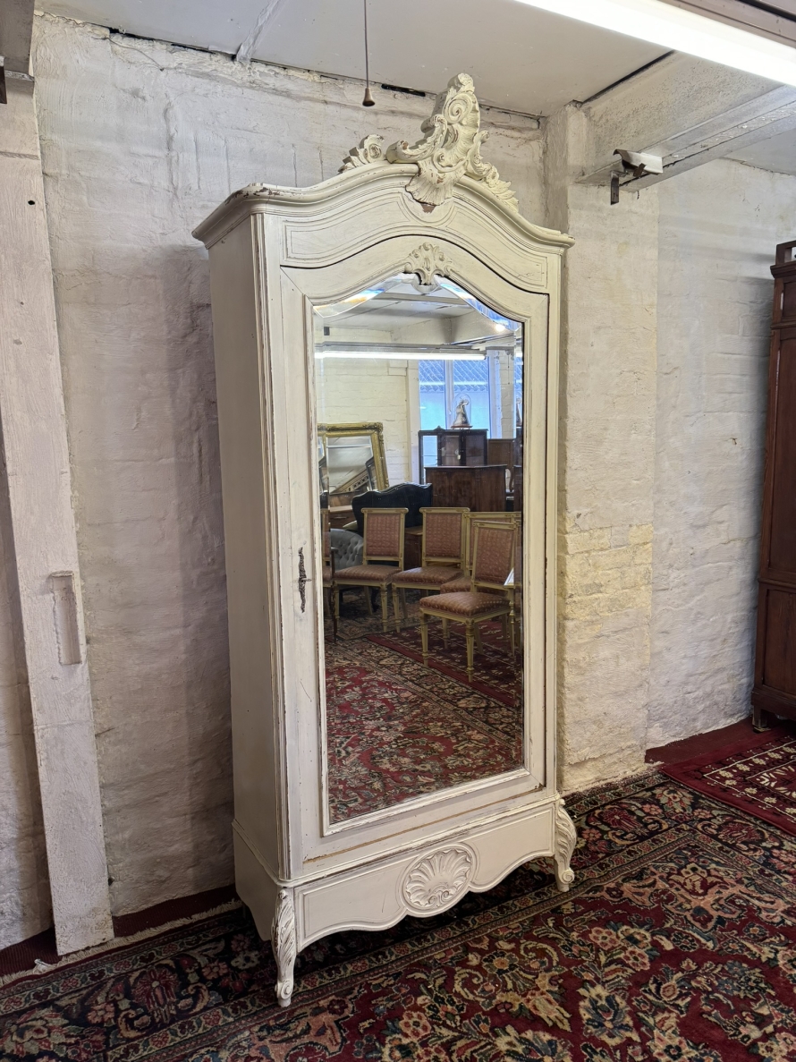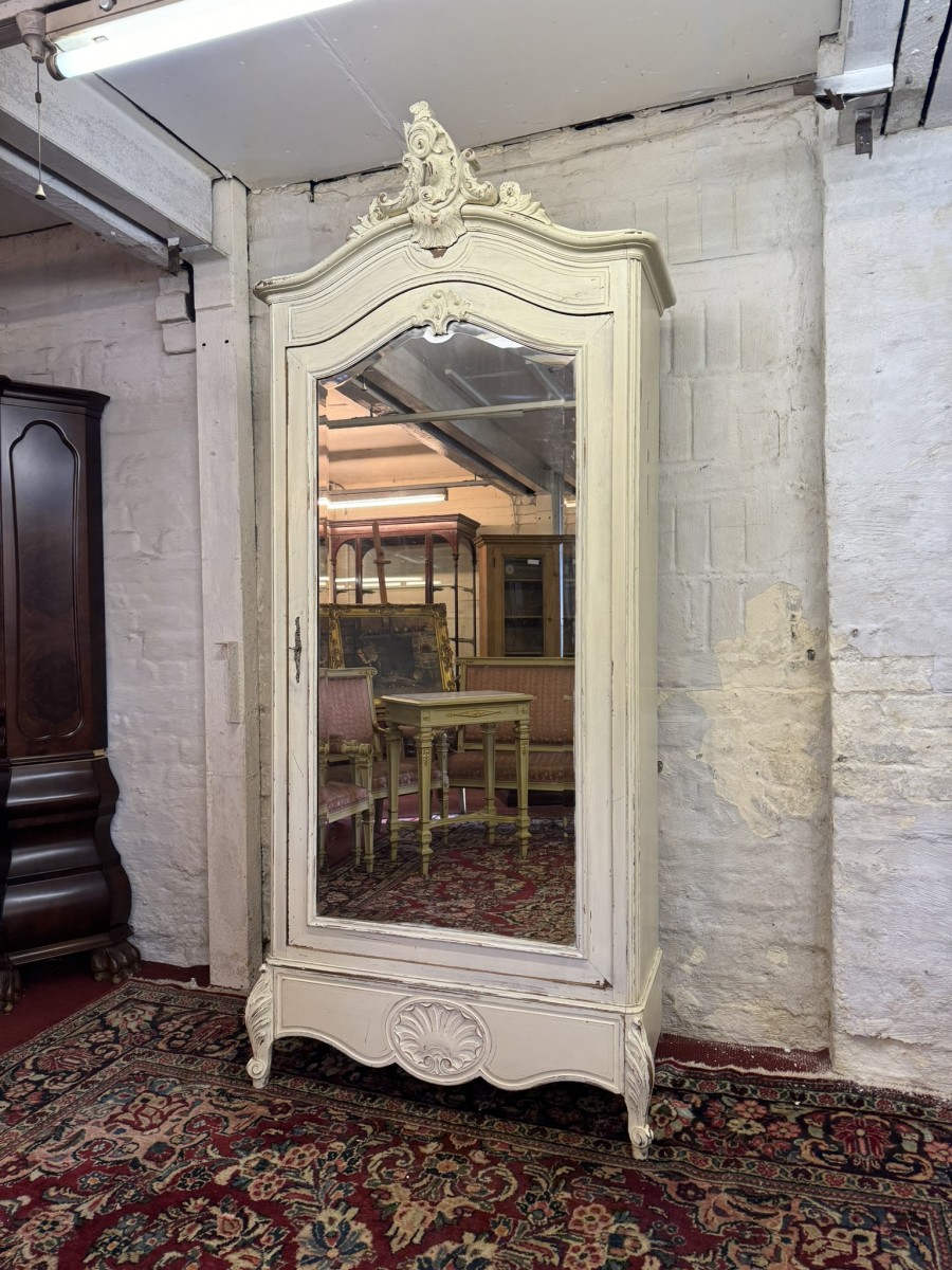 - Carved Antique French Painted Mirrored Linen Cupboard/armoire Circa 1890