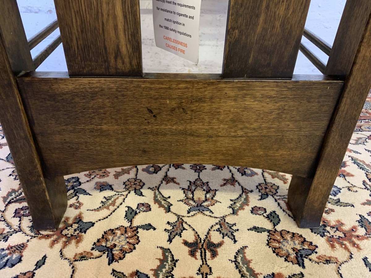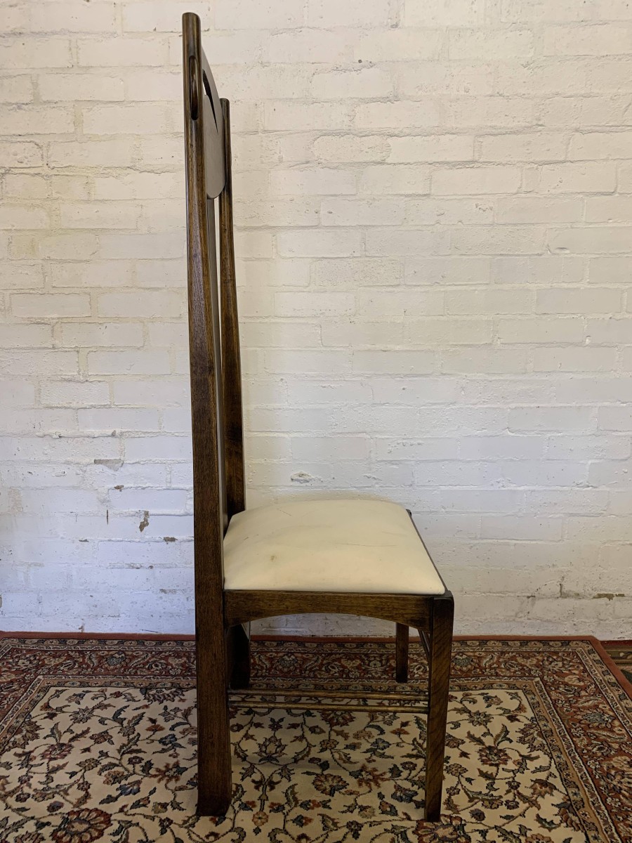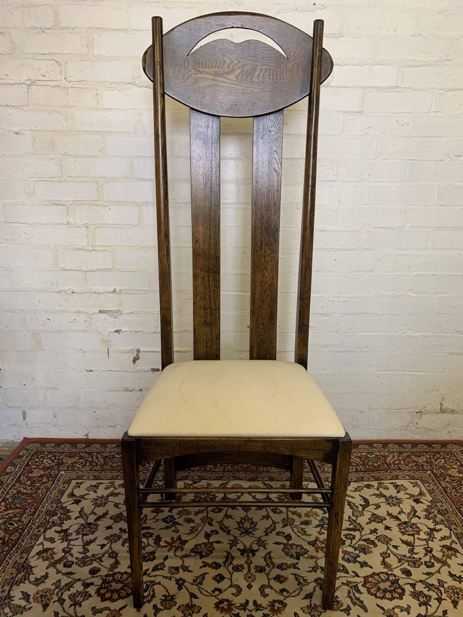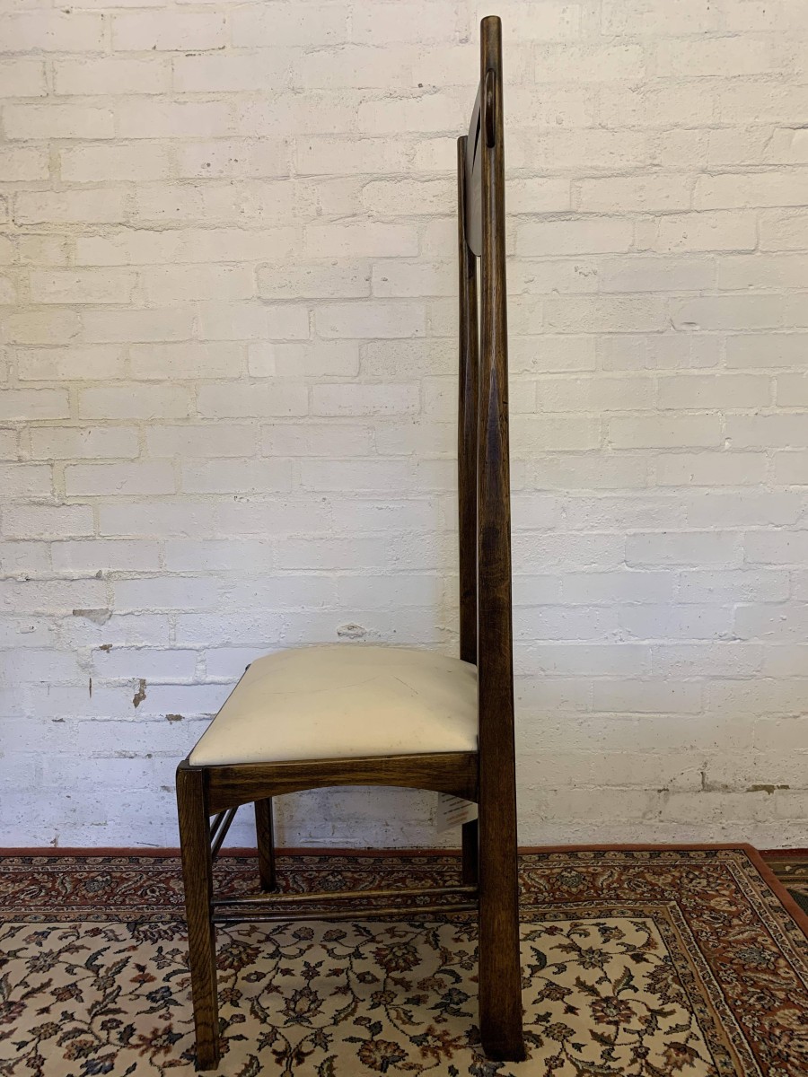 We are delighted to offer this stunning Charles Rennie Mackintosh Argyle Chair, created for the Argyle Street Tea Rooms in Glasgow. Beautifully recreated in solid oak with a calico seat waiting for your choice of fabric. The “Swallow In Flight” headrest is iconic.