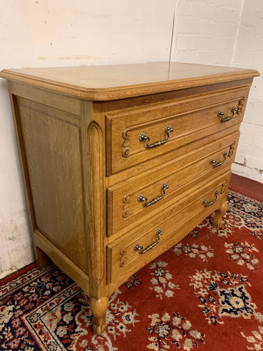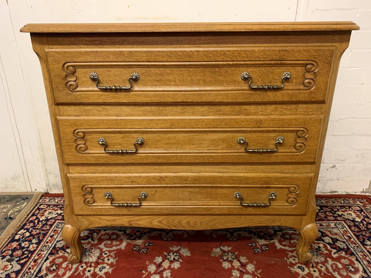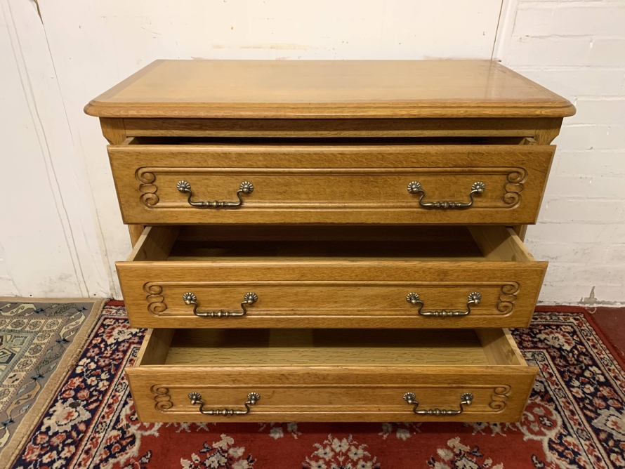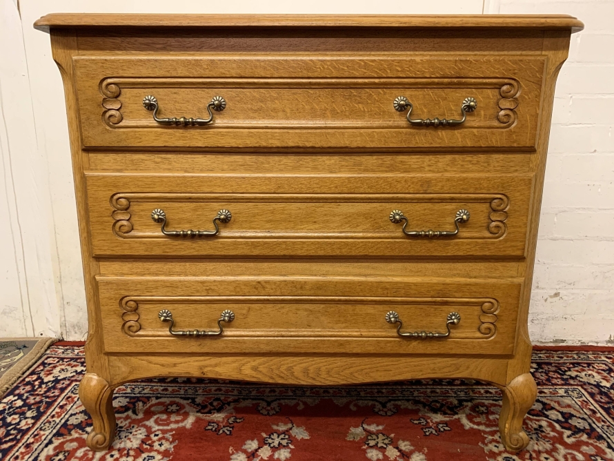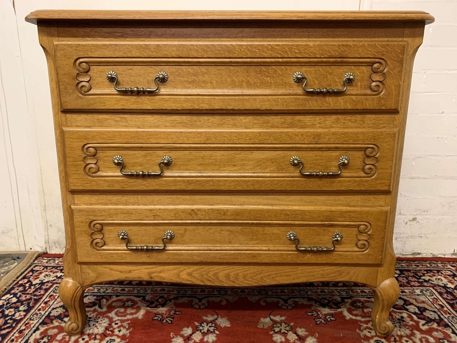 Charming French Carved Oak Chest Of Three Drawers – Now Sold