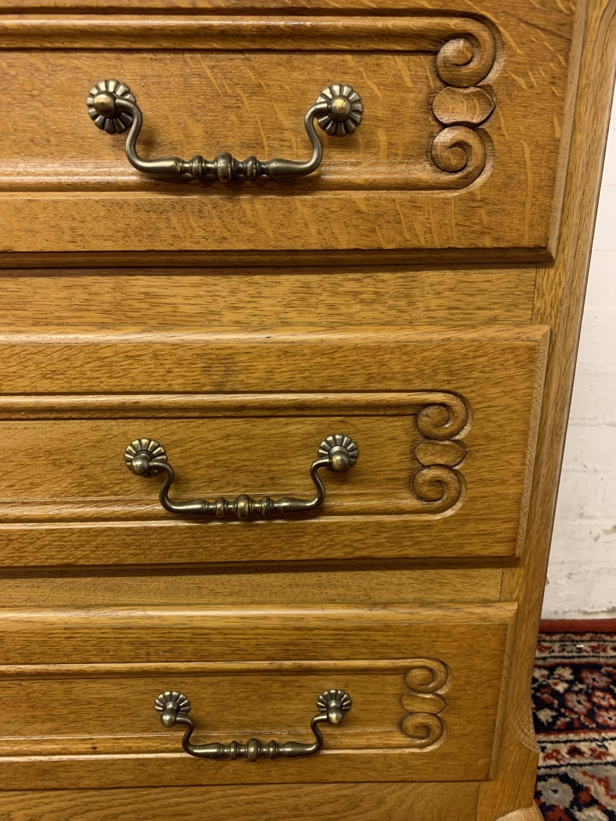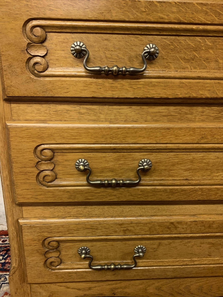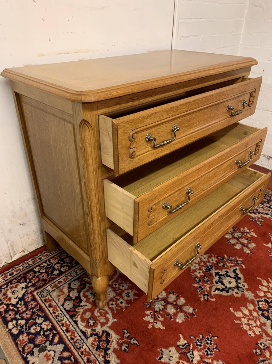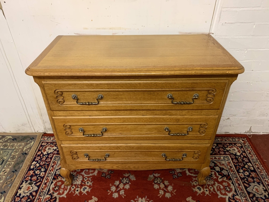Charming French Carved Oak Chest Of Three Drawers – Now Sold