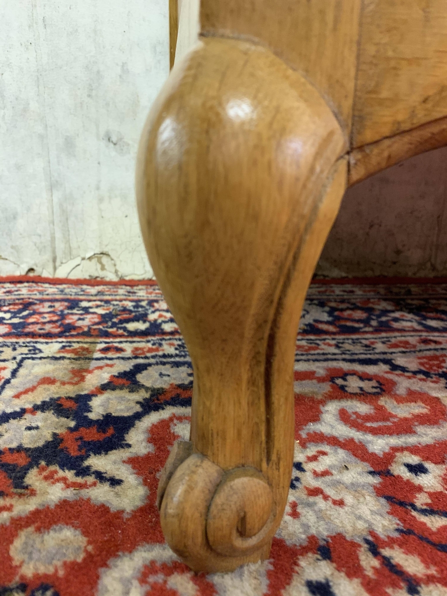 The cross banded over sailing top sits above three carved drawers, each drawer having a pair of brass handles, each drawer slides in and out easily. The corners are canted at the front, this attractive chest of drawers stands on carved shaped cabriole legs to the front.