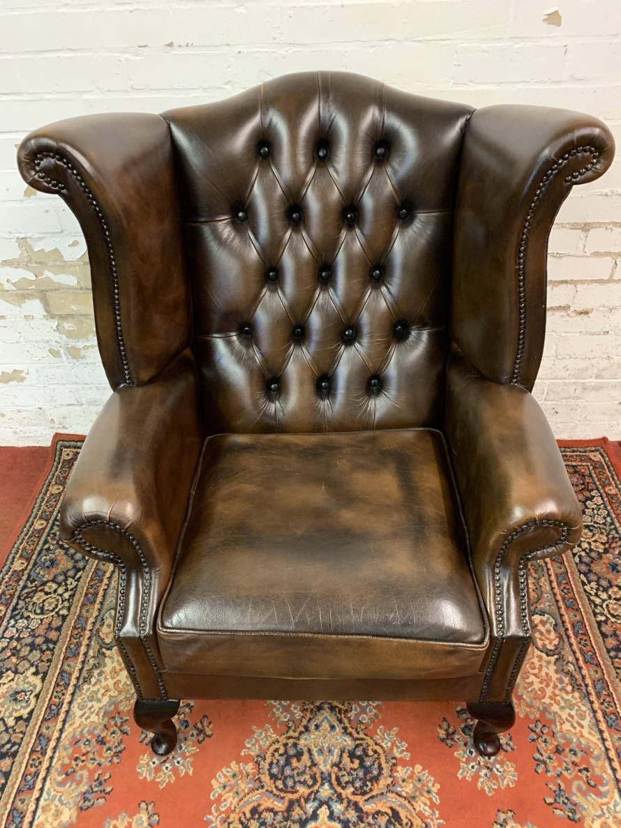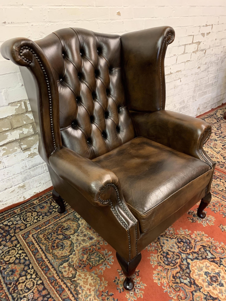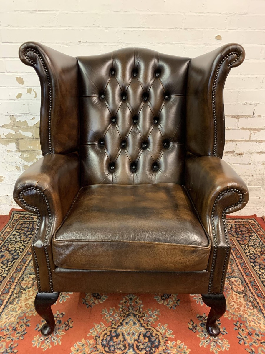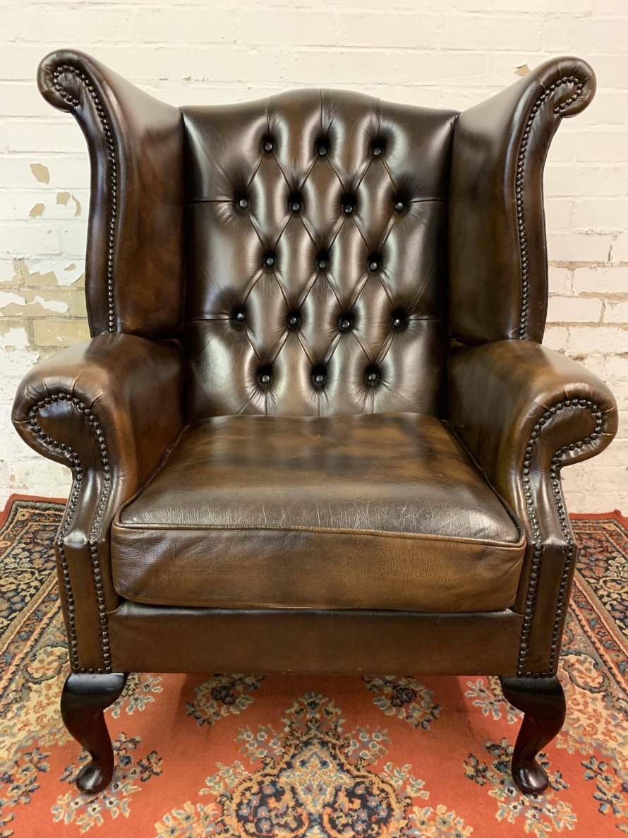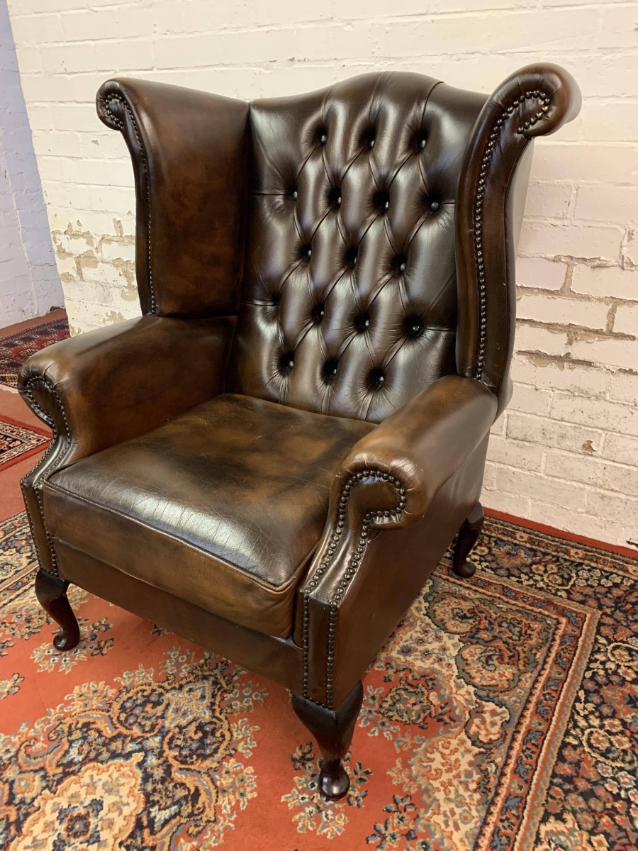 - Classic Antique Brown Leather Chesterield Wingback Armchair – Now Sold