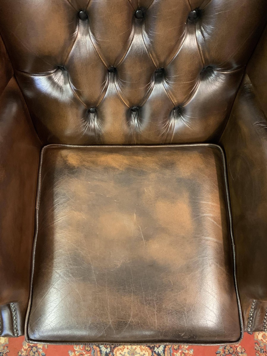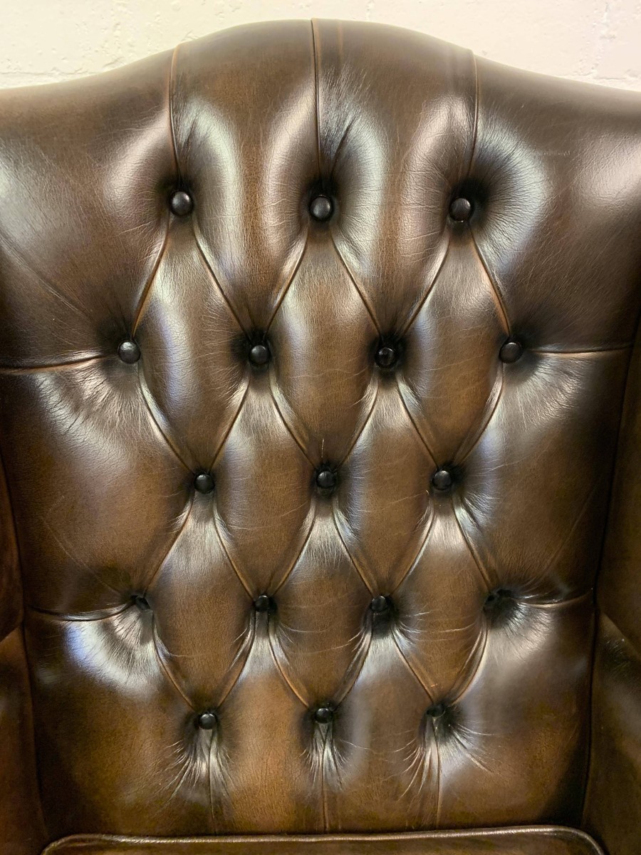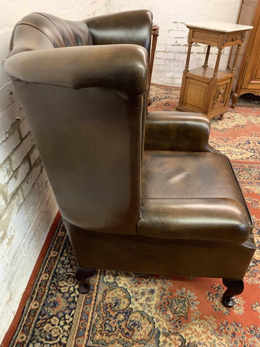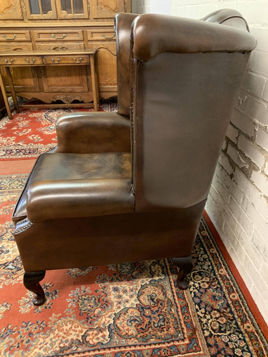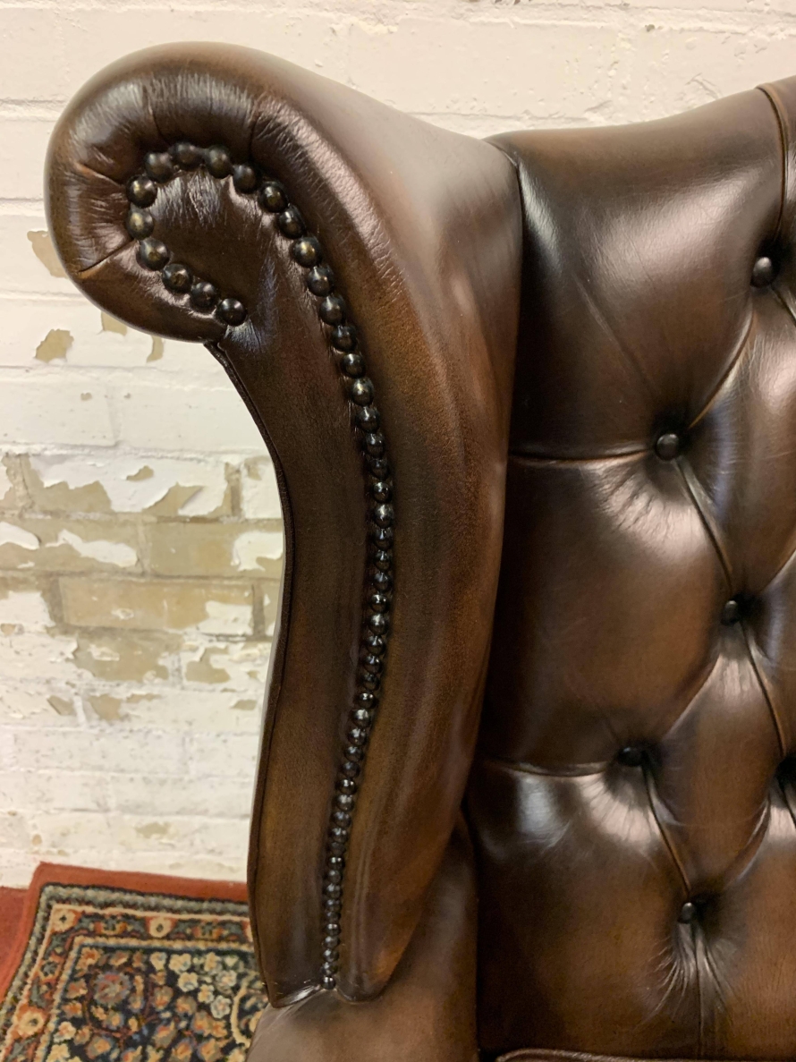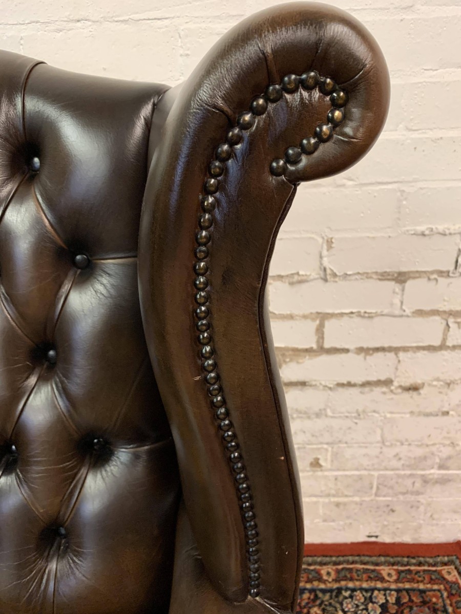 - Classic Antique Brown Leather Chesterield Wingback Armchair – Now Sold