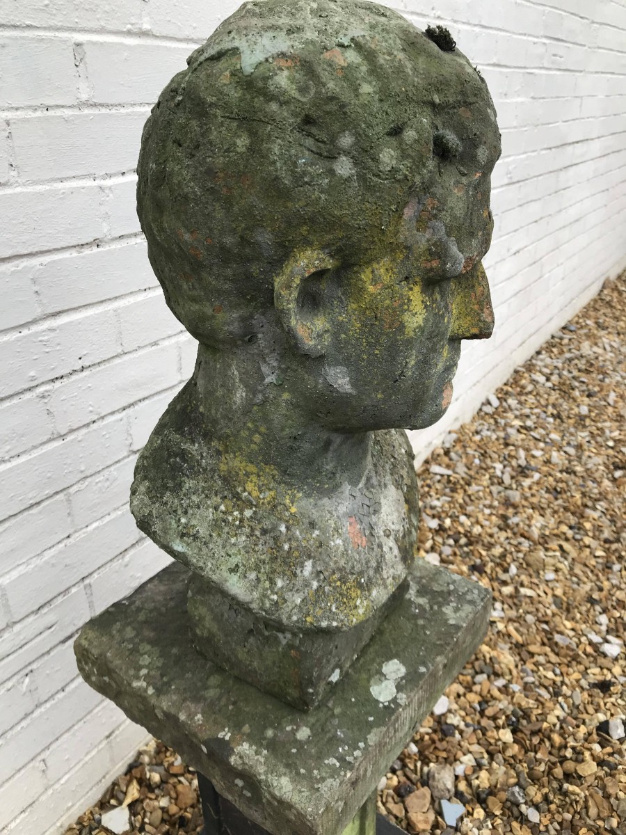 Decorative Victorian Terracotta Bust on Plinth Depicting “Marcus Vipsanius Agrippa” Son in Law of & Lieutenant to Julius Caesar