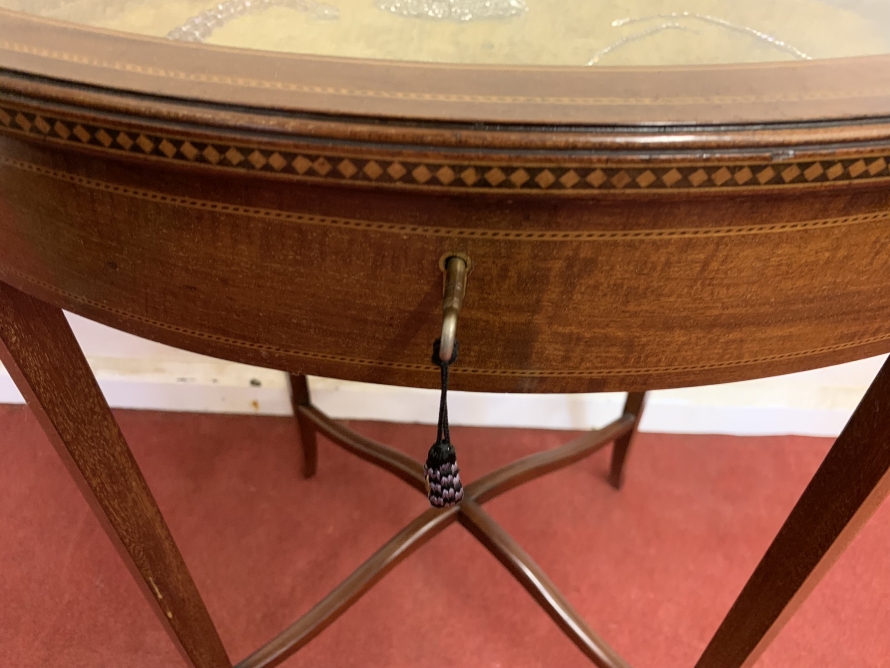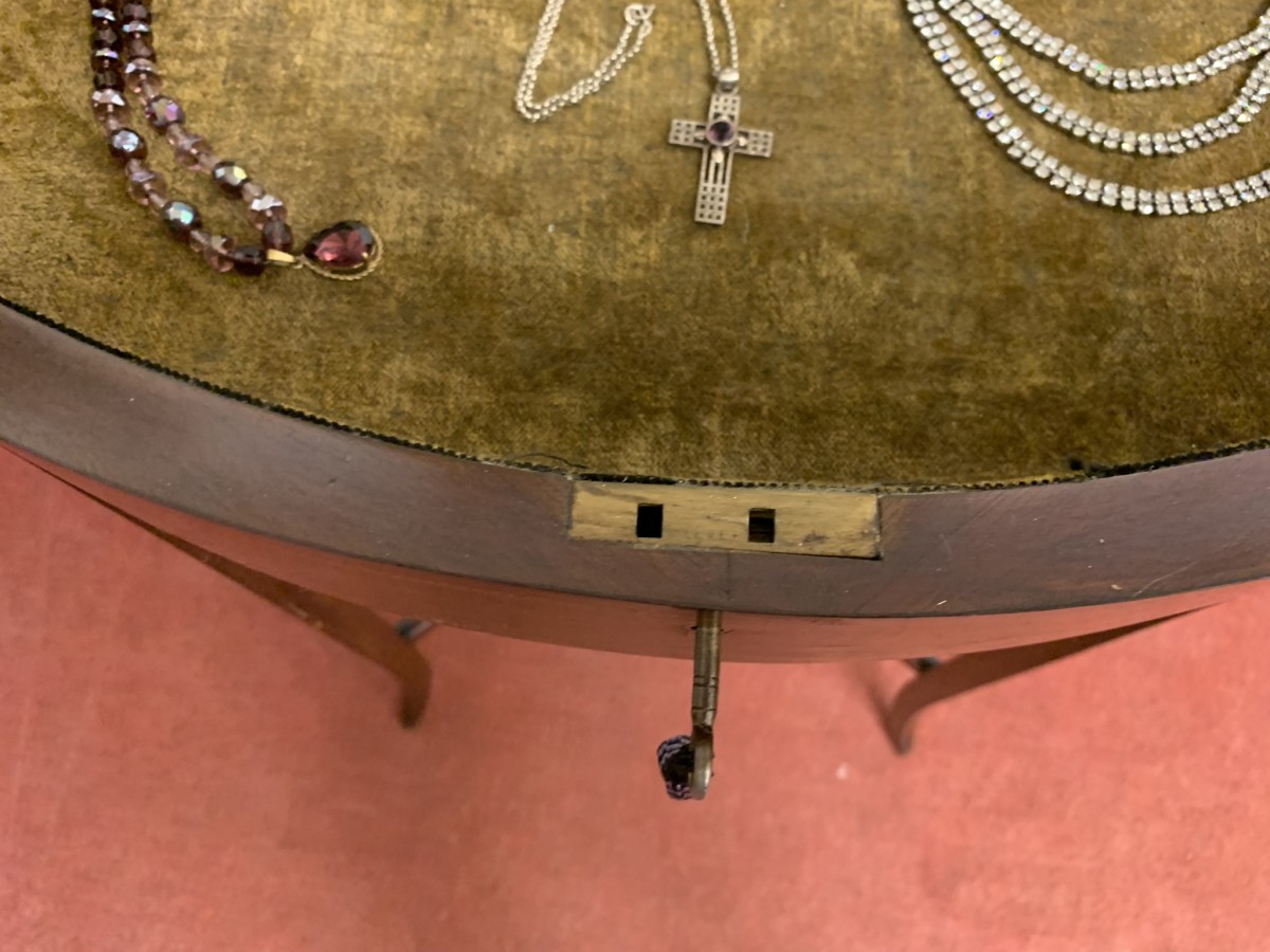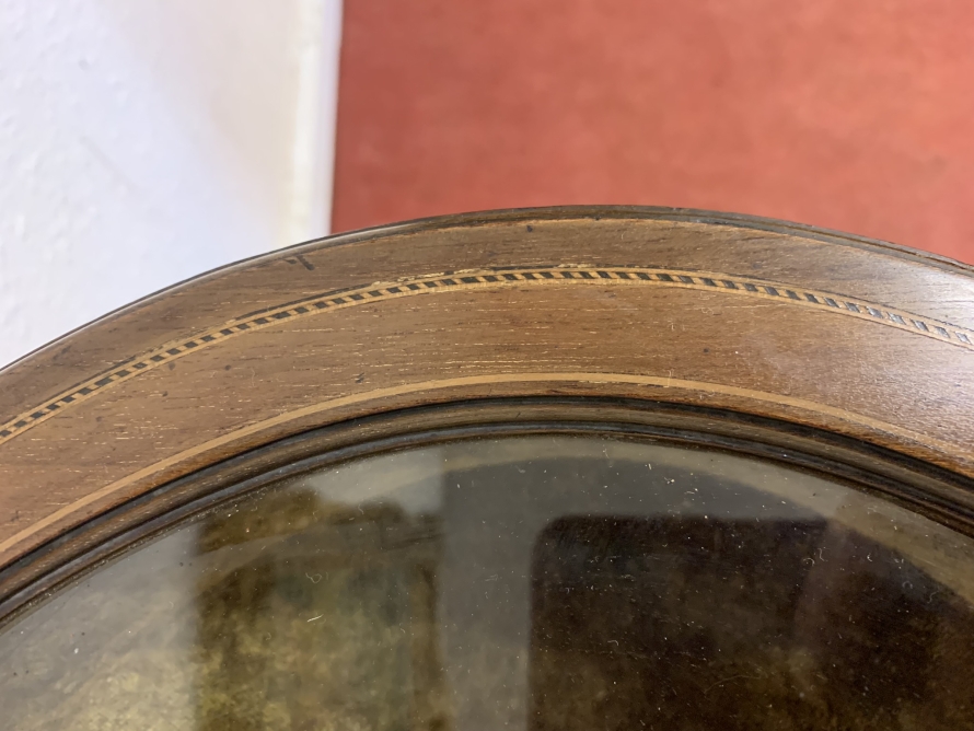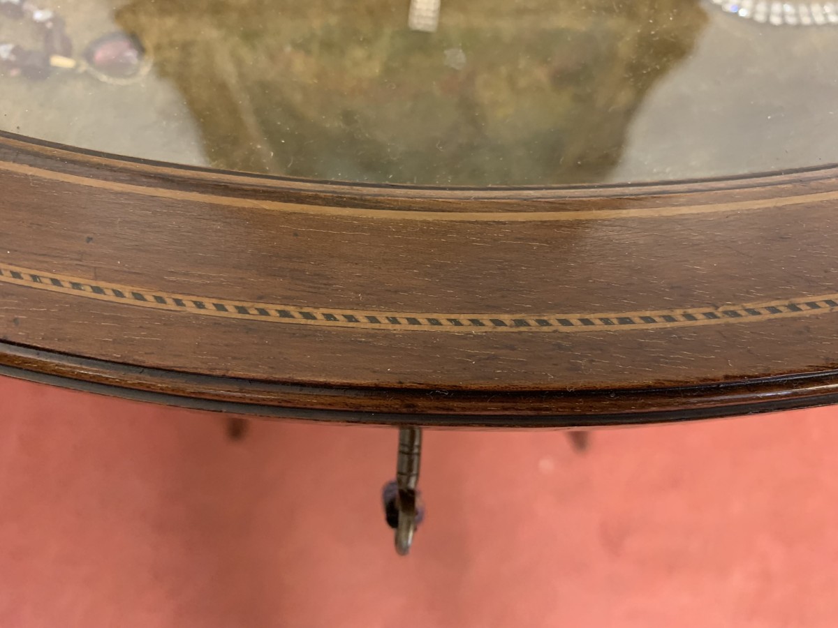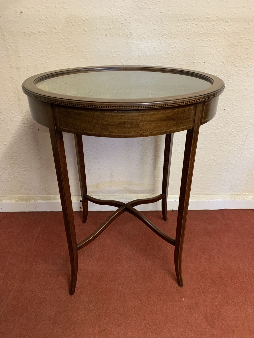 - Elegant Antique Oval Inlaid Mahogany Glass Topped Bijouterie Display Case – Now Sold