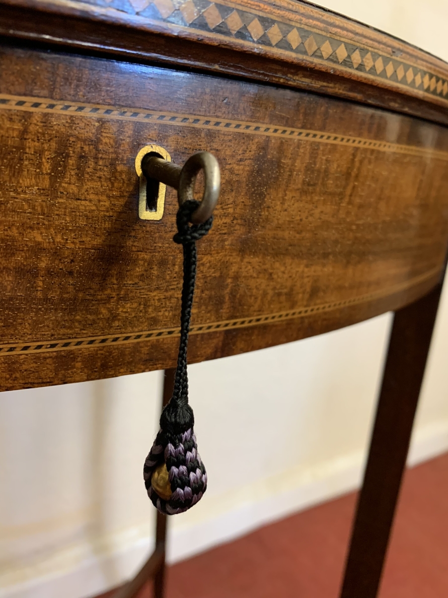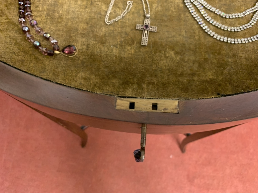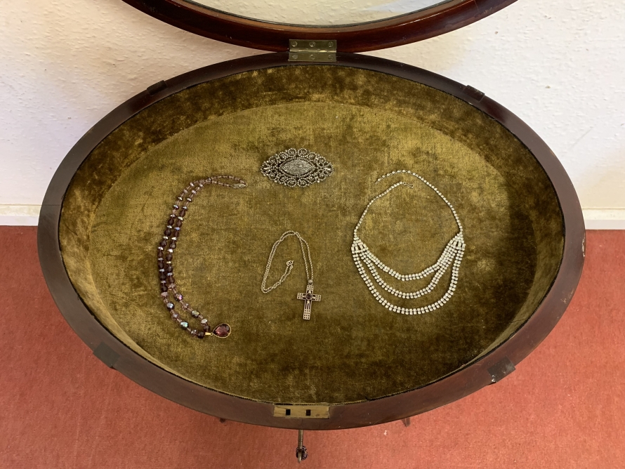 Elegant Antique Oval Inlaid Mahogany Glass Topped Bijouterie Display Case – Now Sold