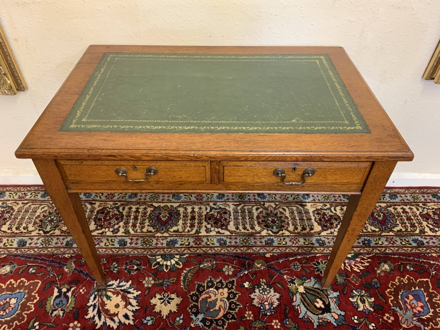 Elegant Edwardian Oak Leather Top Two Drawer Desk Circa 1915 – Now Sold