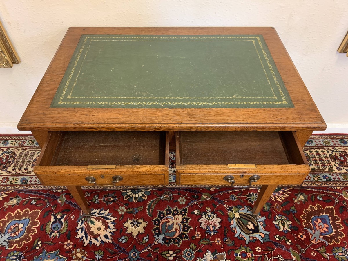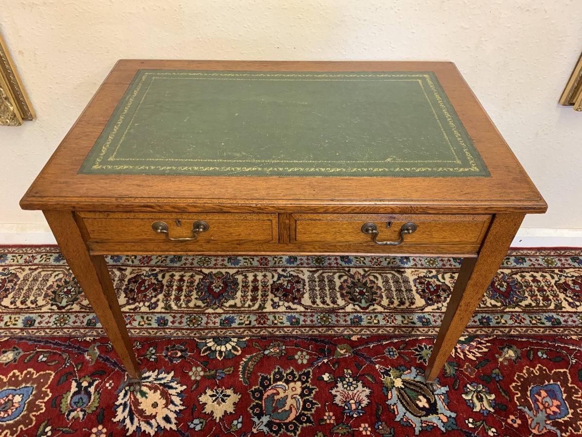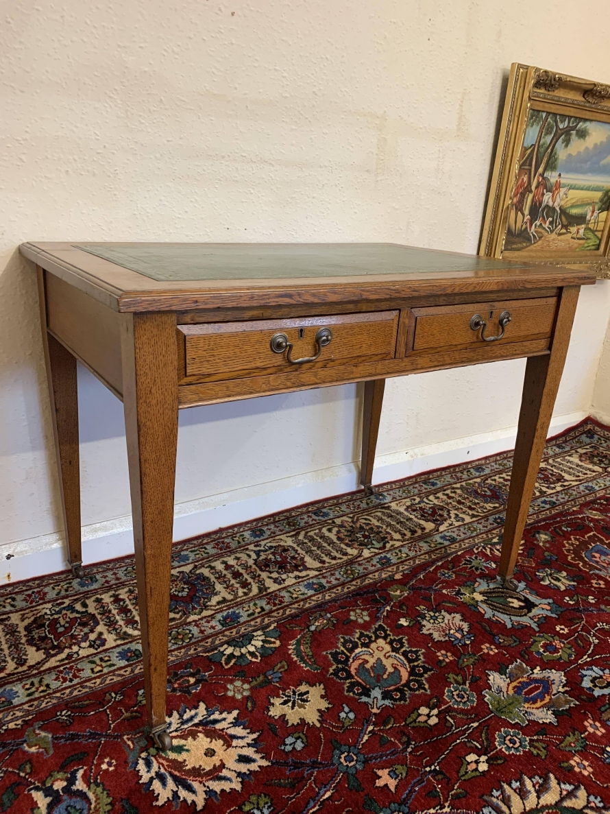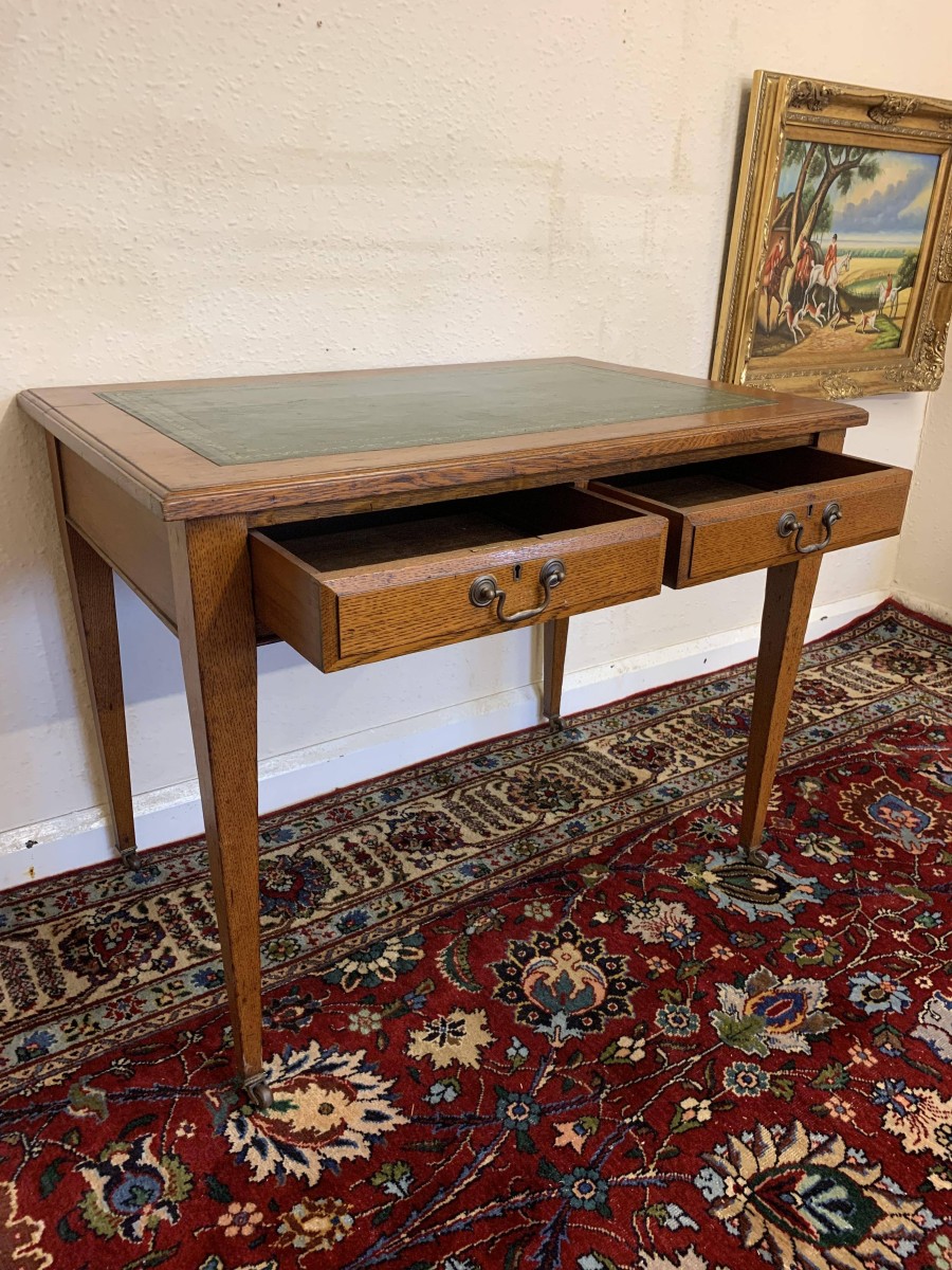 - Elegant Edwardian Oak Leather Top Two Drawer Desk Circa 1915 – Now Sold