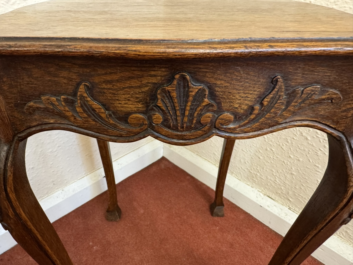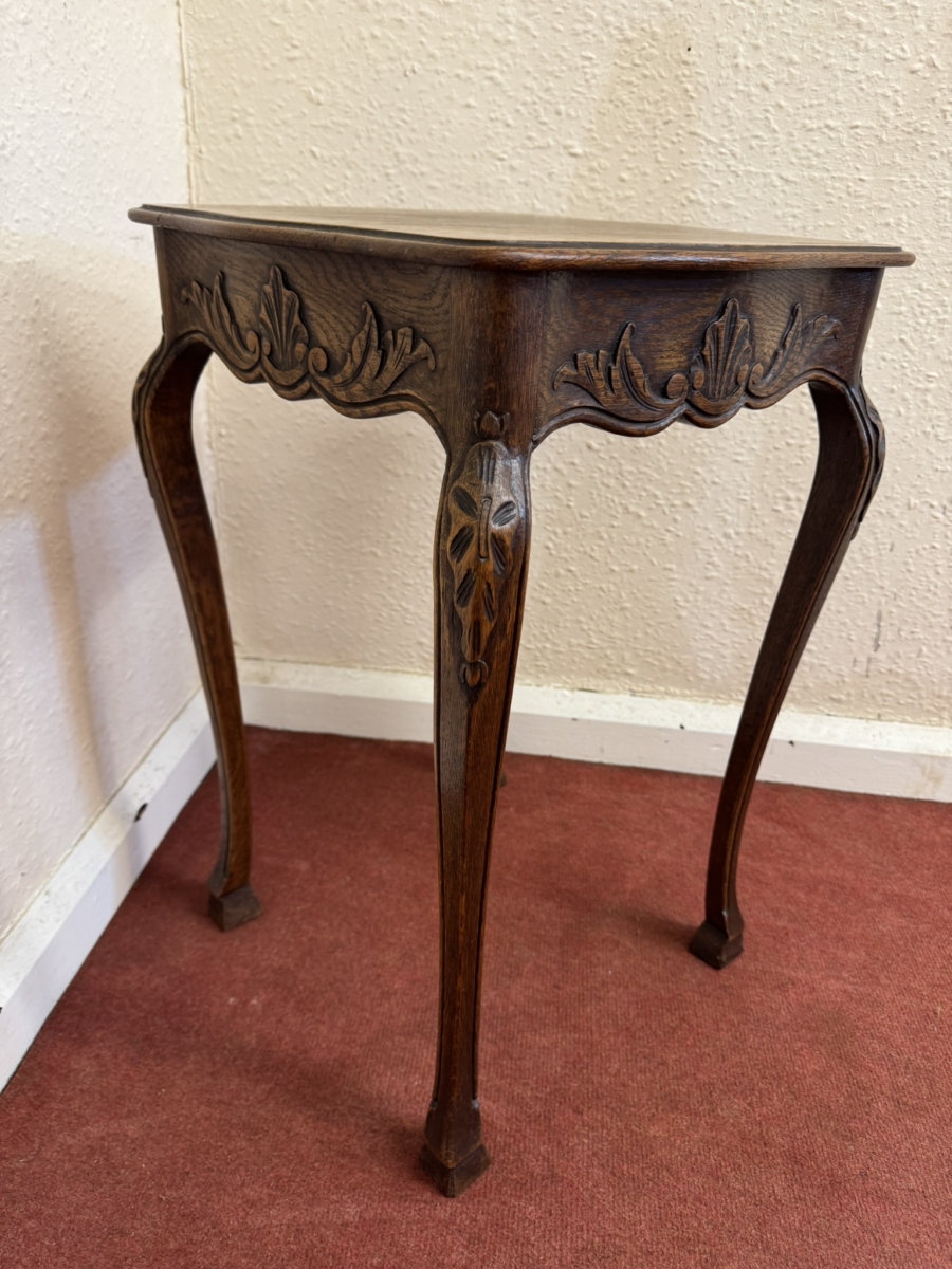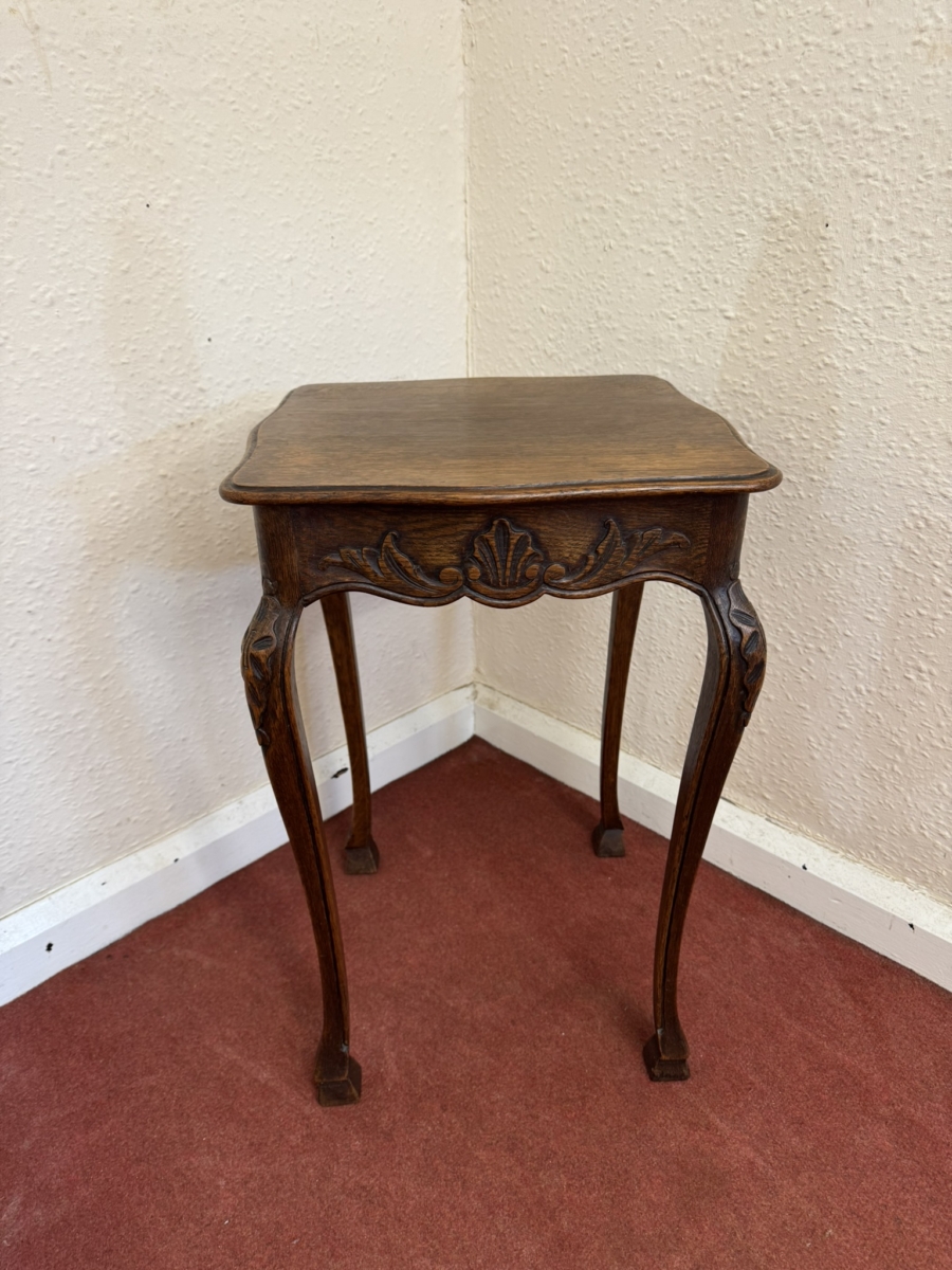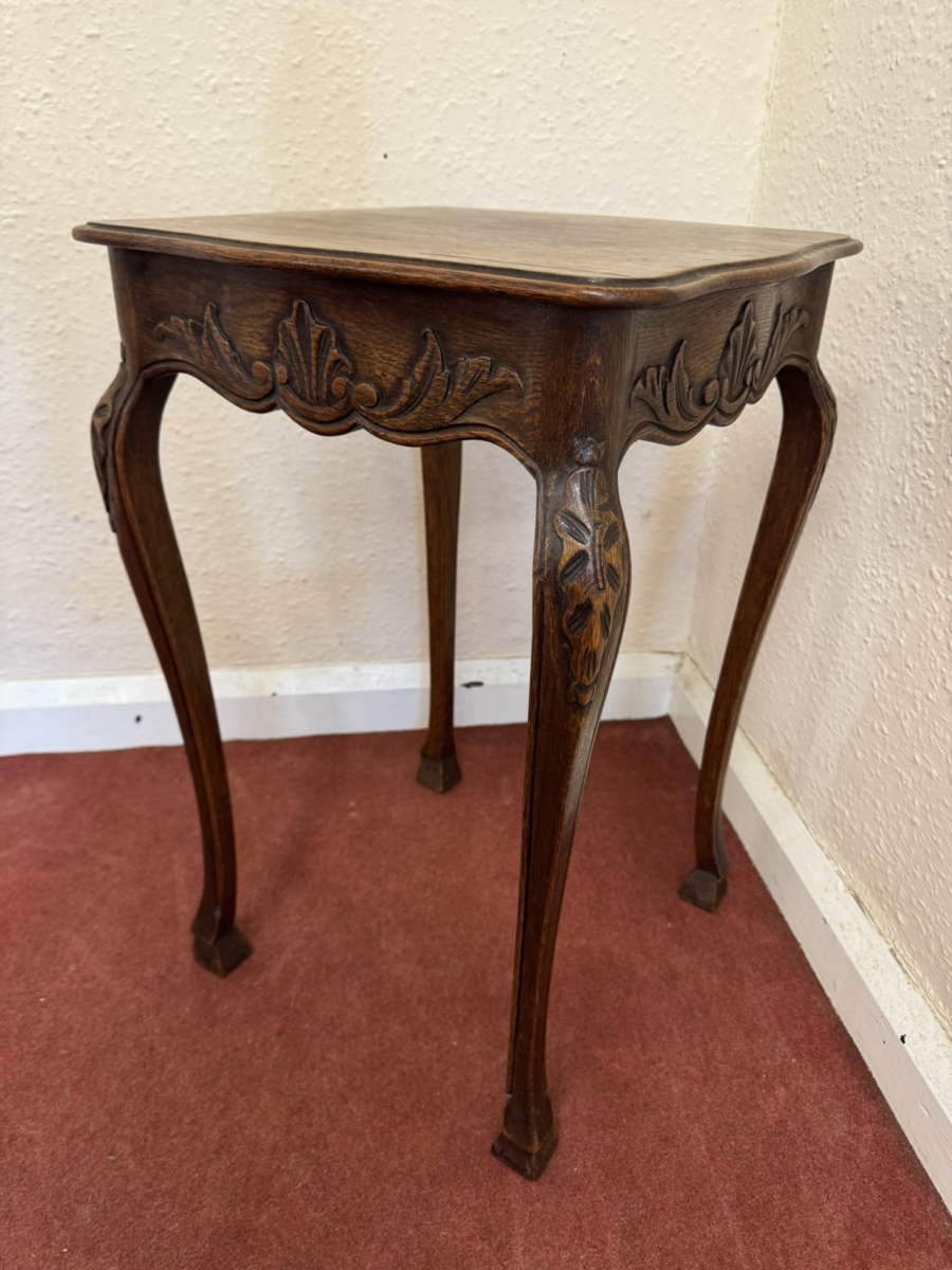 This elegant table dates circa 1930. Shaped top, ornate carved skirt and standing on four elegant carved cabriole shaped legs.