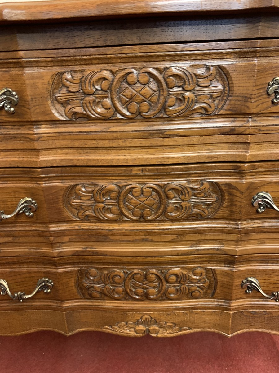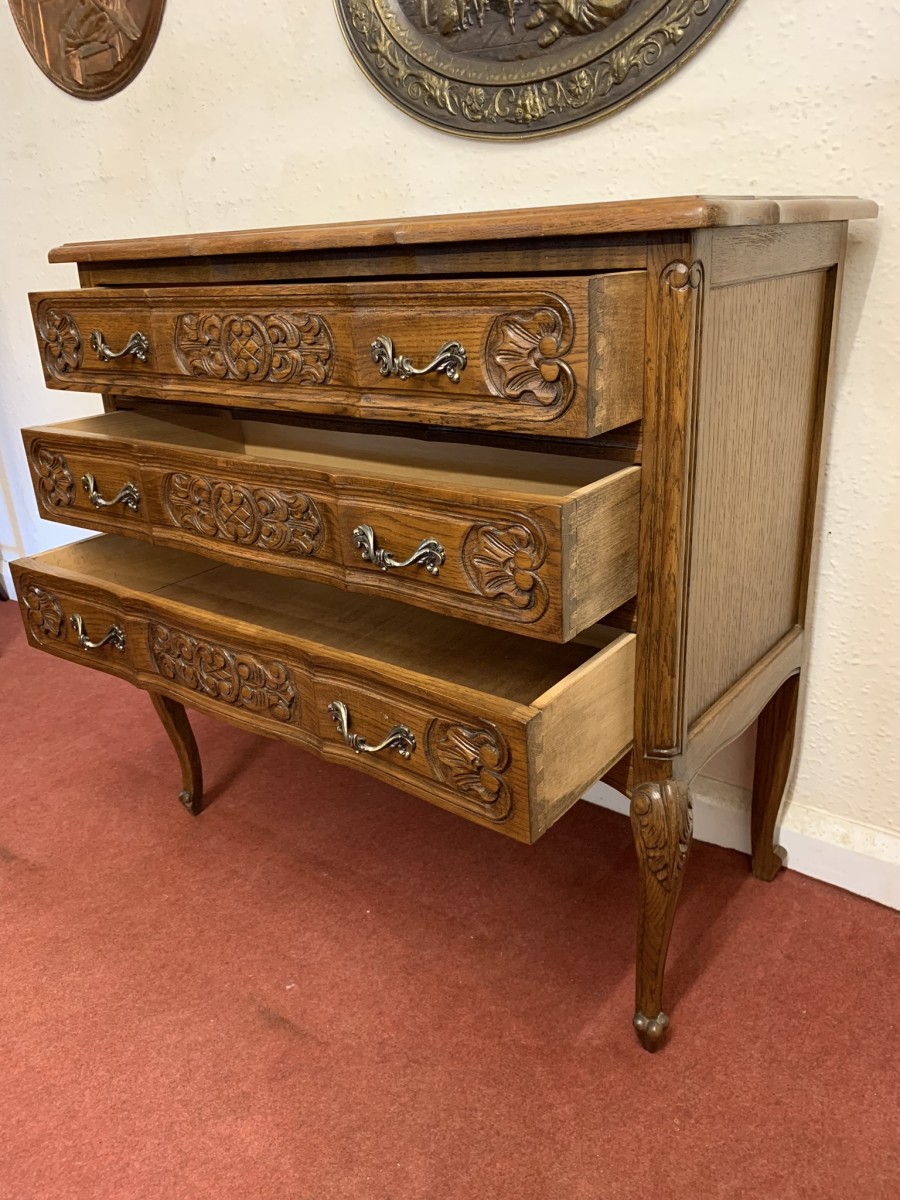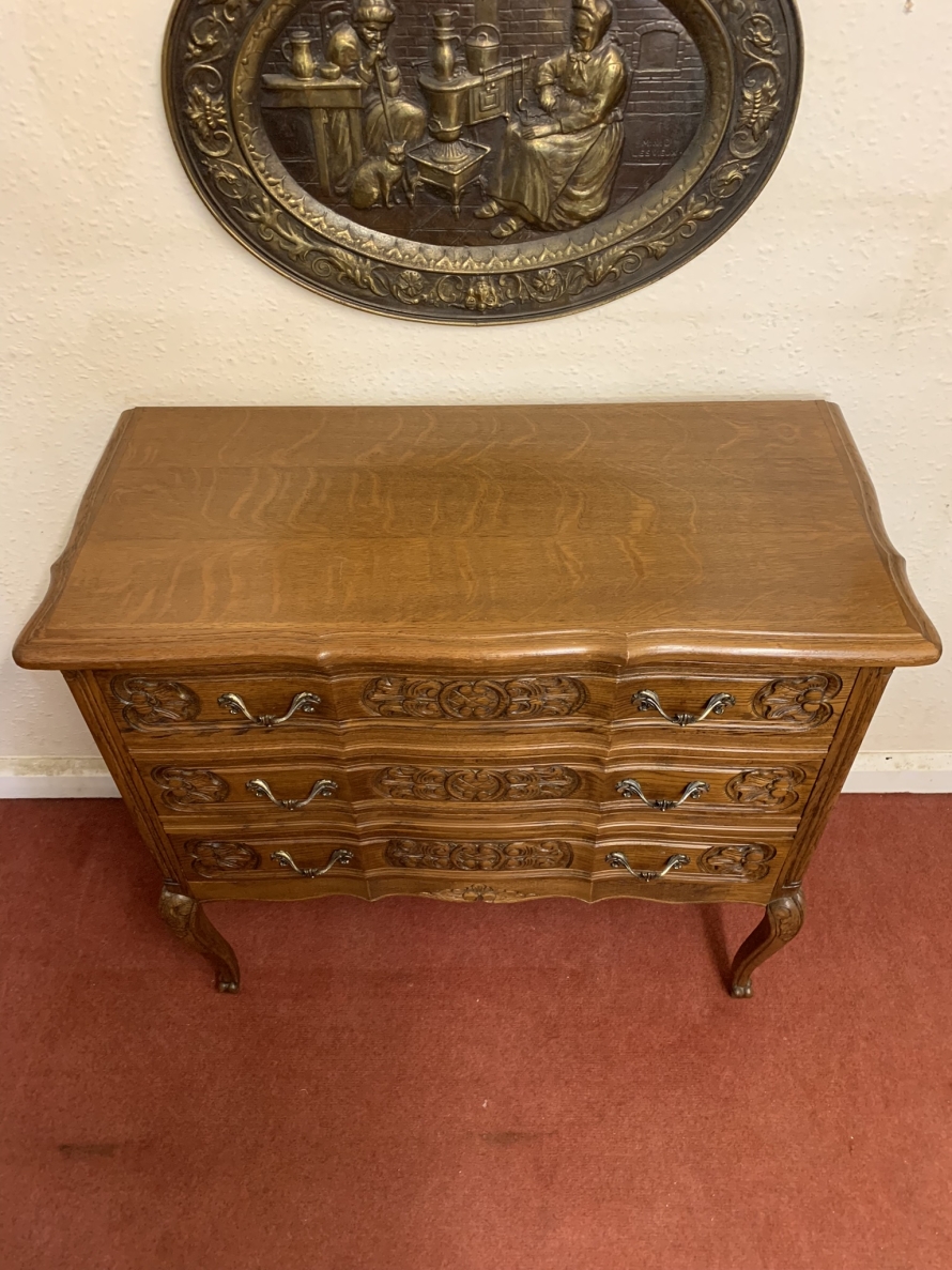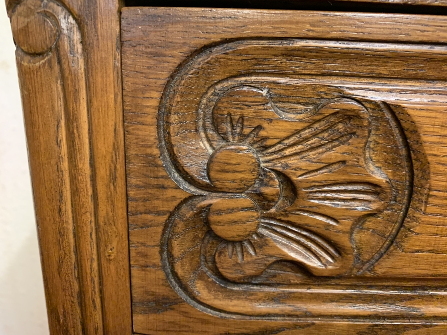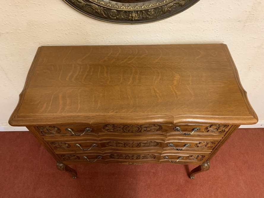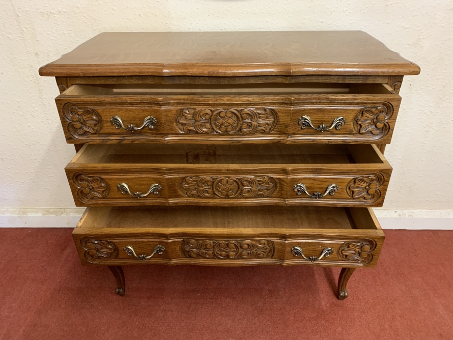 - Elegant French Carved Oak Three Drawer Chest/commode (11)