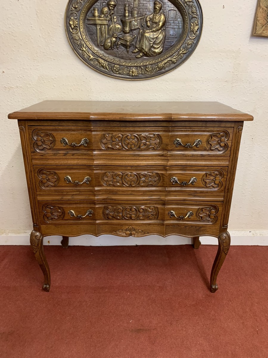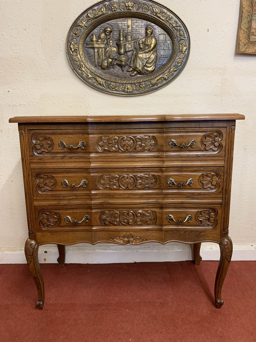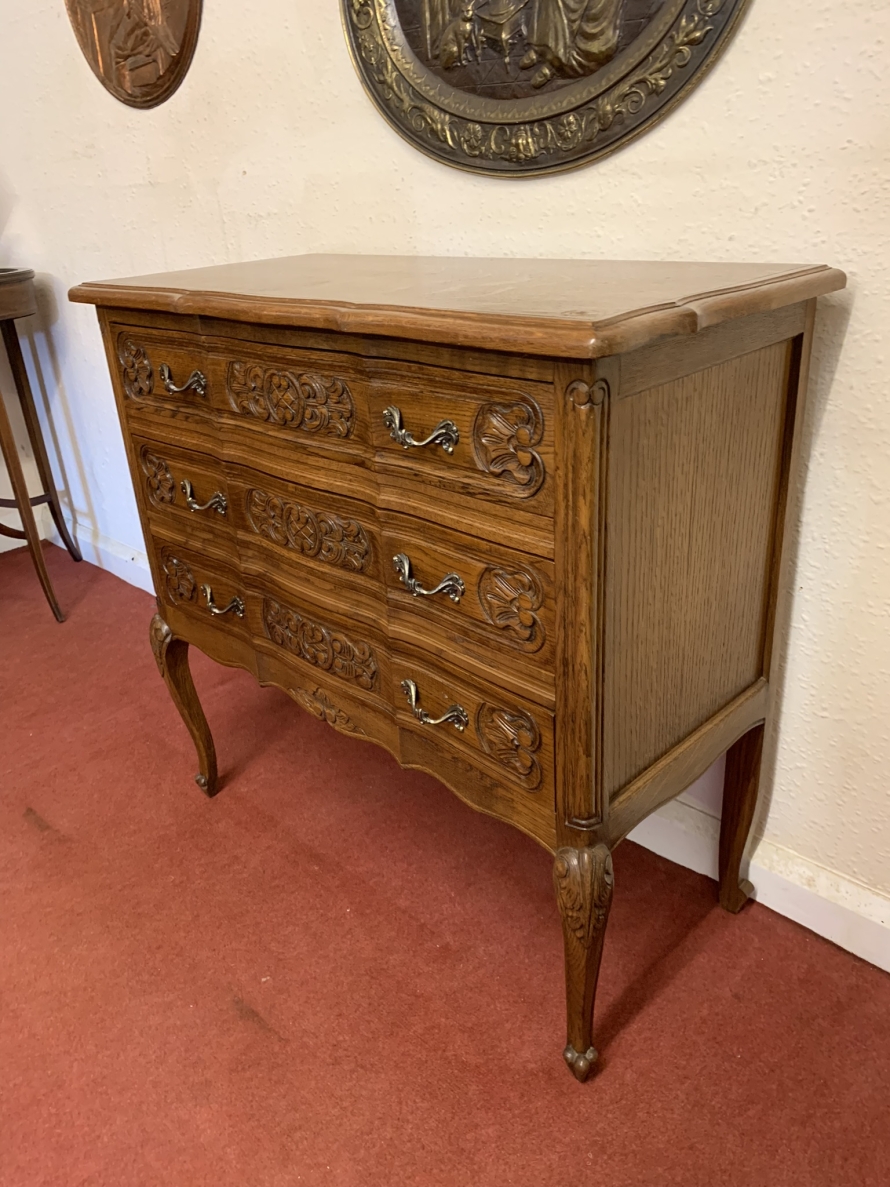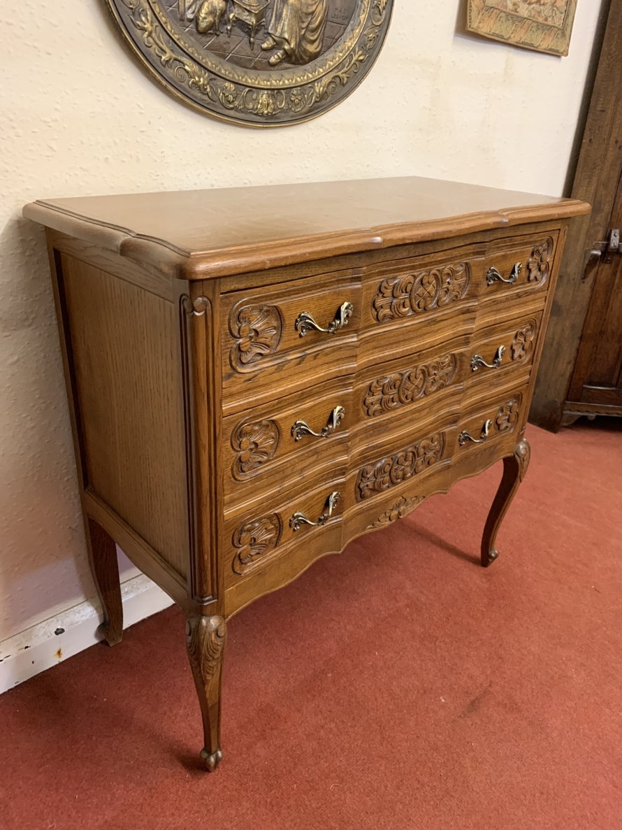 - Elegant French Carved Oak Three Drawer Chest/commode (11)