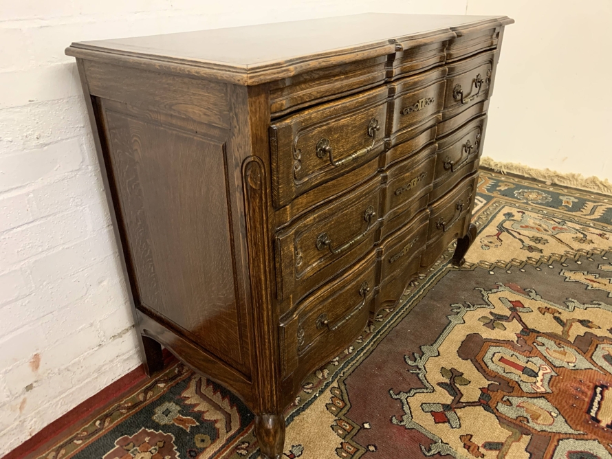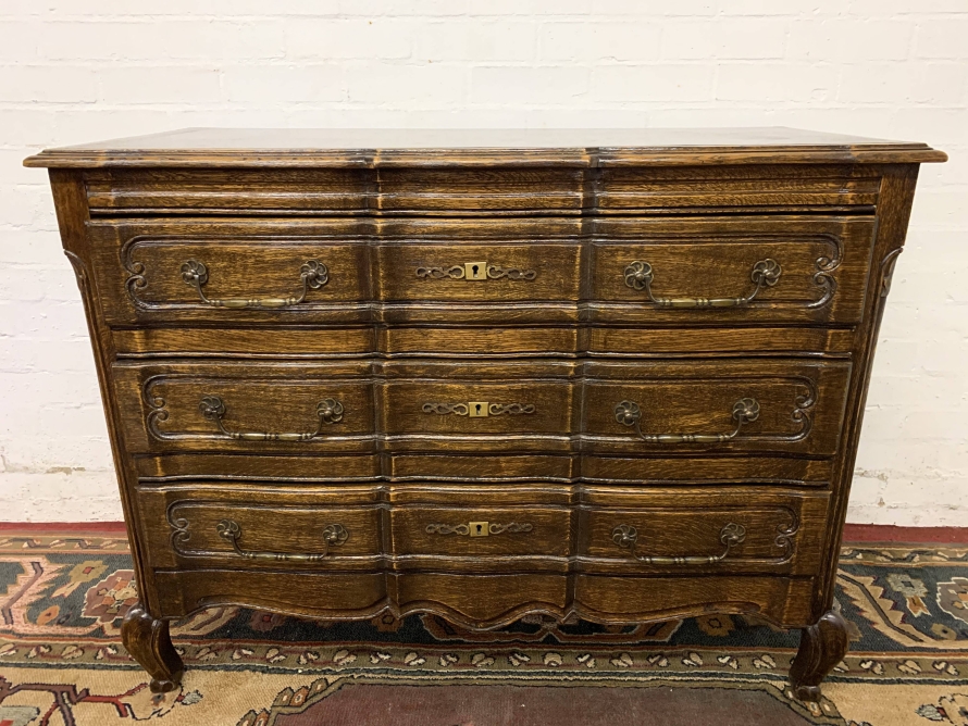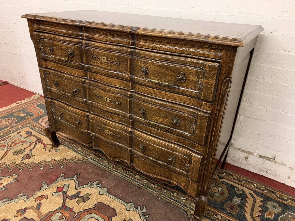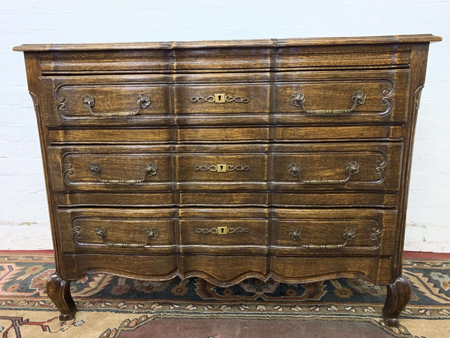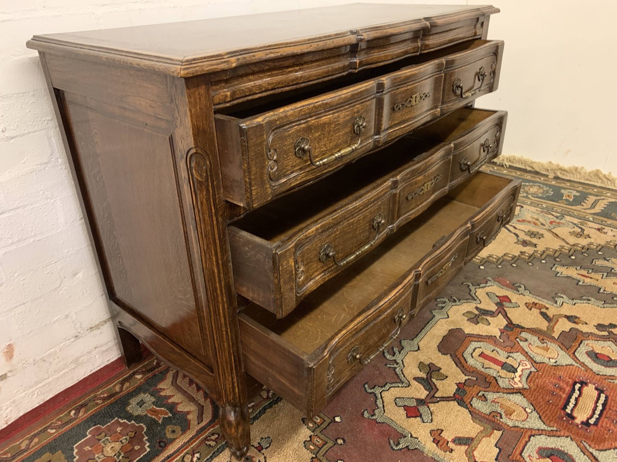 - Elegant French Serpentine Fronted Chest Of Three Long Drawers – Now Sold