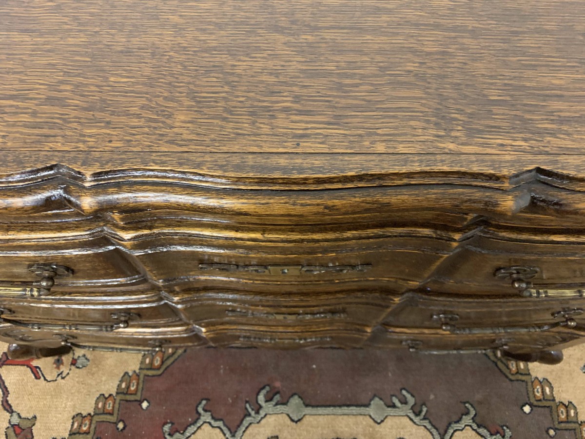 Elegant French Serpentine Fronted Chest Of Three Long Drawers – Now Sold
