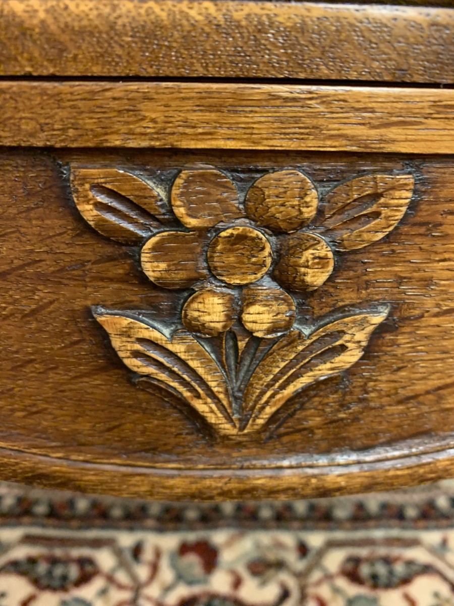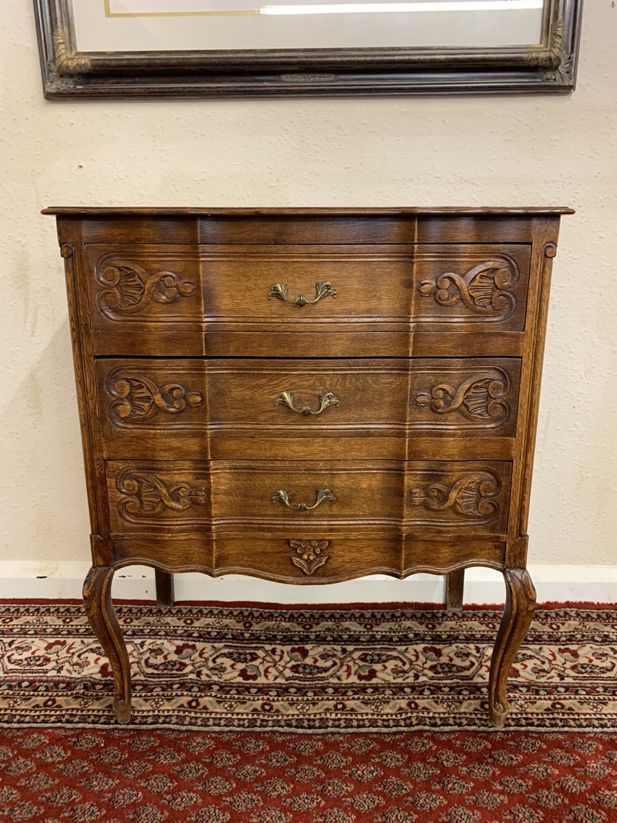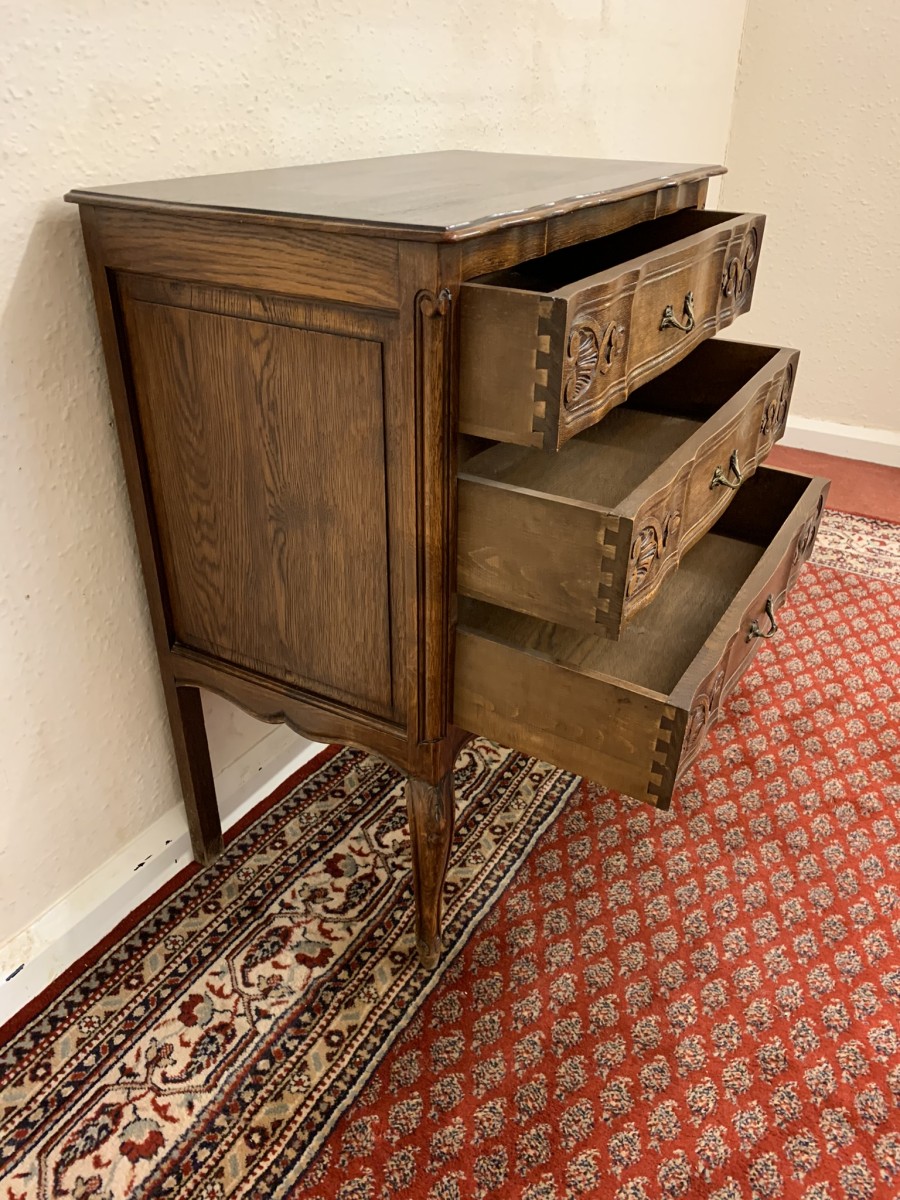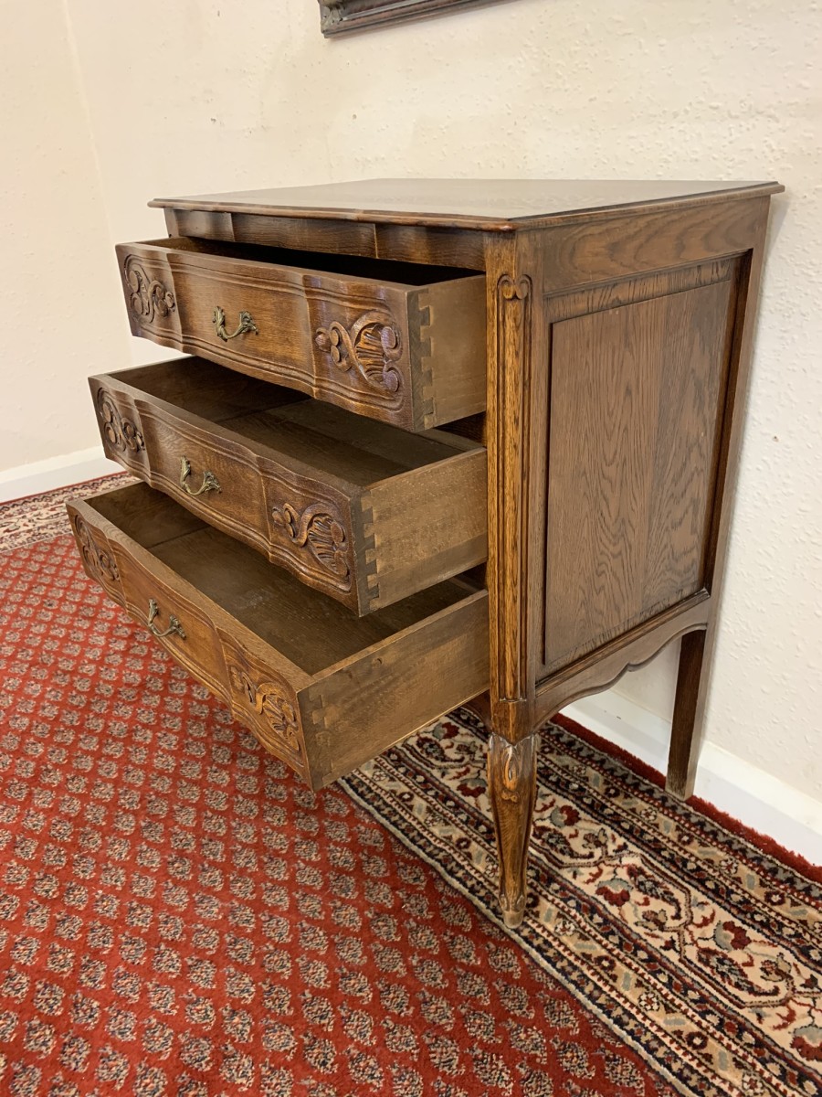 Elegant French Shaped Carved Oak Chest Od Three Drawers