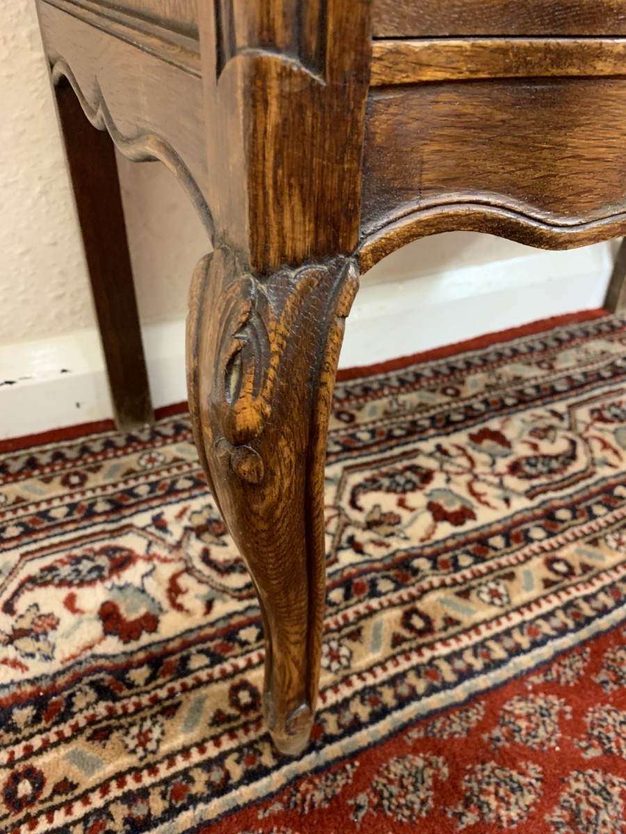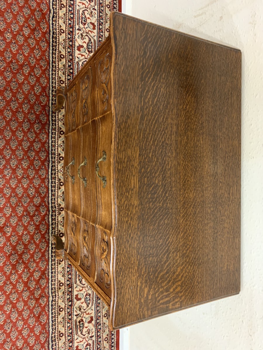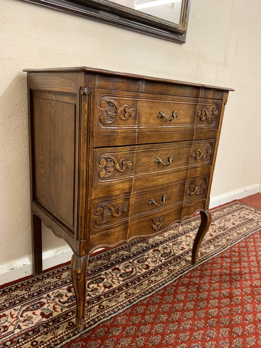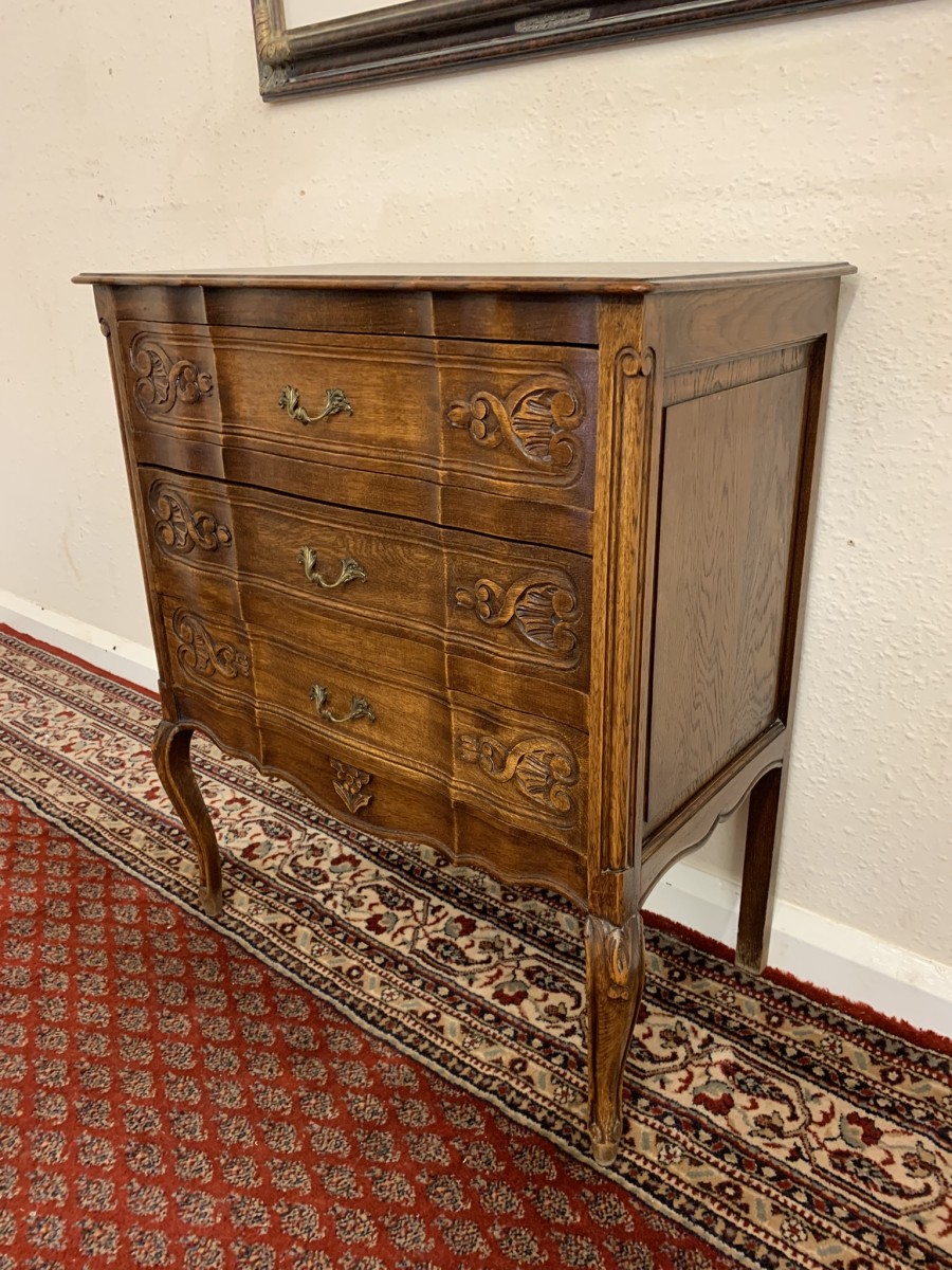 - Elegant French Shaped Carved Oak Chest Od Three Drawers
