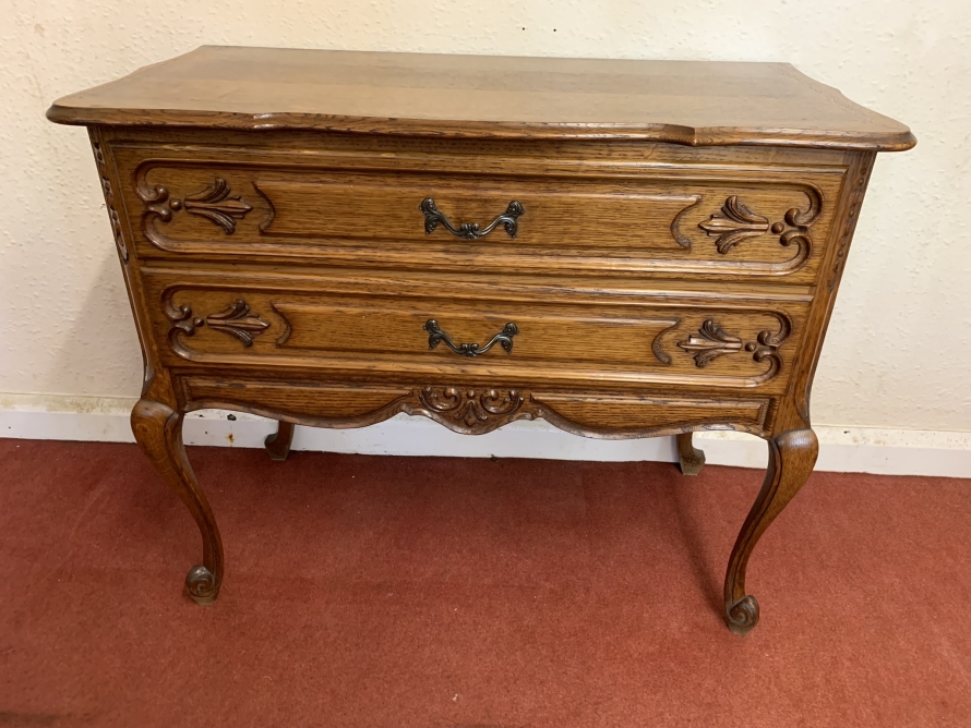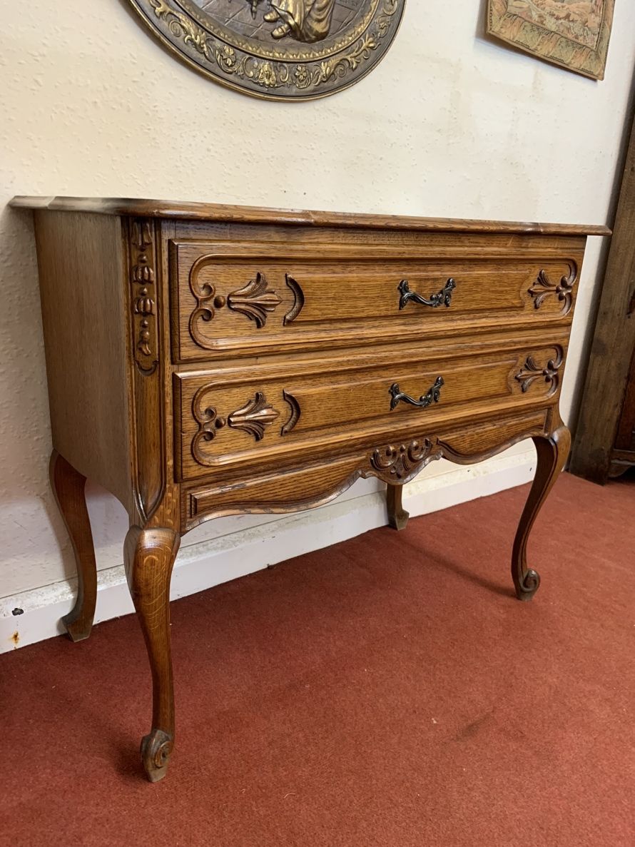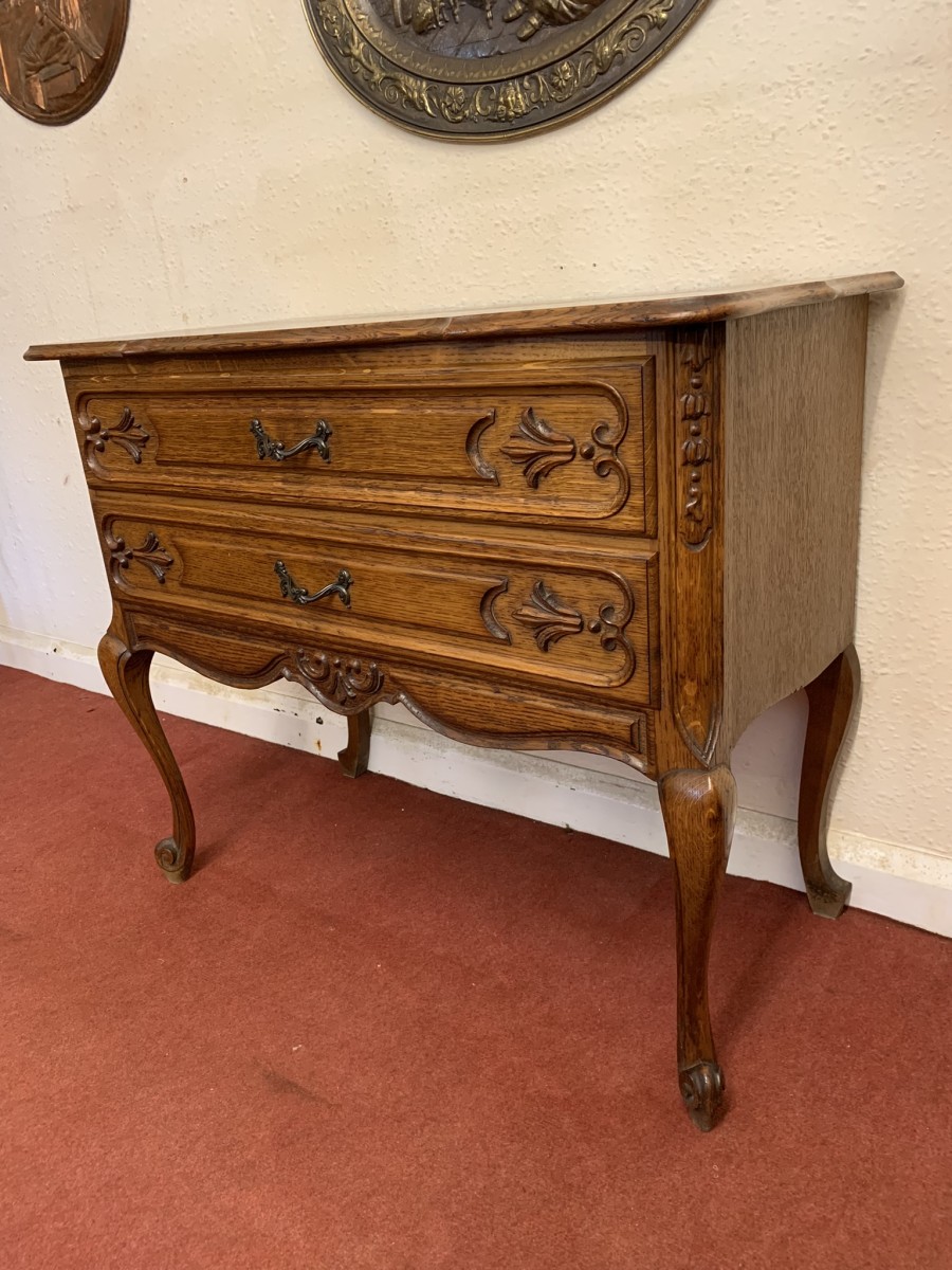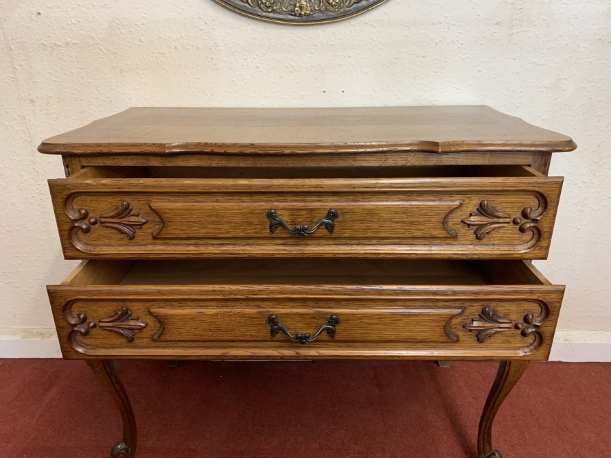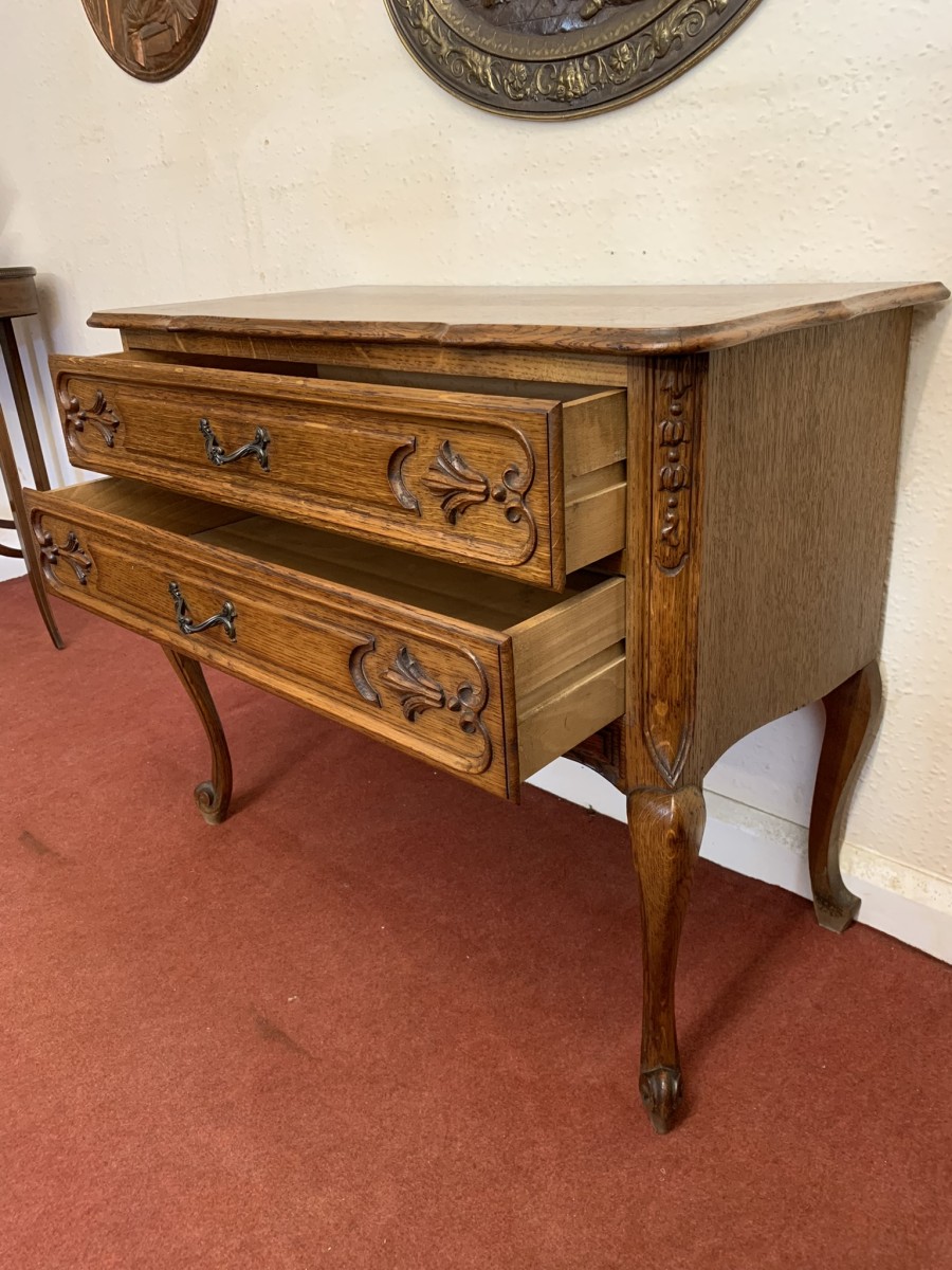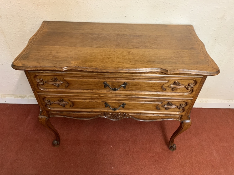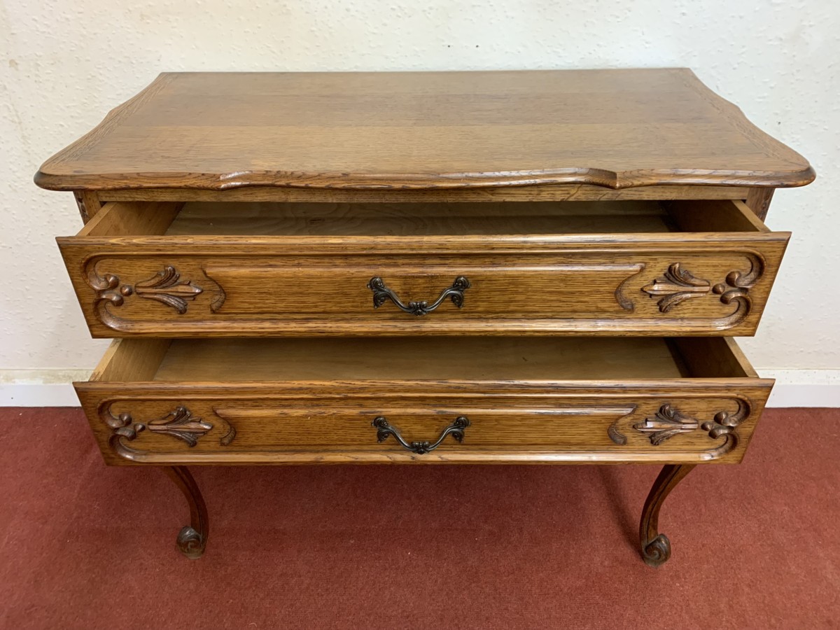 - Elegant French Shaped Carved Oak Chest Of Two Drawers (7)