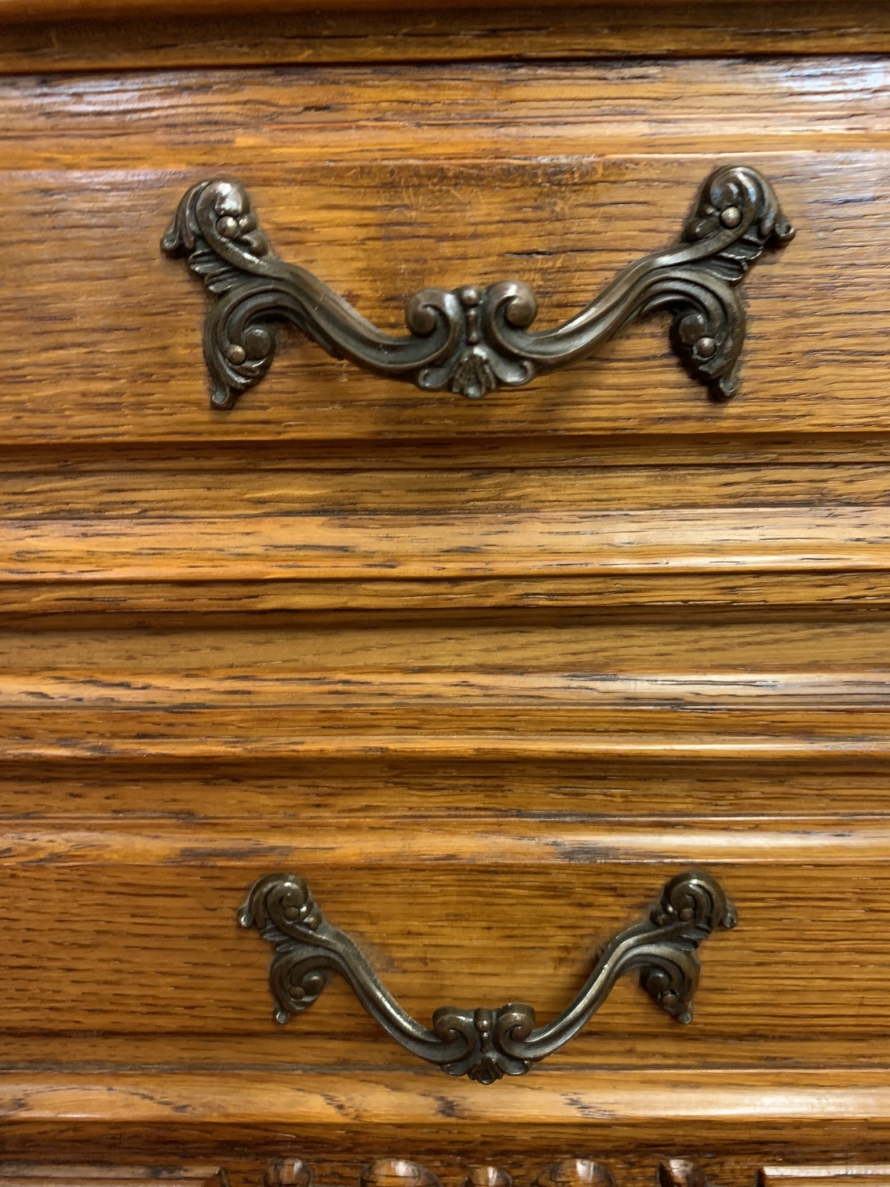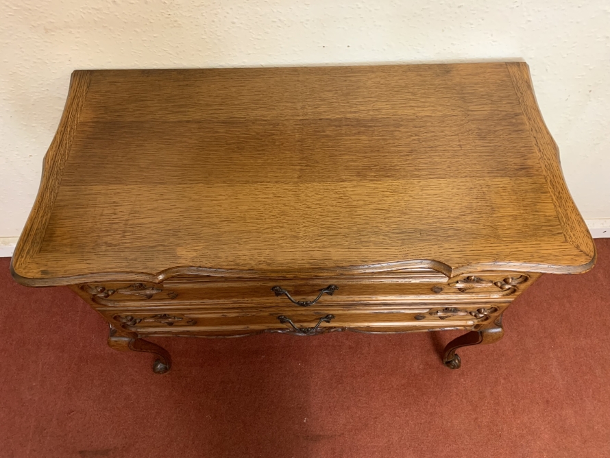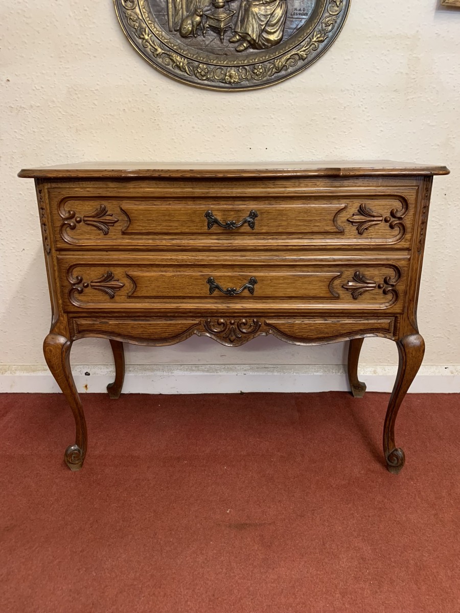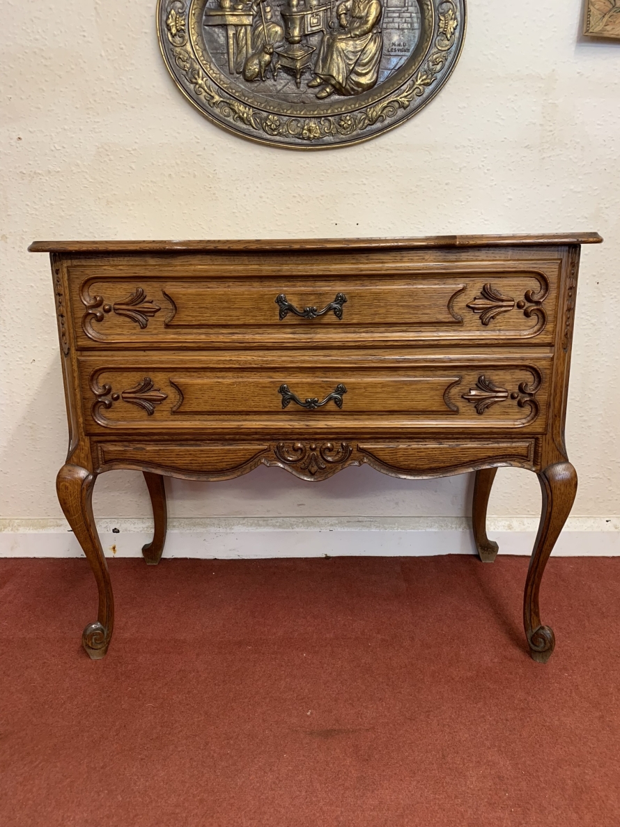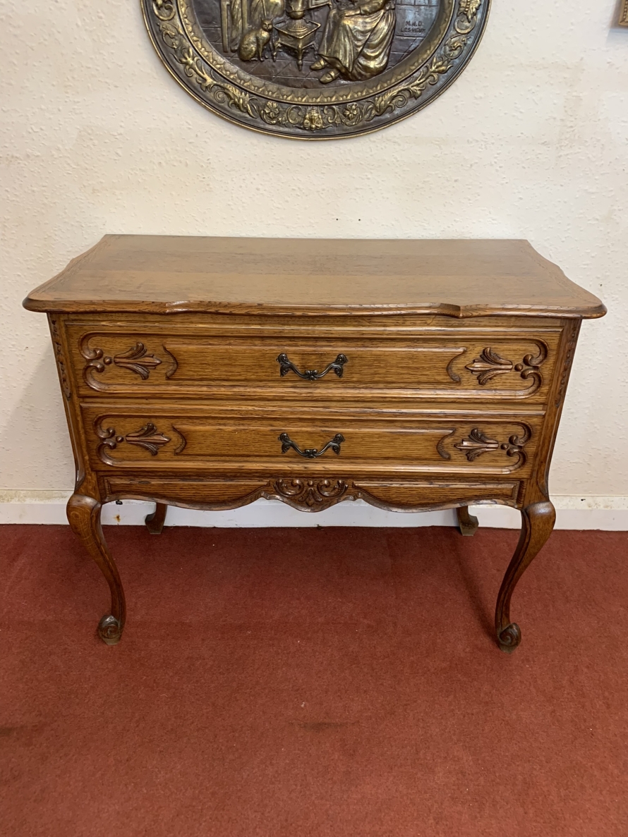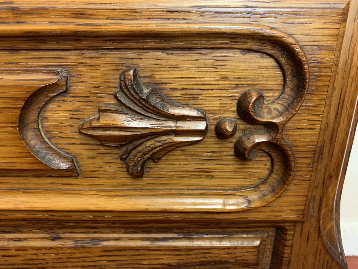 - Elegant French Shaped Carved Oak Chest Of Two Drawers (7)