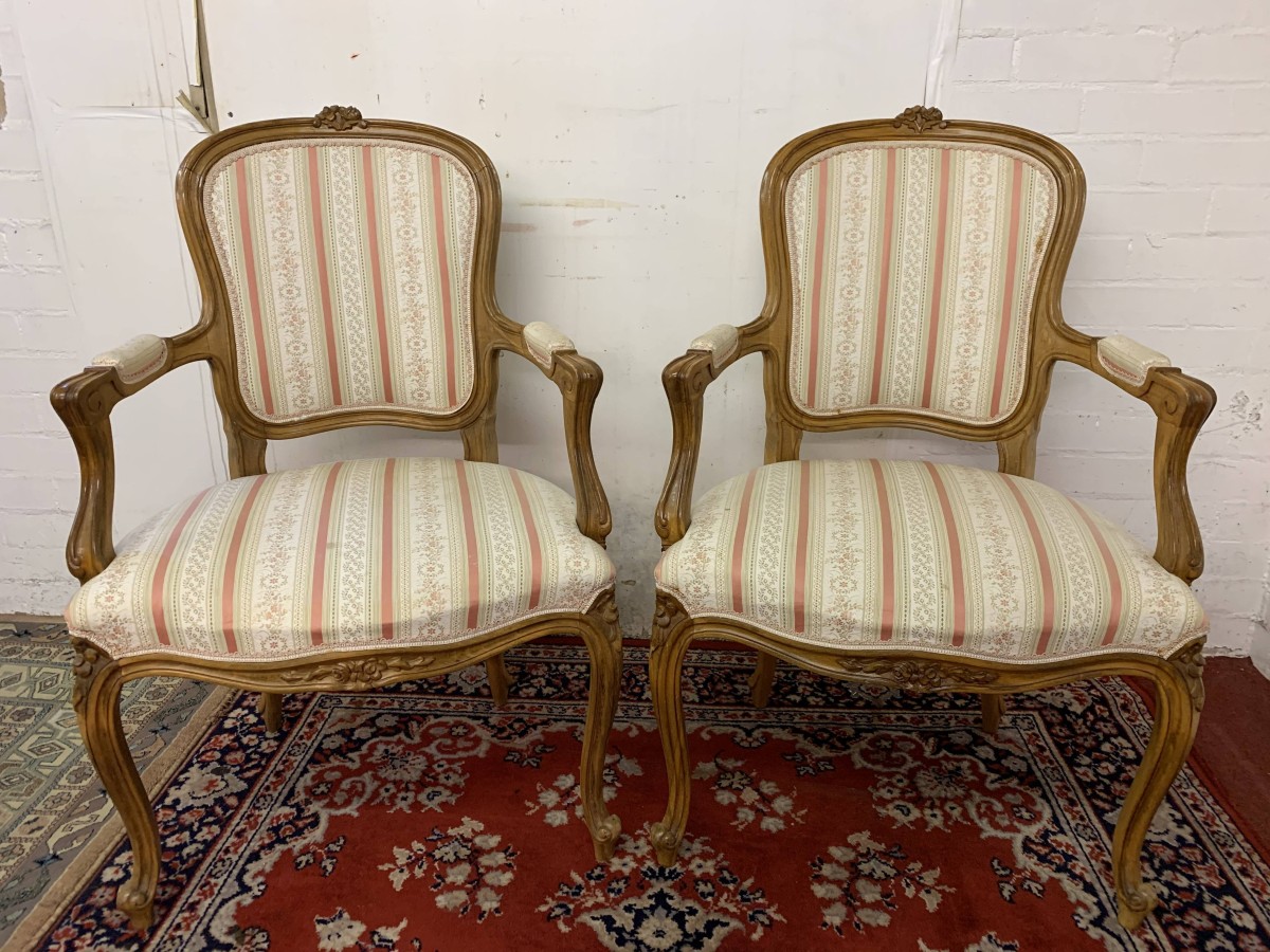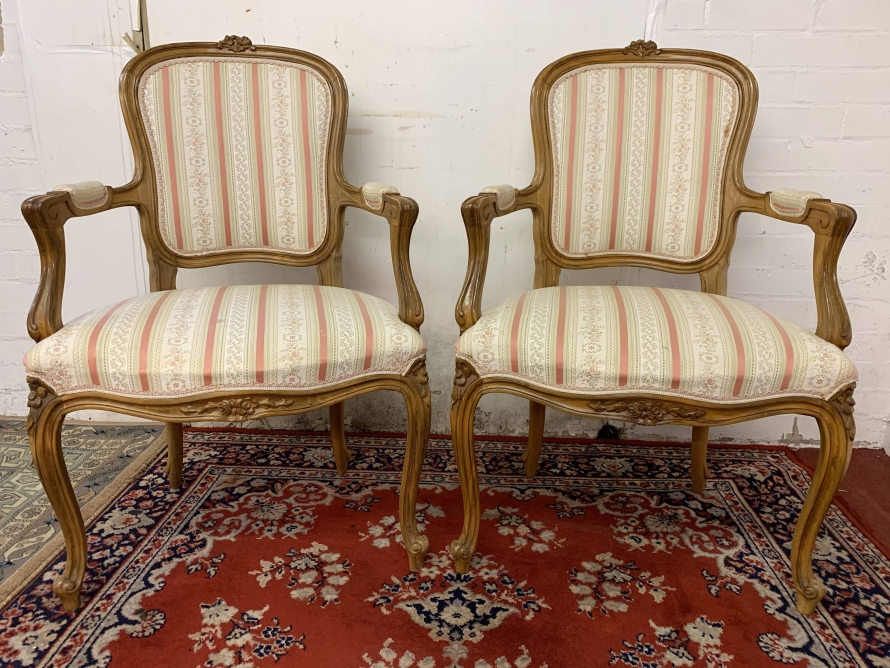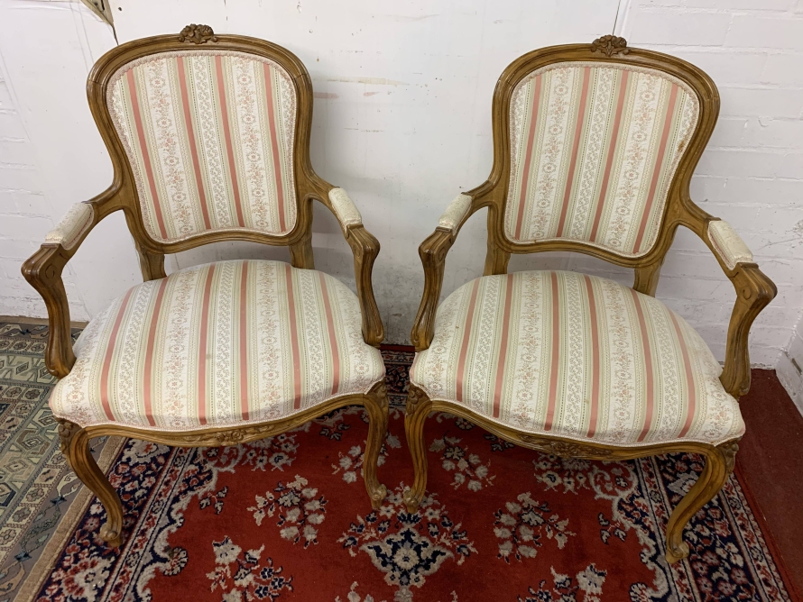 Elegant Pair Of French Carved Walnut Armchairs/salon Chairs – Now Sold