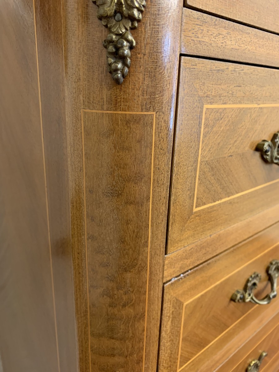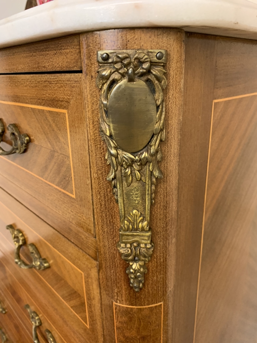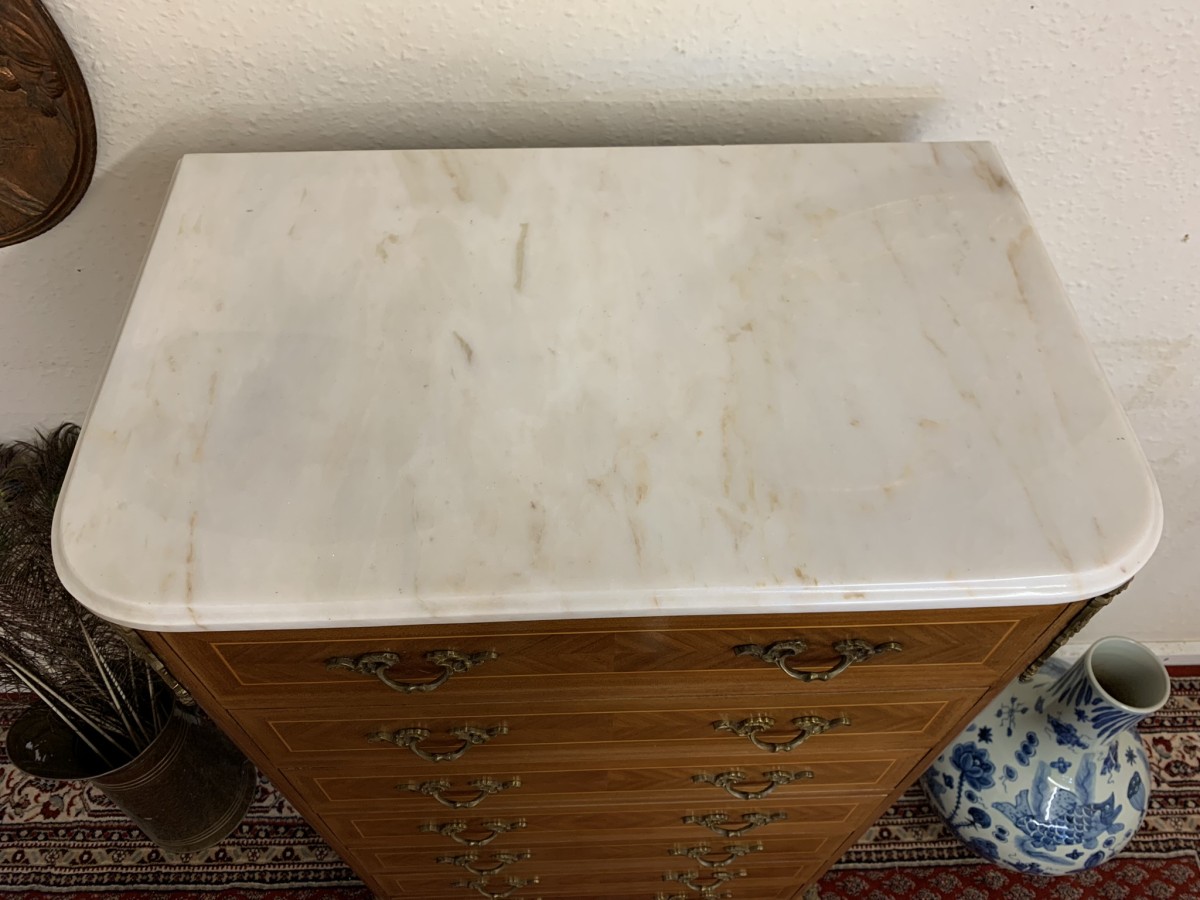 - Elegant Tall French Inlaid Mahogany Marble Topped Commode/chest Of Drawers