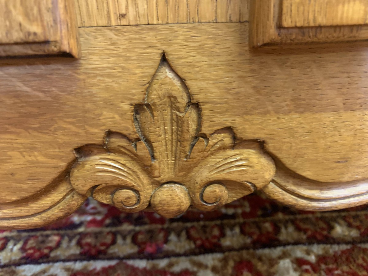 Elegant Vintage French Carved Oak Open Bookcase With Cupboards Below – Now Sold